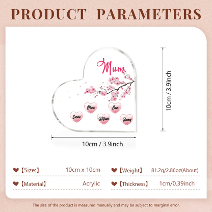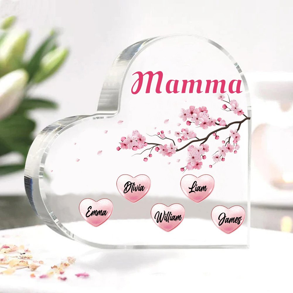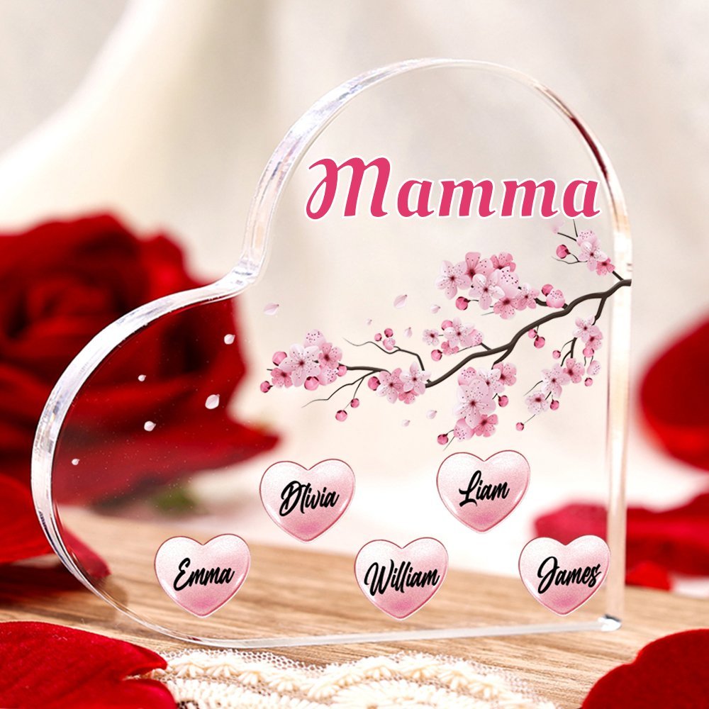 MAMMA Decorazione acrilica albero di fiori di pesco 5 nomi e 1 testo personalizzati per mamma/nonna