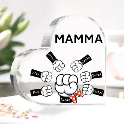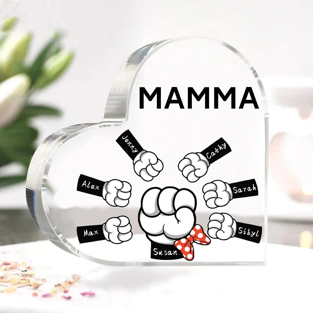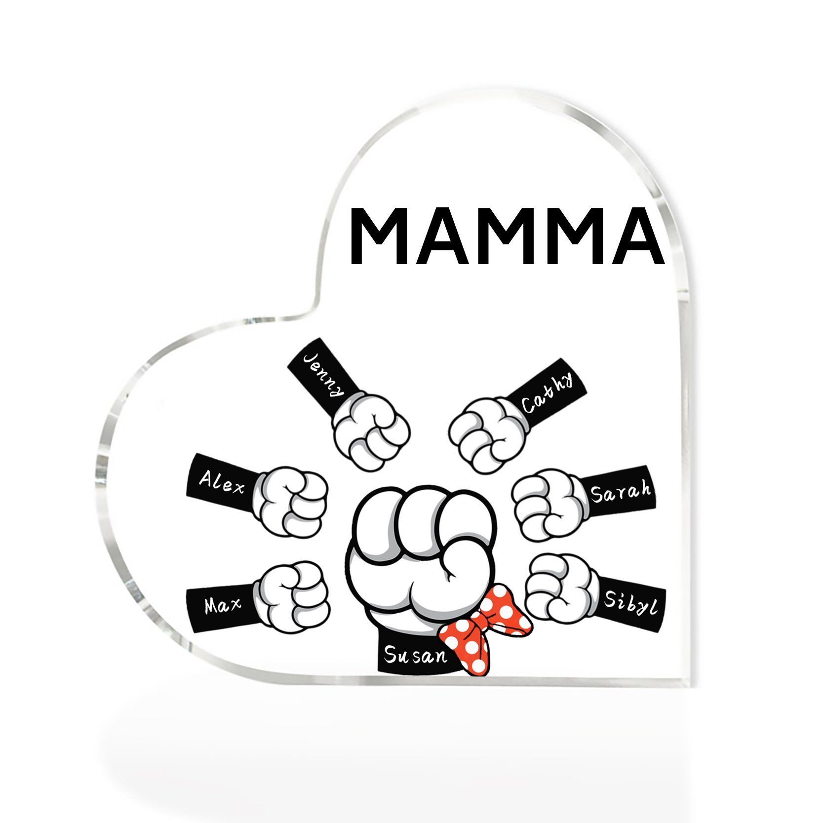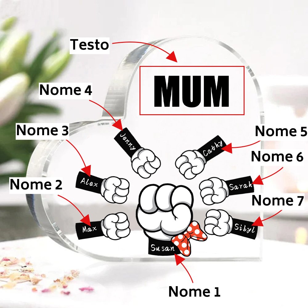 MAMMA Decorazione acrilica pugno a pugno a forma di cuore 7 nomi e 1 testo personalizzati per mamma/nonna