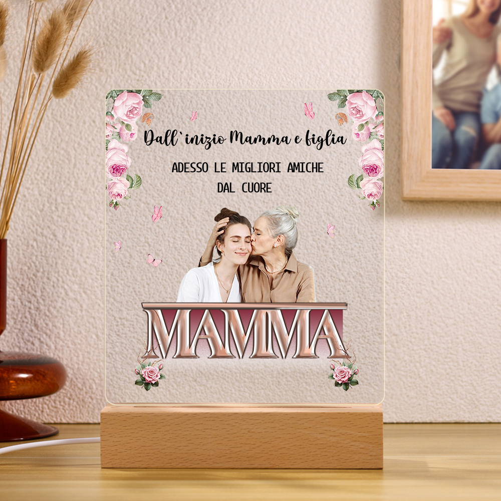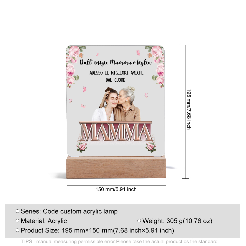 Mamma-Lampada acrilica con 1 foto e 2 testi personalizzabili per mamma