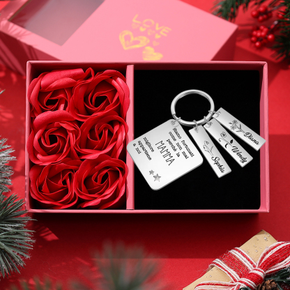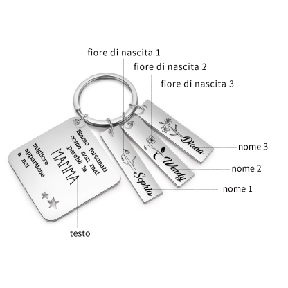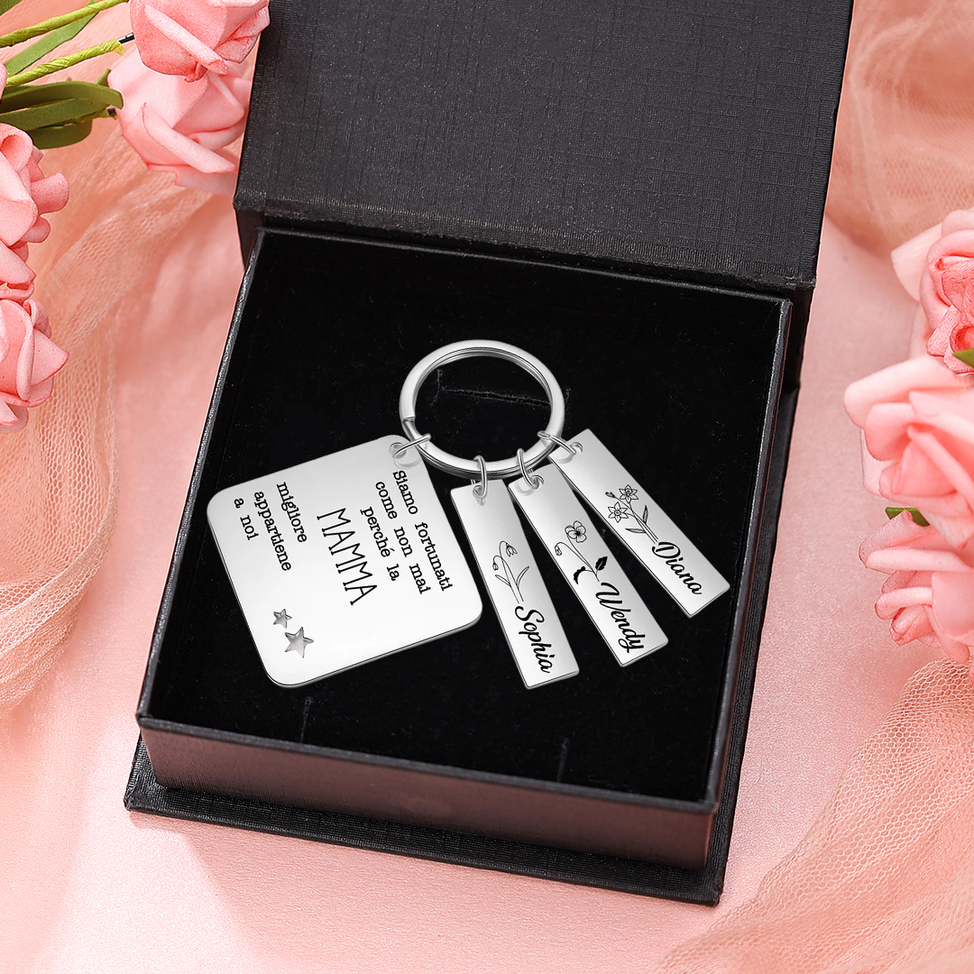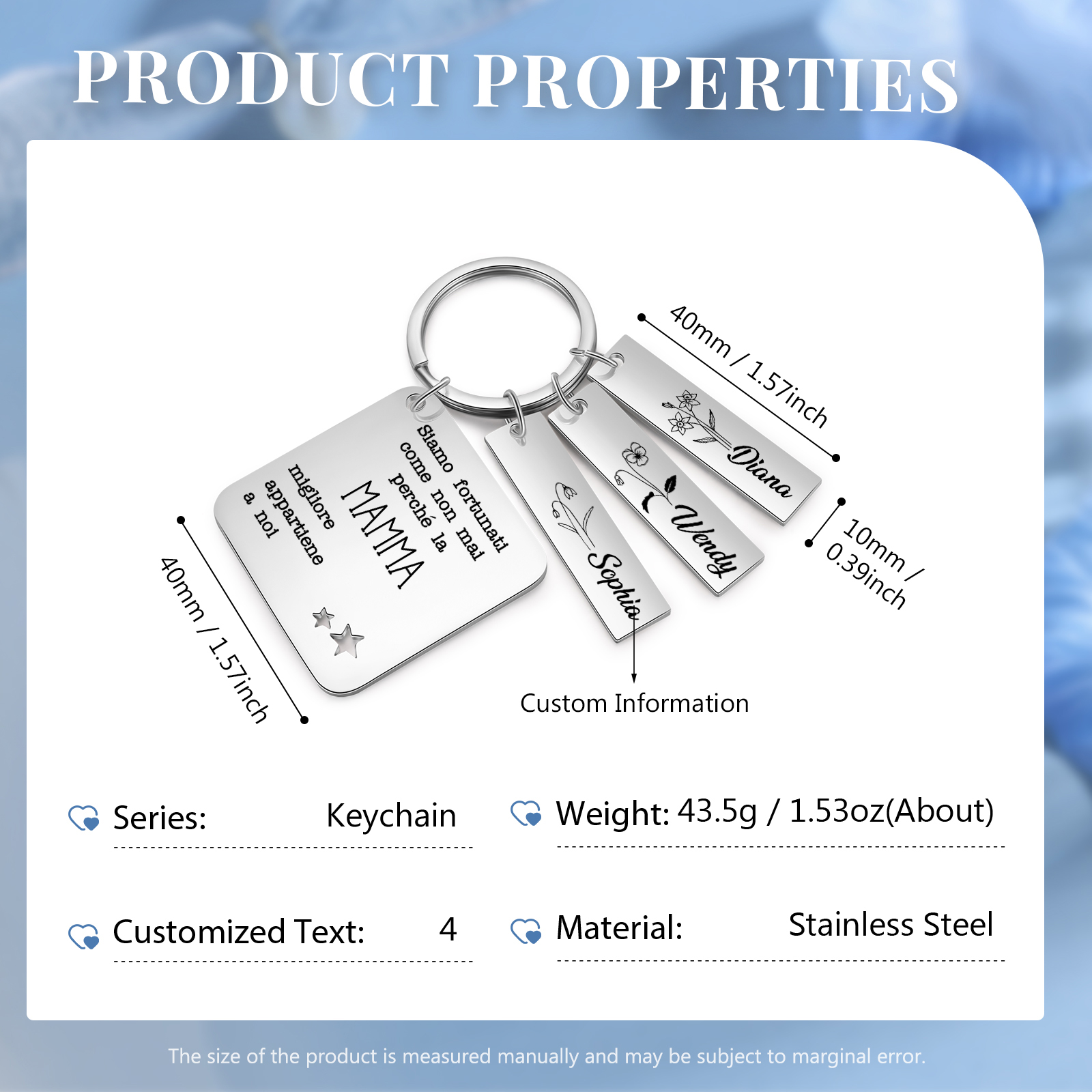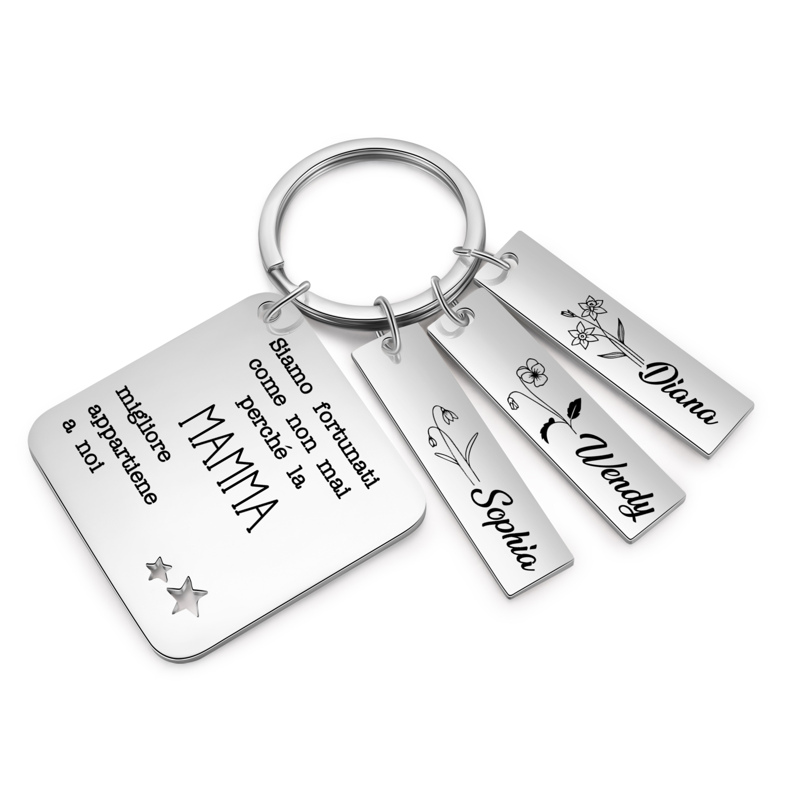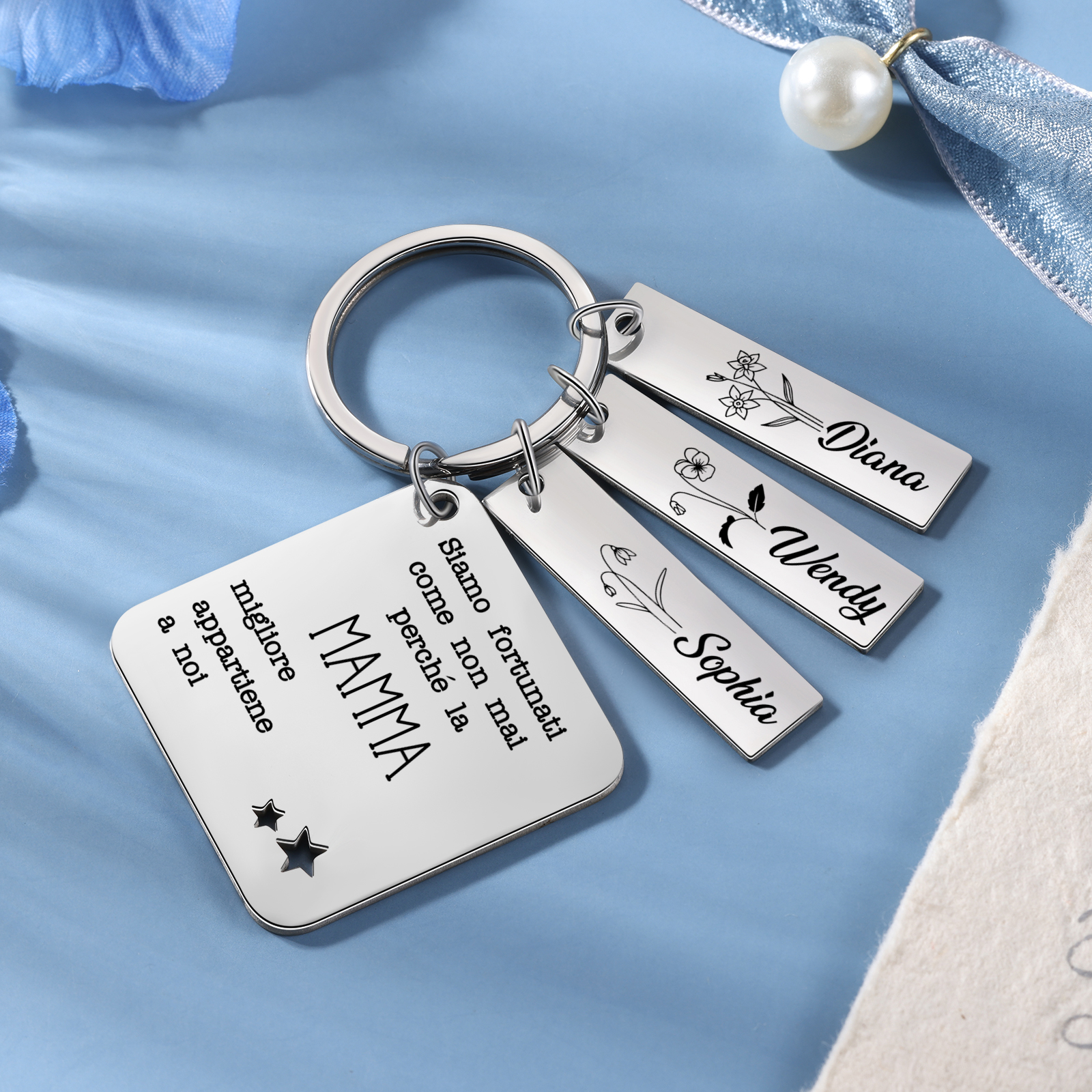Mamma migliore appartiene a-Portachiavi quadro 3 nomi e 3 fiori di nascita e 1 testo personalizzati regalo per mamma
