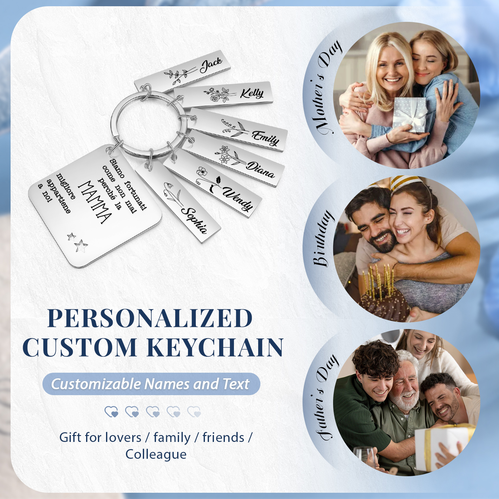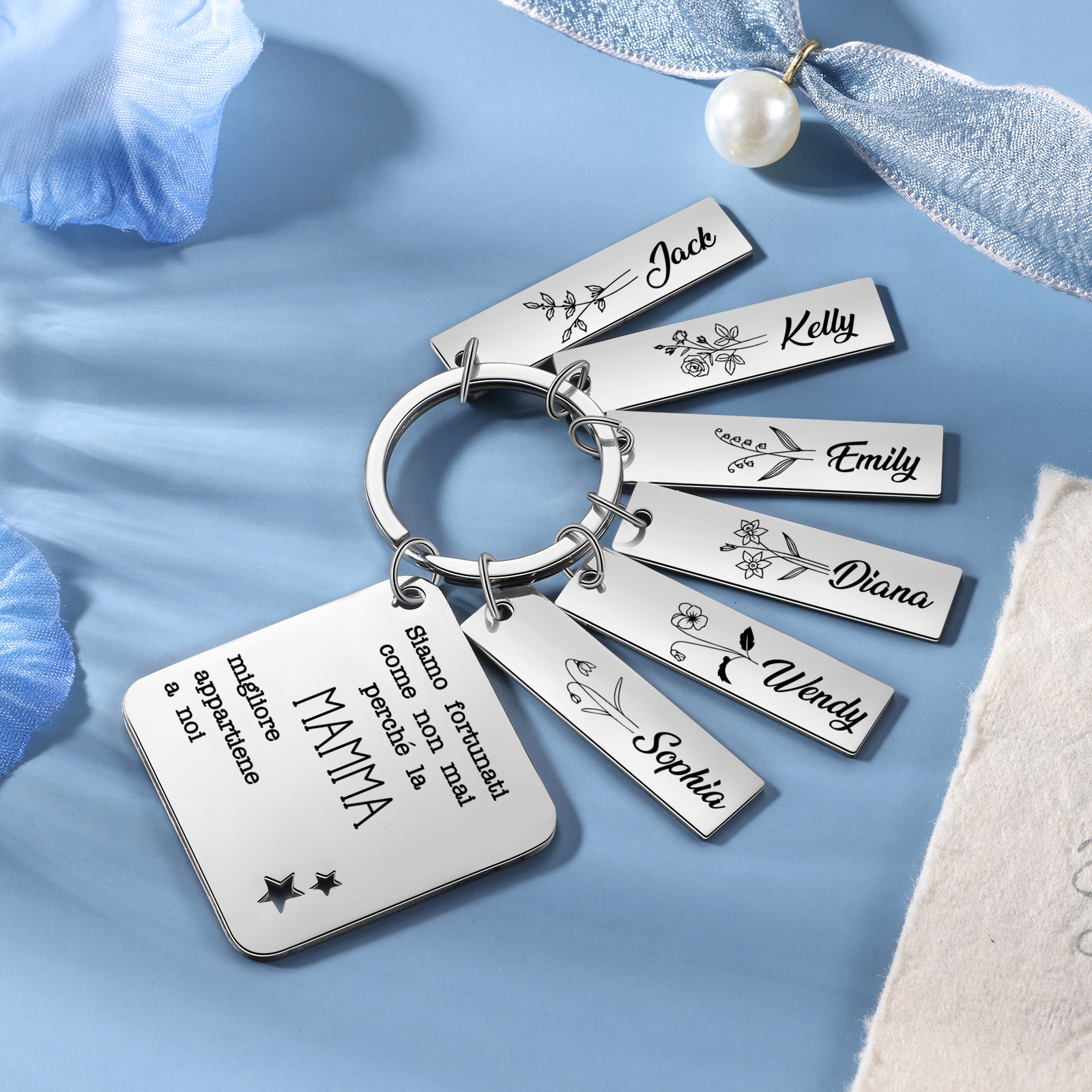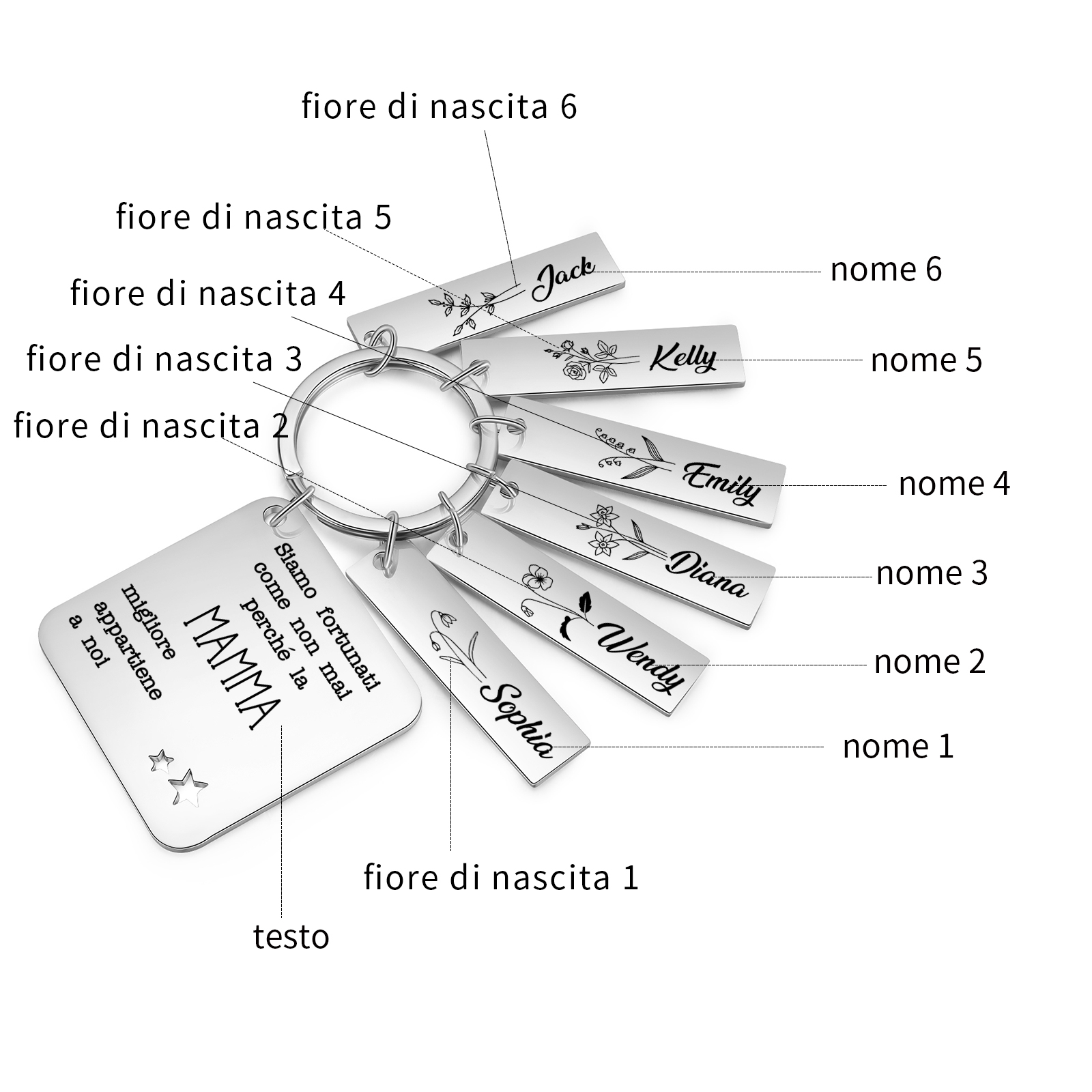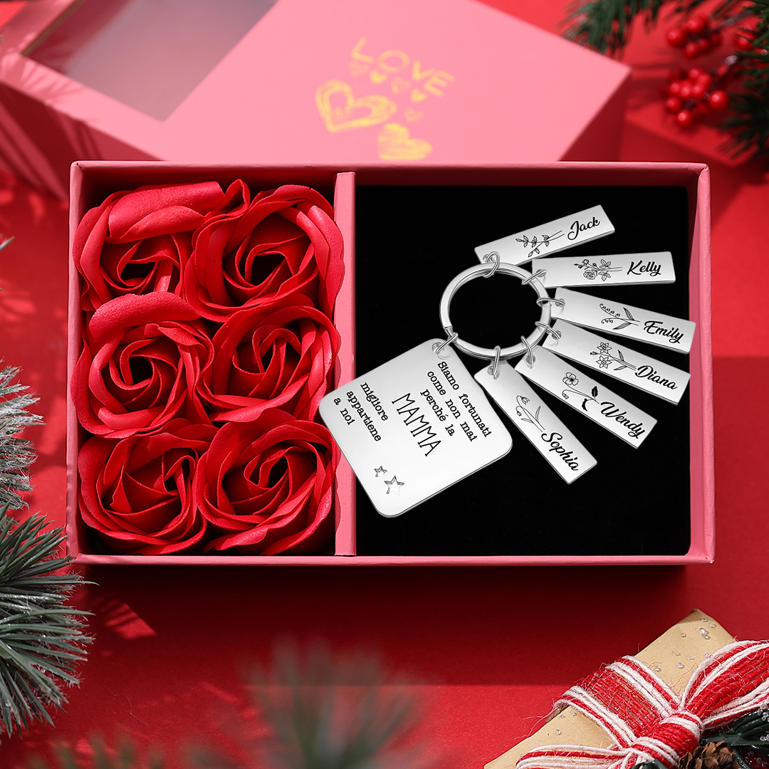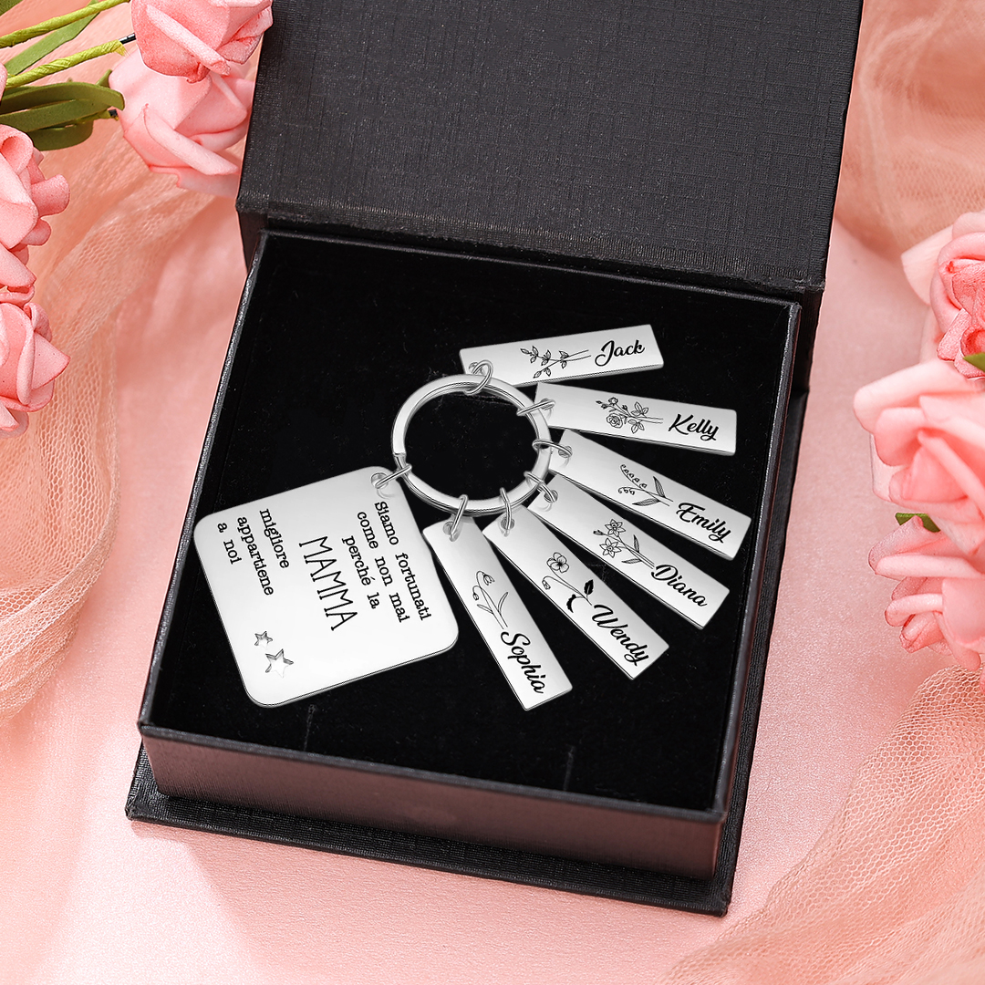 Mamma migliore appartiene a-Portachiavi quadro 6 nomi e 6 fiori di nascita e 1 testo personalizzati regalo per mamma