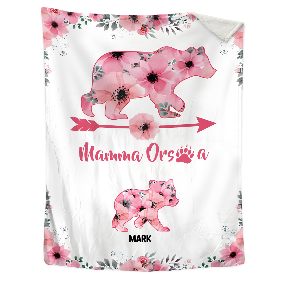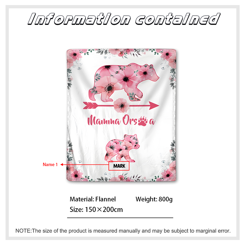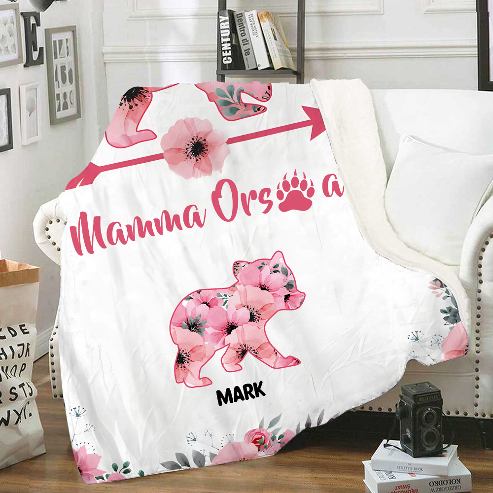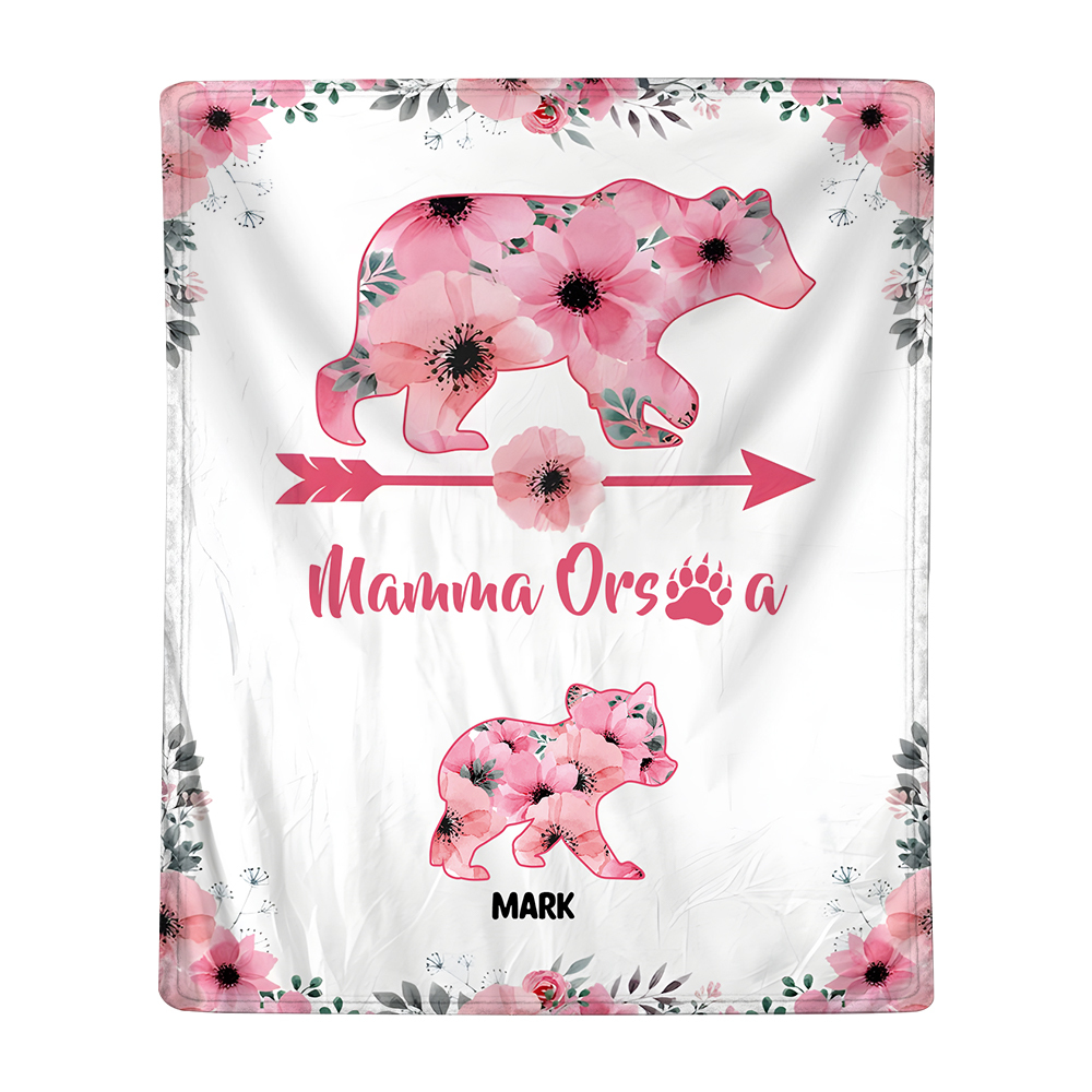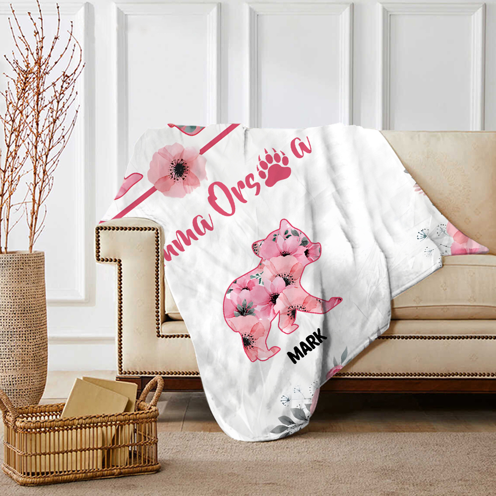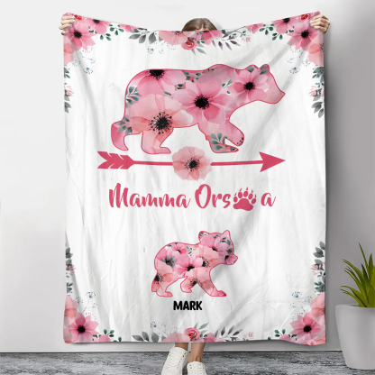 Mamma orsa-Coperta con fiore rosa 1 nome personalizzato regalo per mamma/nonna