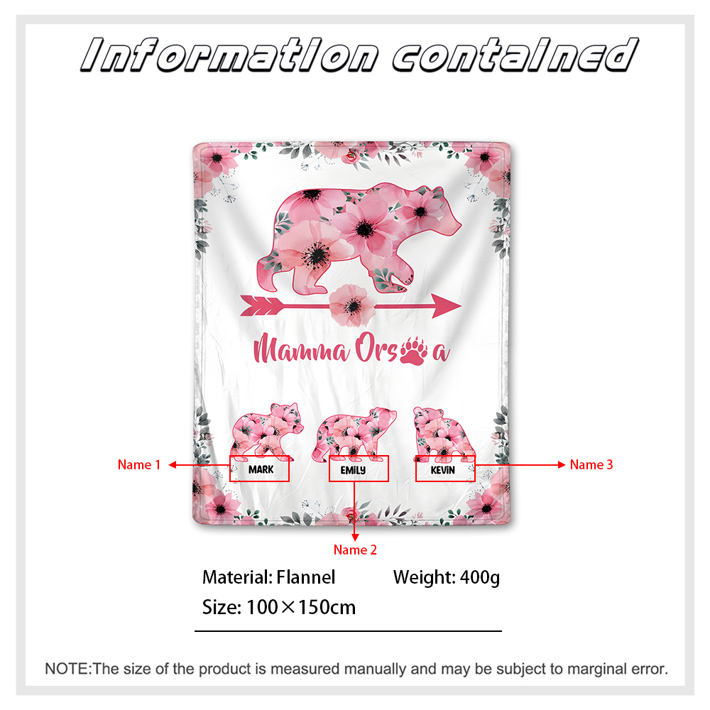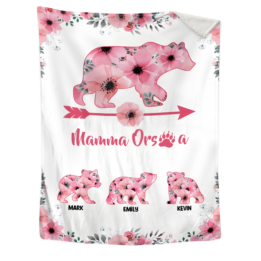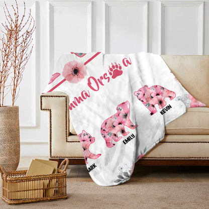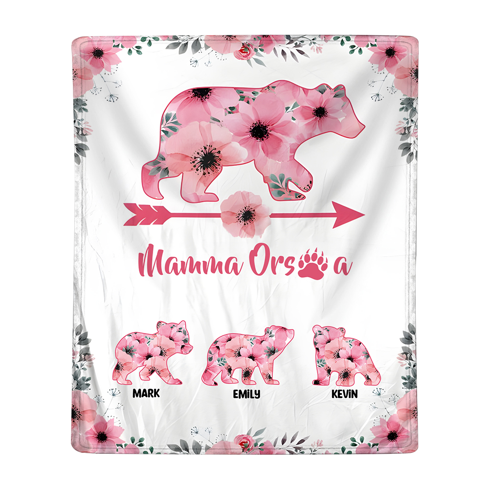 Mamma orsa-Coperta con fiore rosa 3 nomi personalizzati regalo per mamma/nonna
