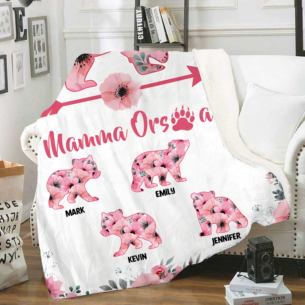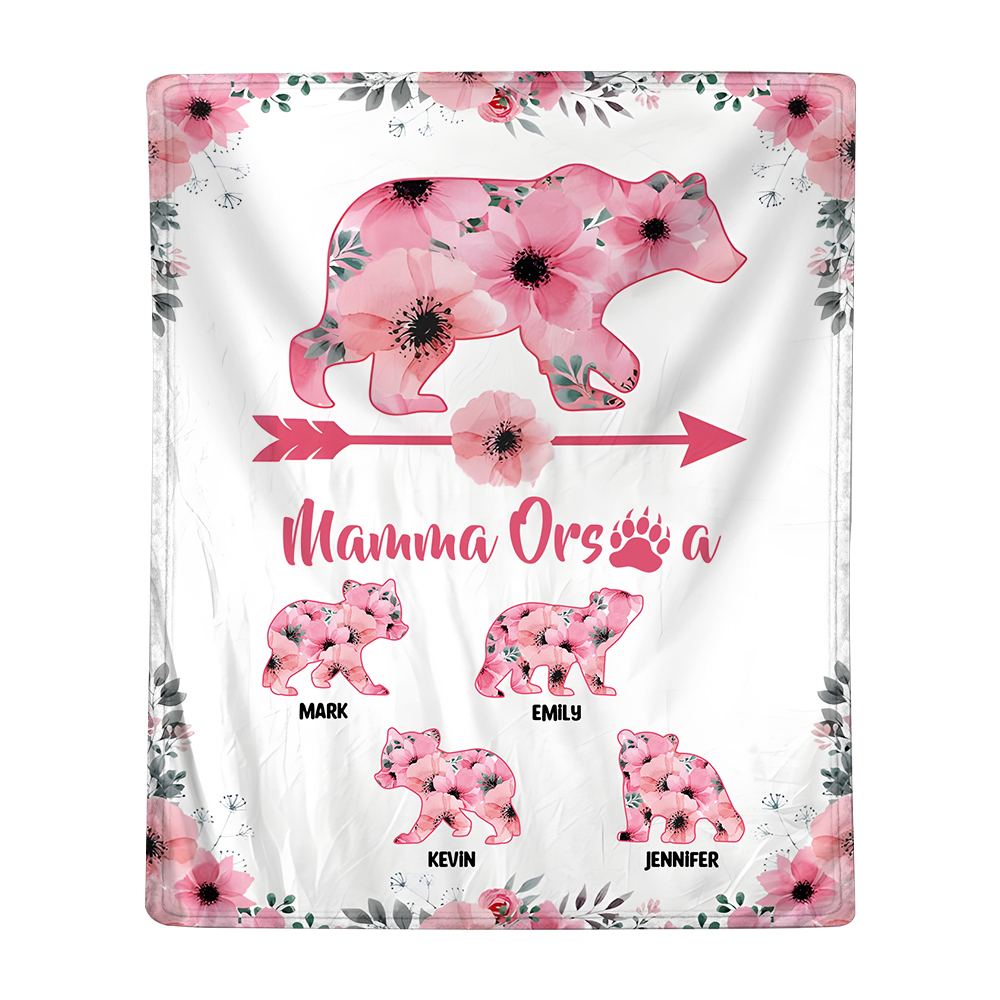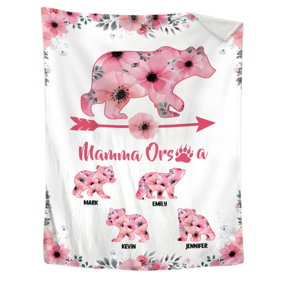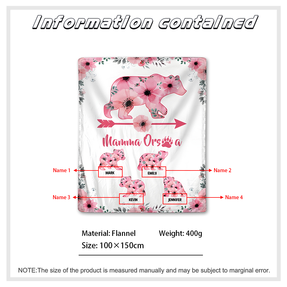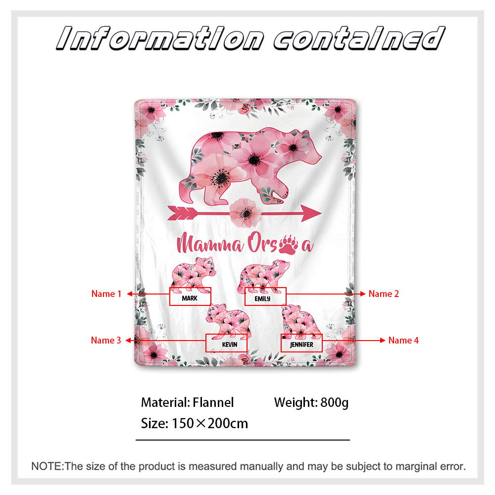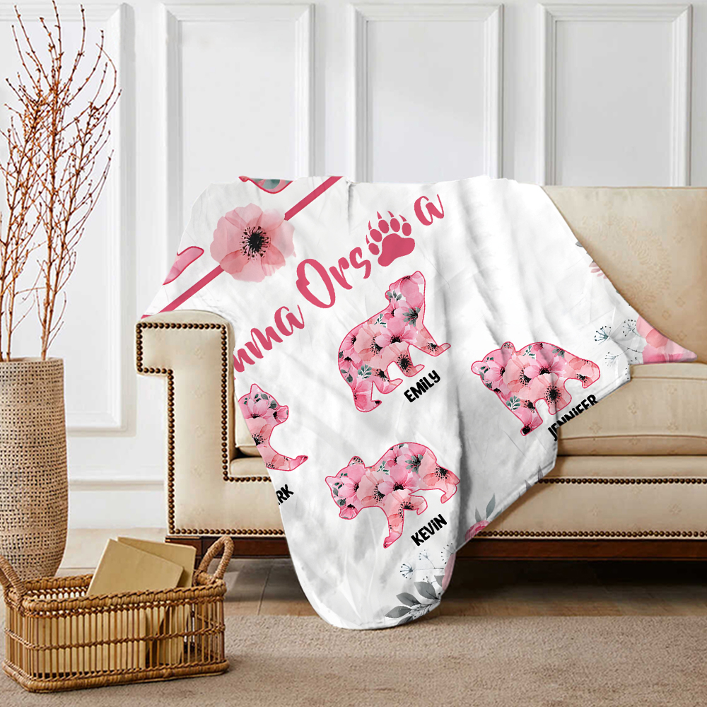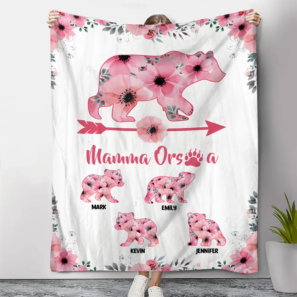 Mamma orsa-Coperta con fiore rosa 4 nomi personalizzati regalo per mamma/nonna
