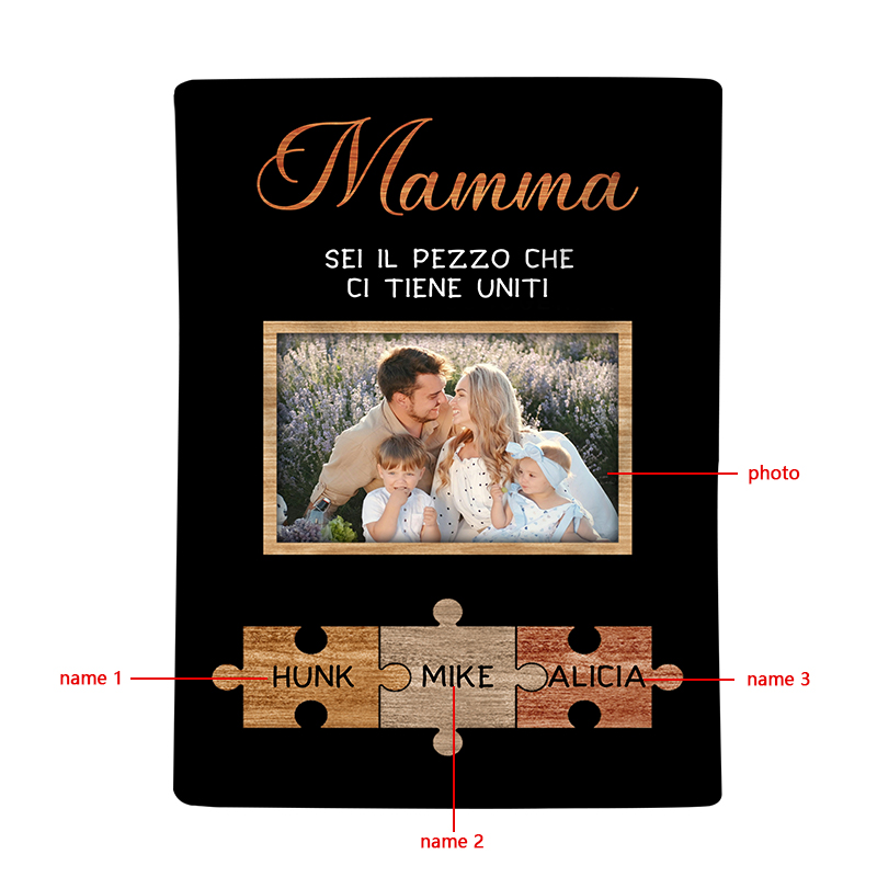 Mamma/Papà Coperta puzzle regalo 3 nomi e 1 foto personalizzati per la famiglia