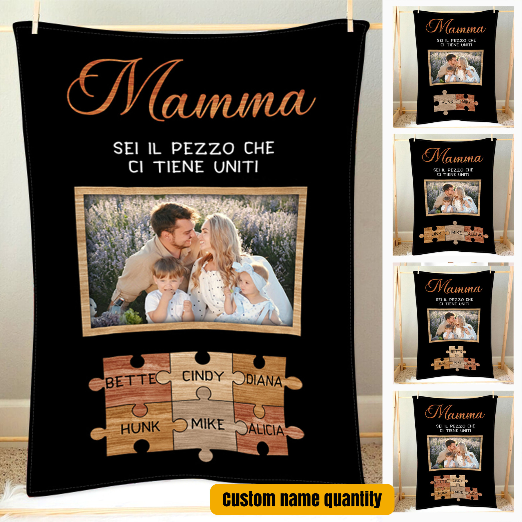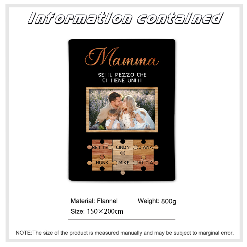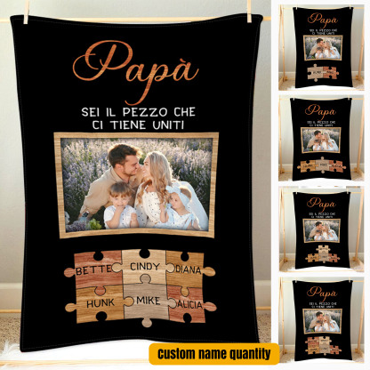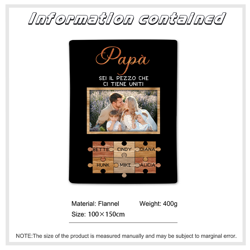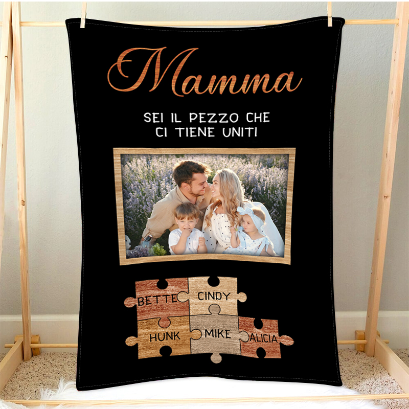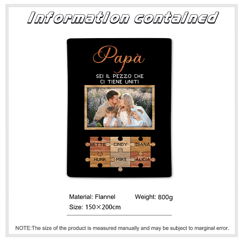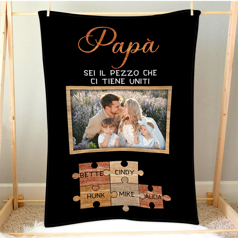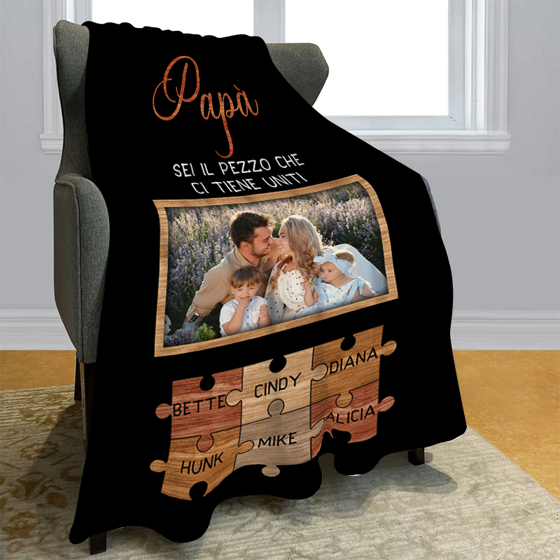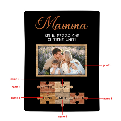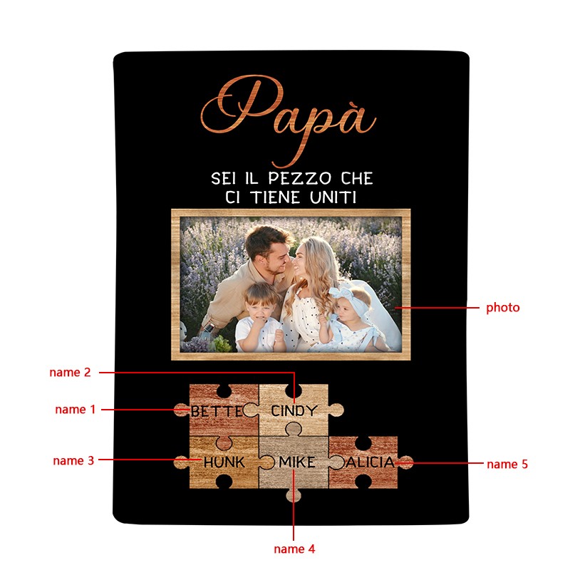Mamma/Papà Coperta puzzle regalo 5 nomi e 1 foto personalizzati per la famiglia