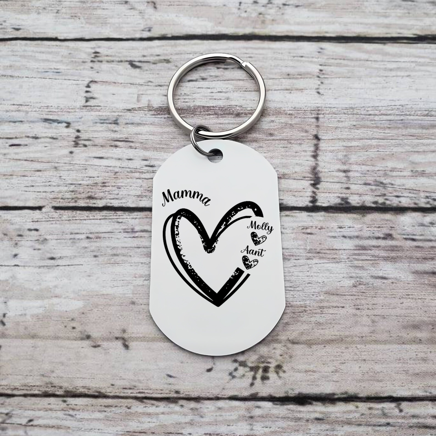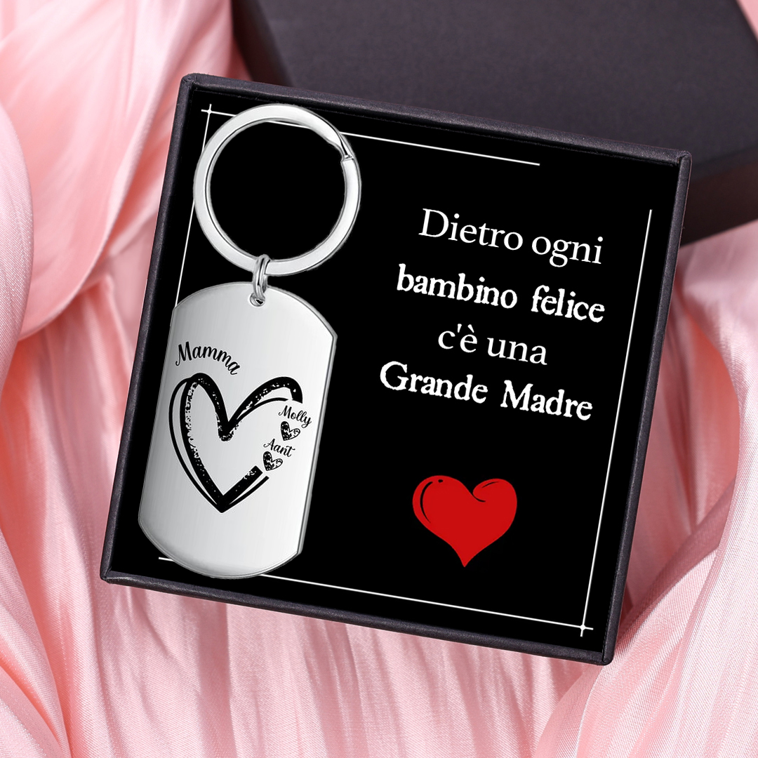Mamma-Portachiavi cuore 2 nomi personalizzati regalo per mamma/nonna