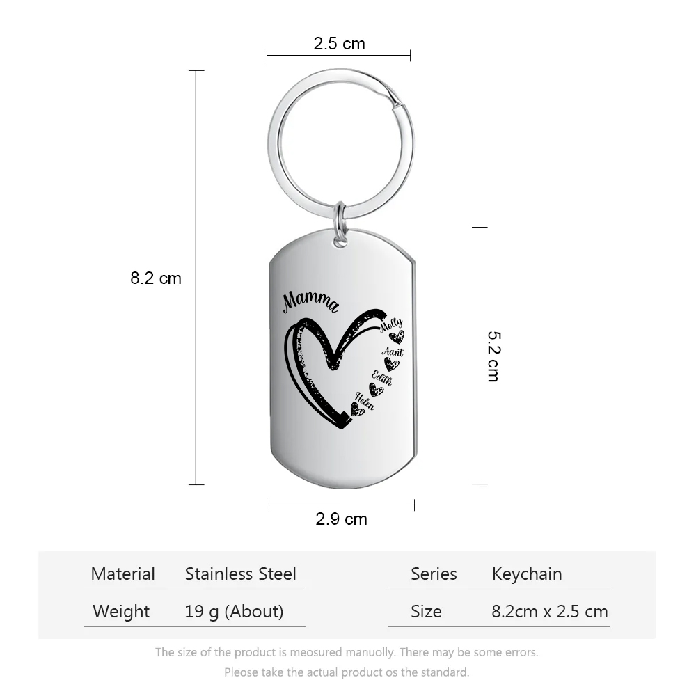 Mamma-Portachiavi cuore 4 nomi personalizzati regalo per mamma/nonna