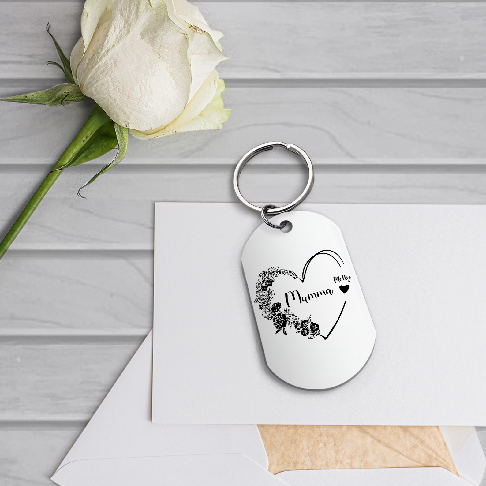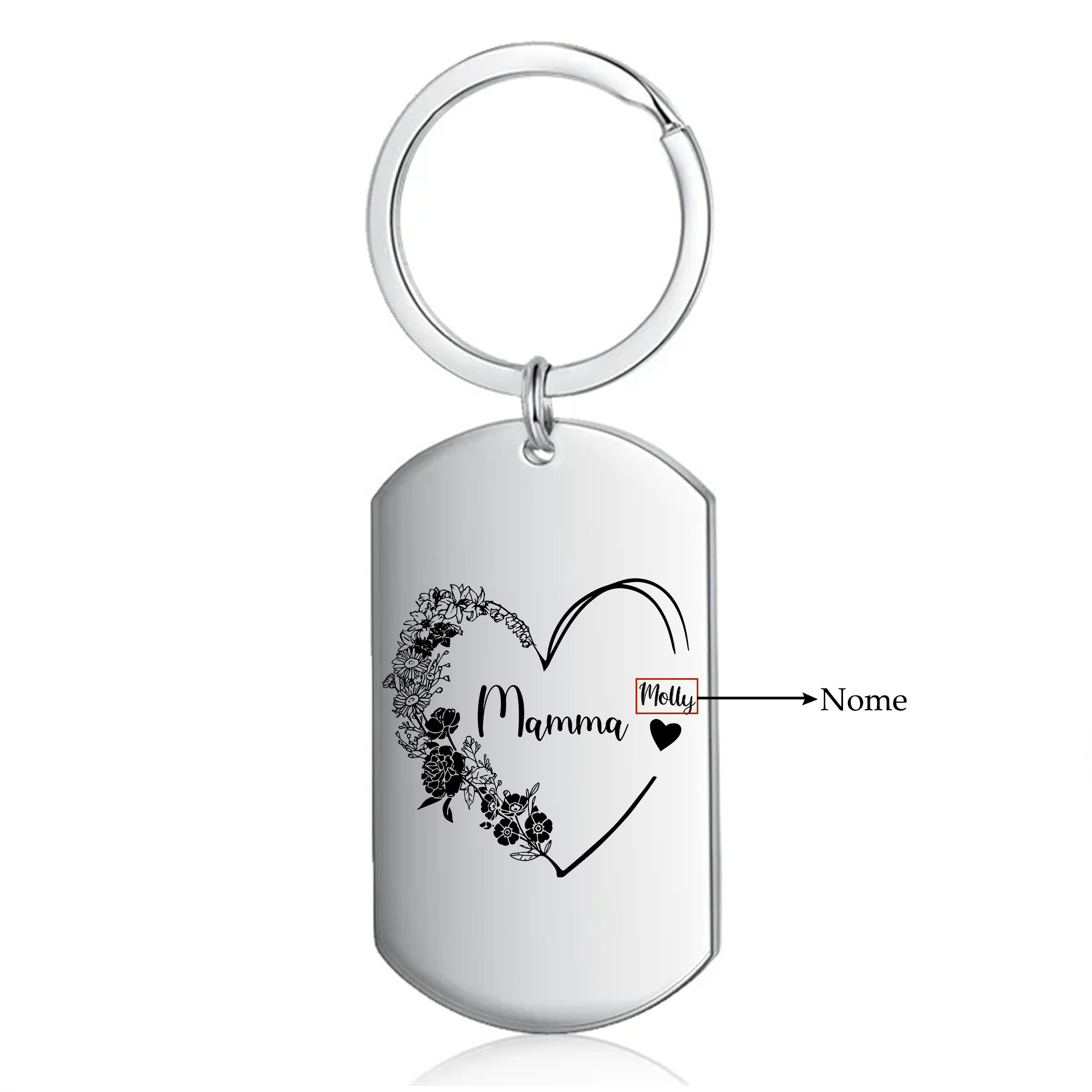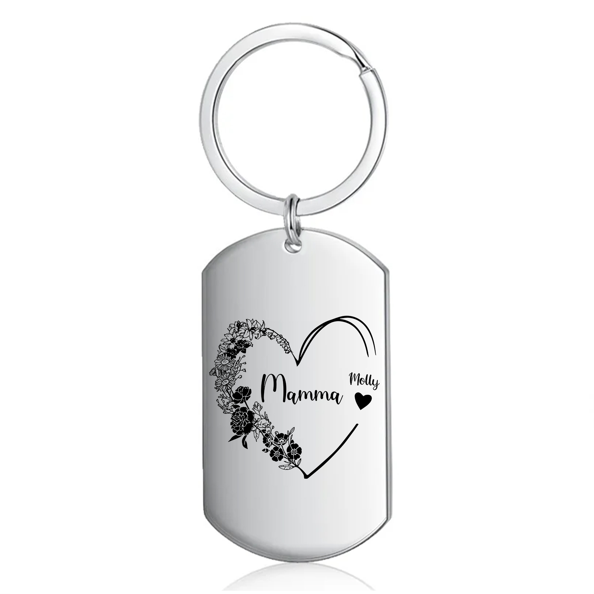 Mamma-Portachiavi fiore cuore 1 nome personalizzato regalo per mamma/nonna