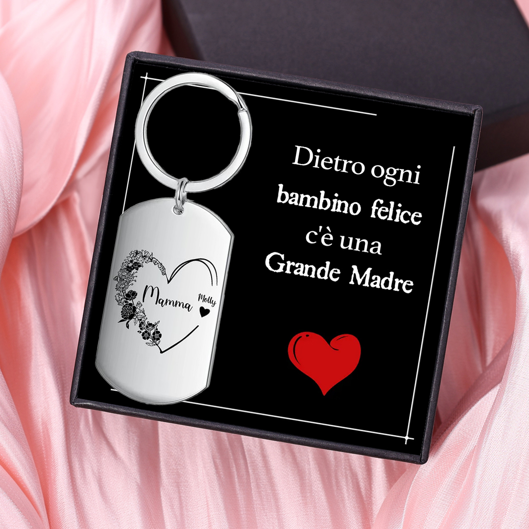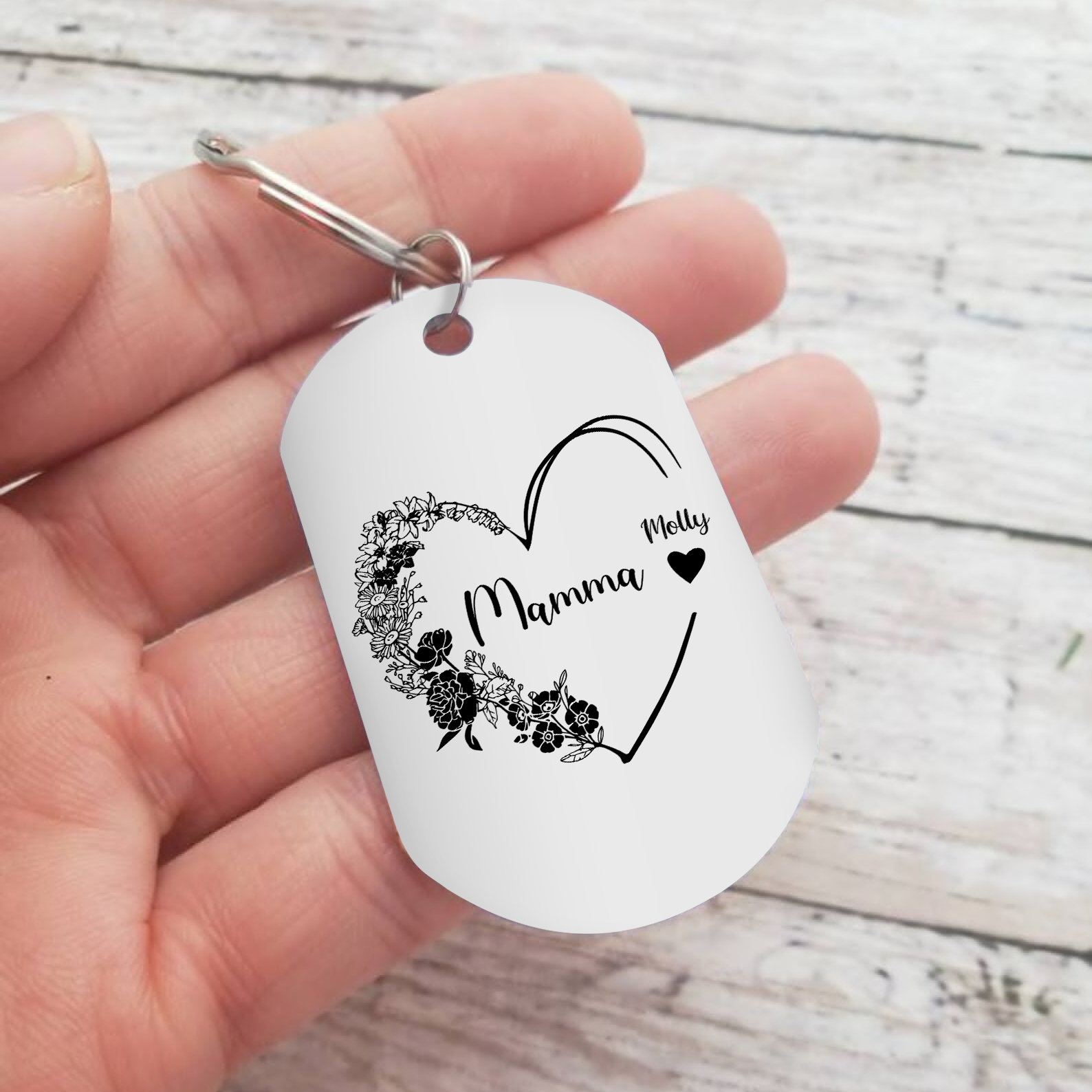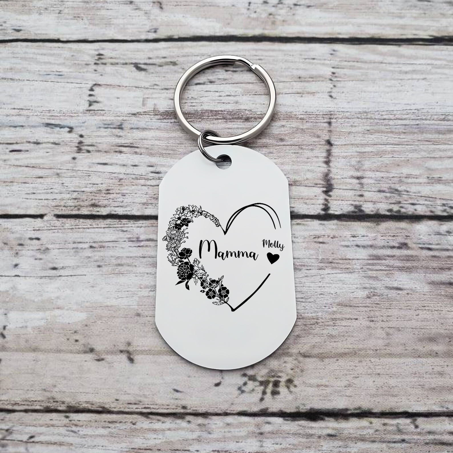 Mamma-Portachiavi fiore cuore 1 nome personalizzato regalo per mamma/nonna