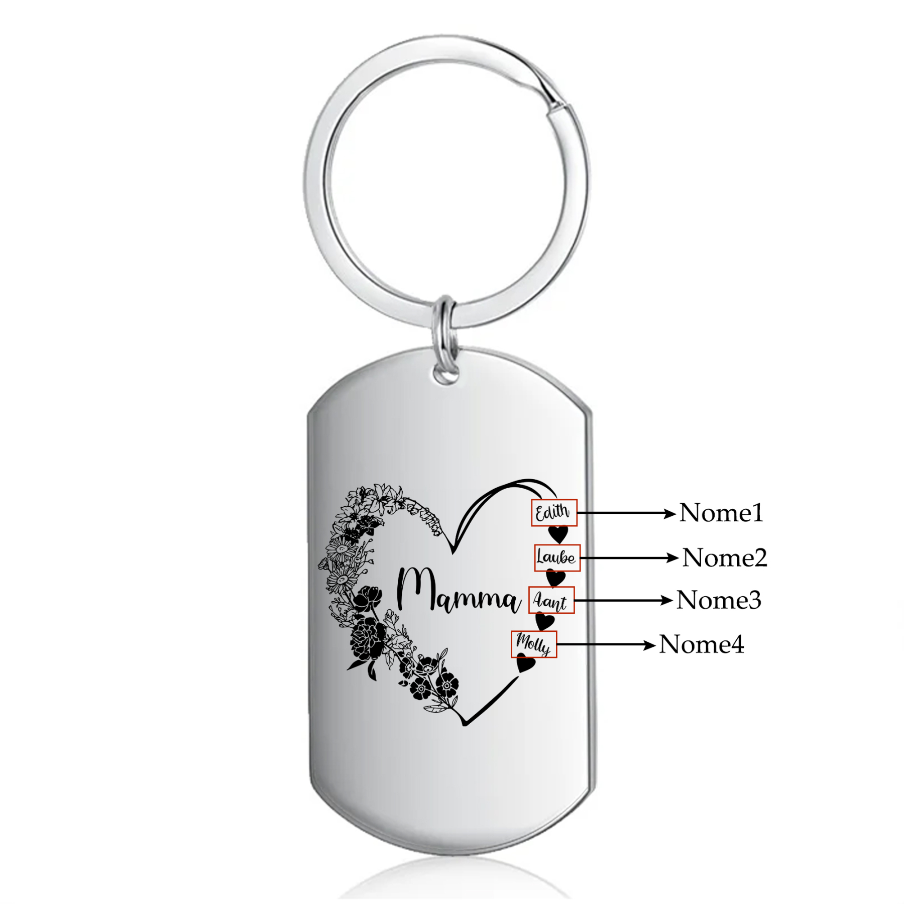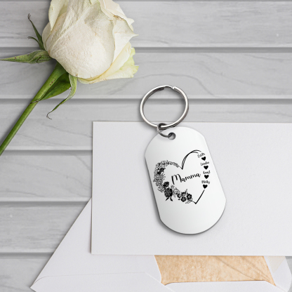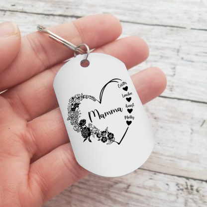 Mamma-Portachiavi fiore cuore 4 nomi personalizzati regalo per mamma/nonna