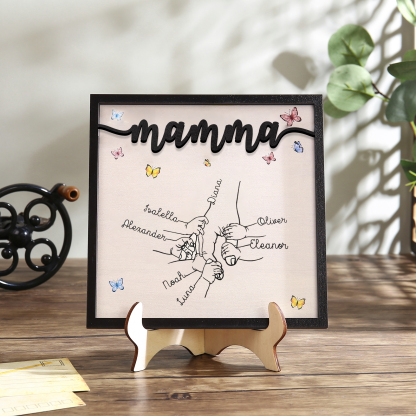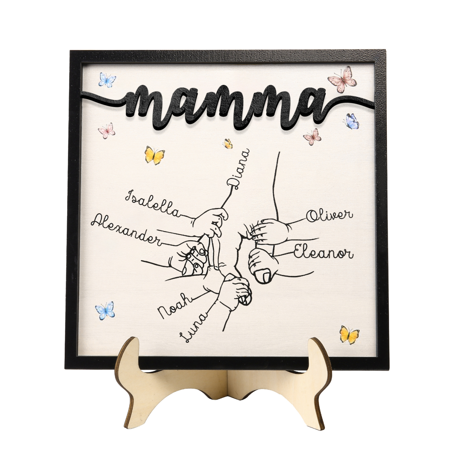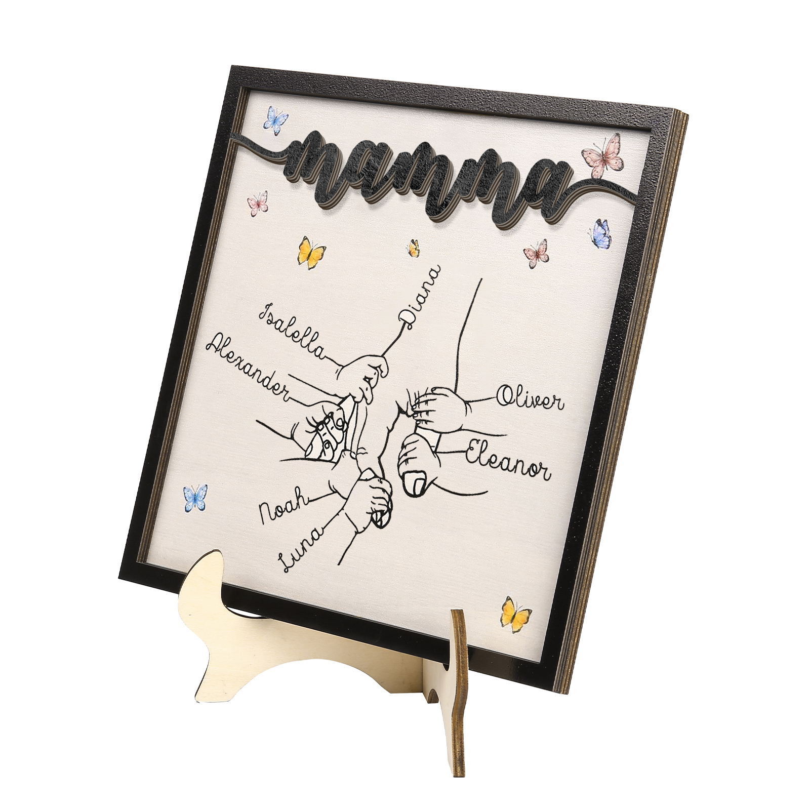 Mamma-Targa di Legno mano nella mano 7 nomi personalizzati regalo Per mamma/nonna
