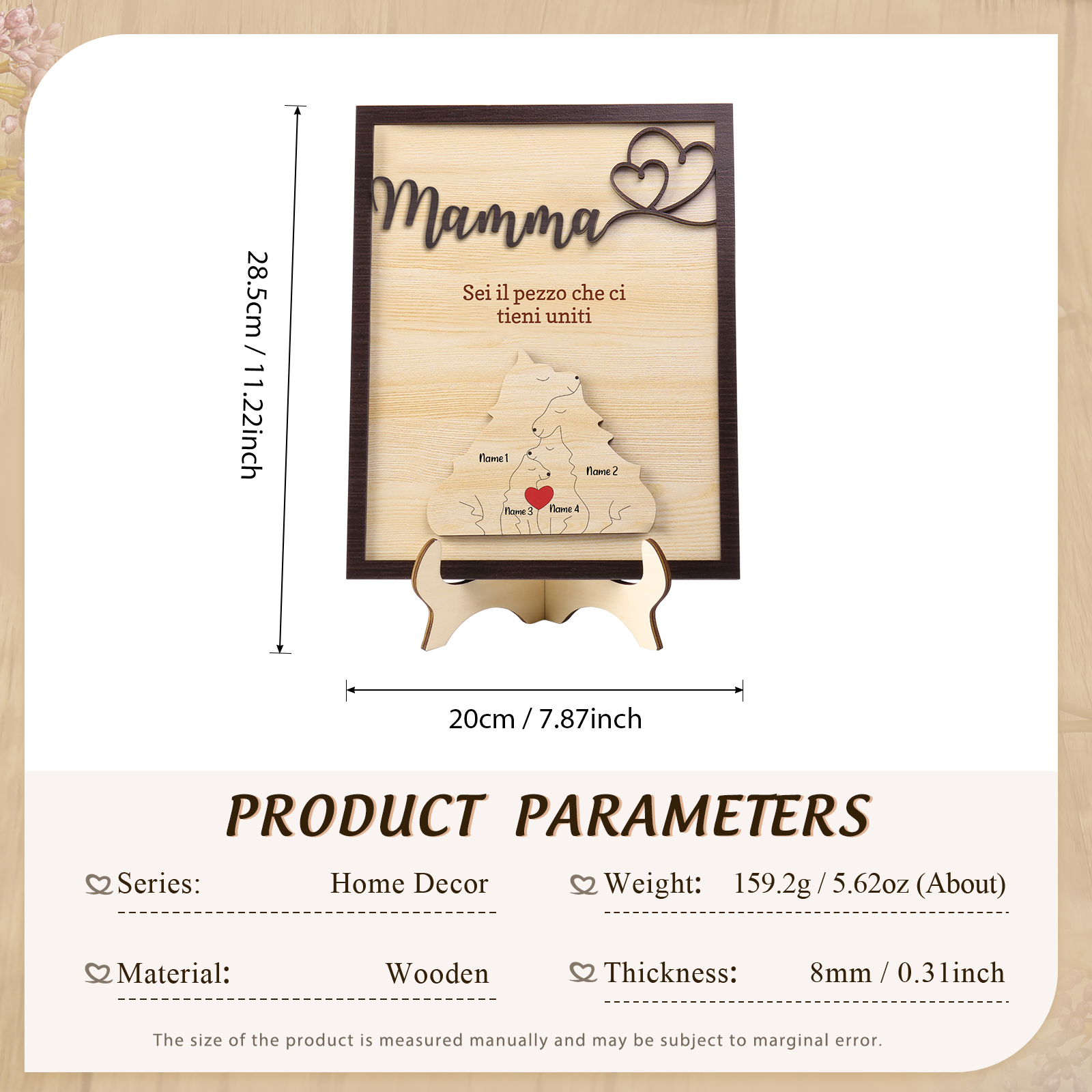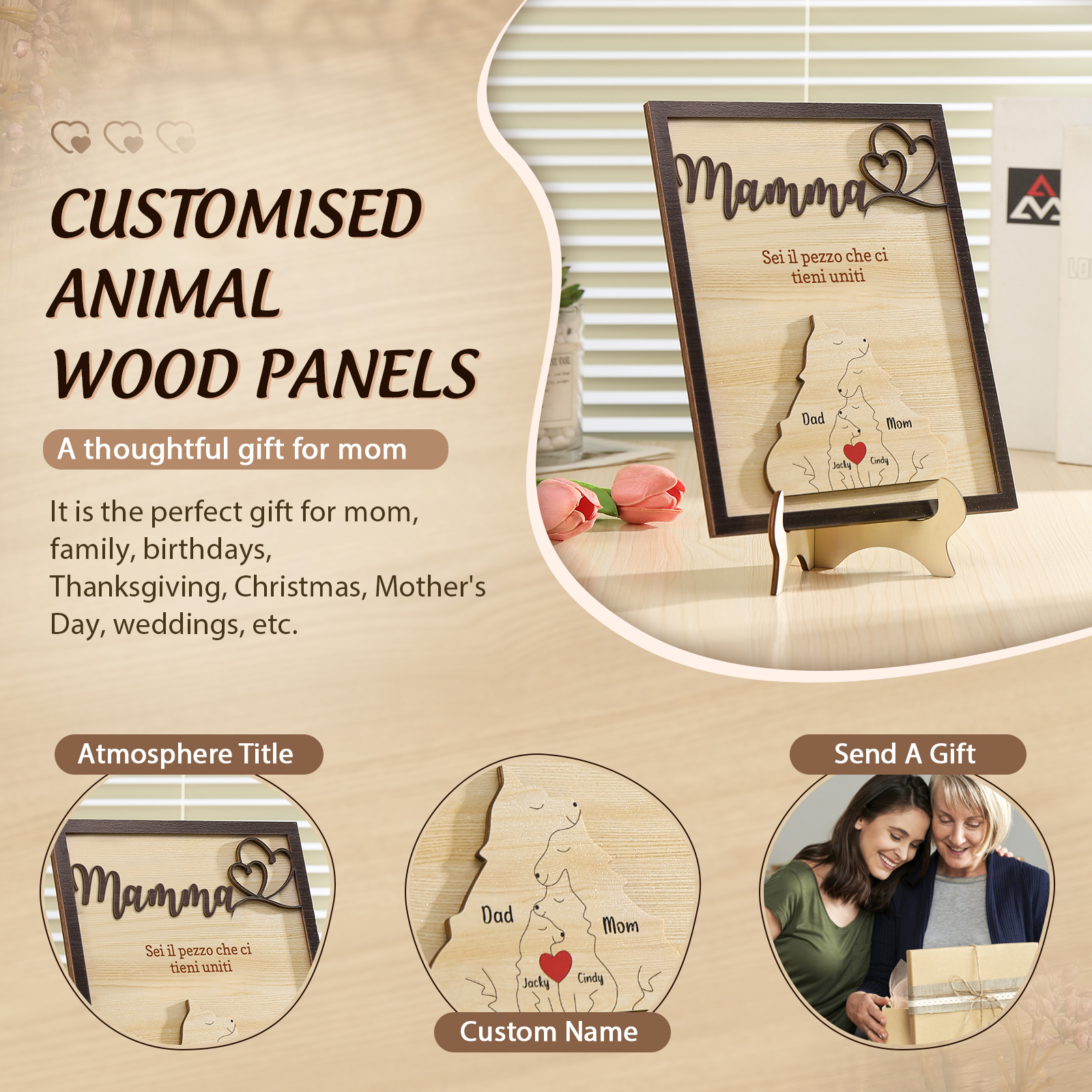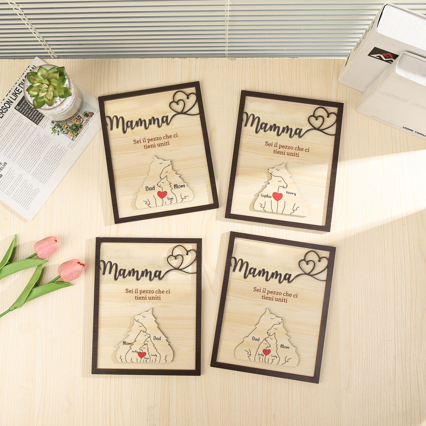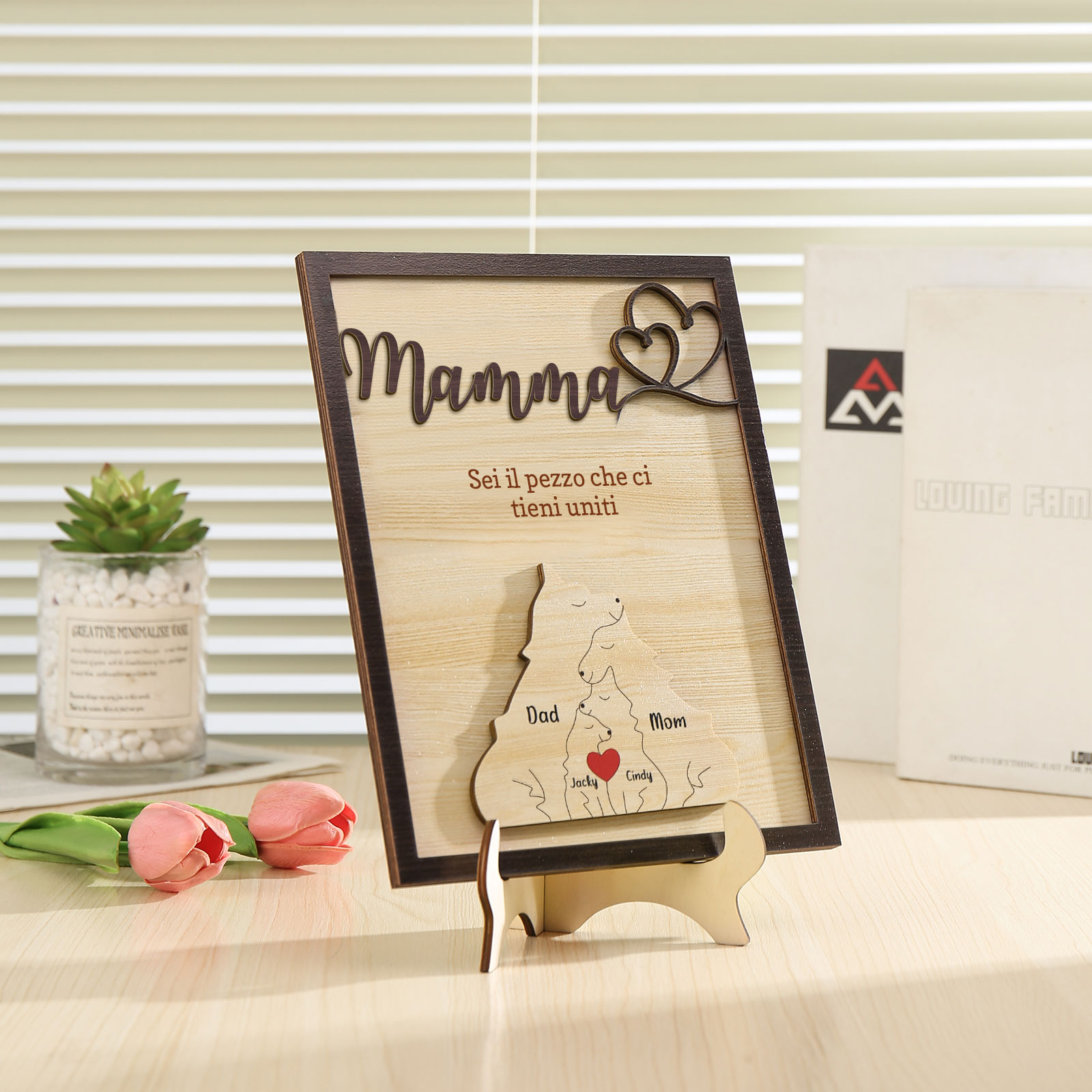 Mamma-Targa in legno con puzzle di famiglia orso 4 nomi personalizzati regalo per famiglia