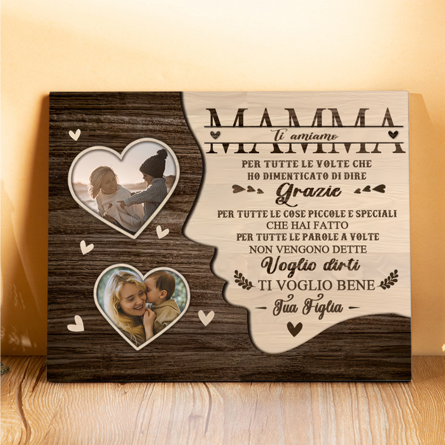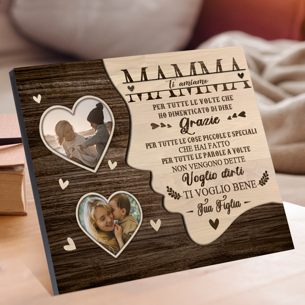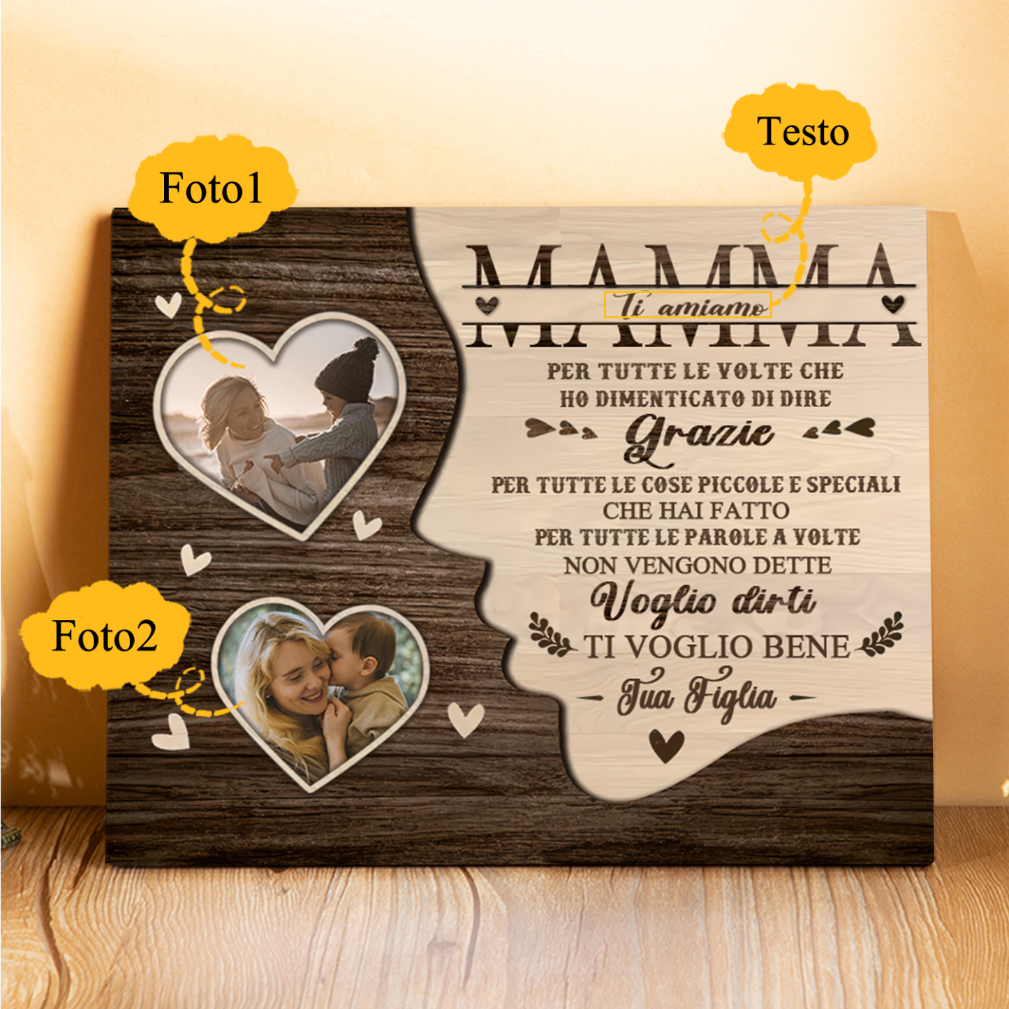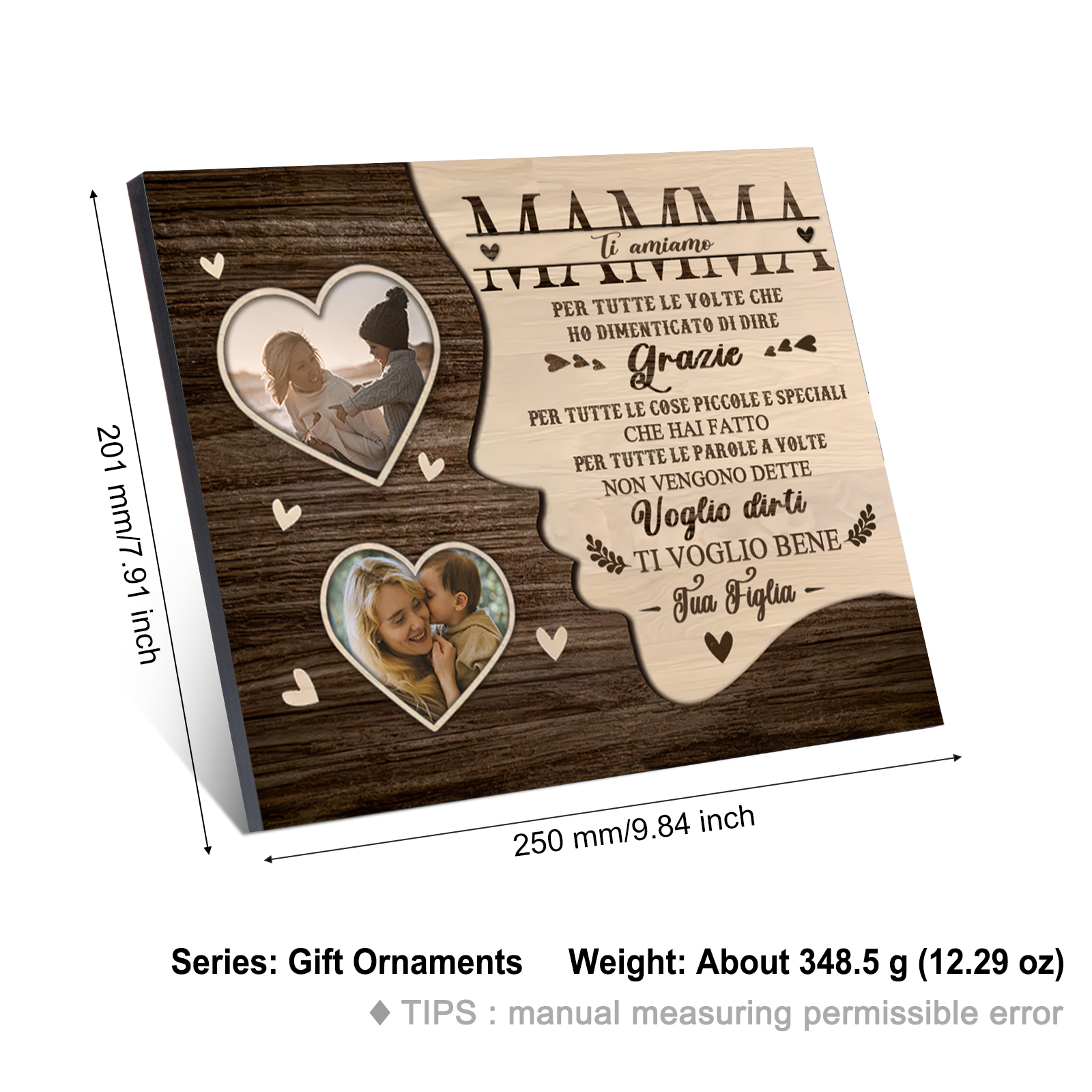 Mamma-Targa in legno cuore nell'albero con 1 testo e 2 foto personalizzati regalo per mamma