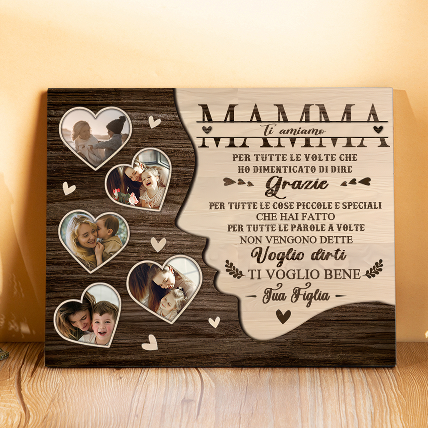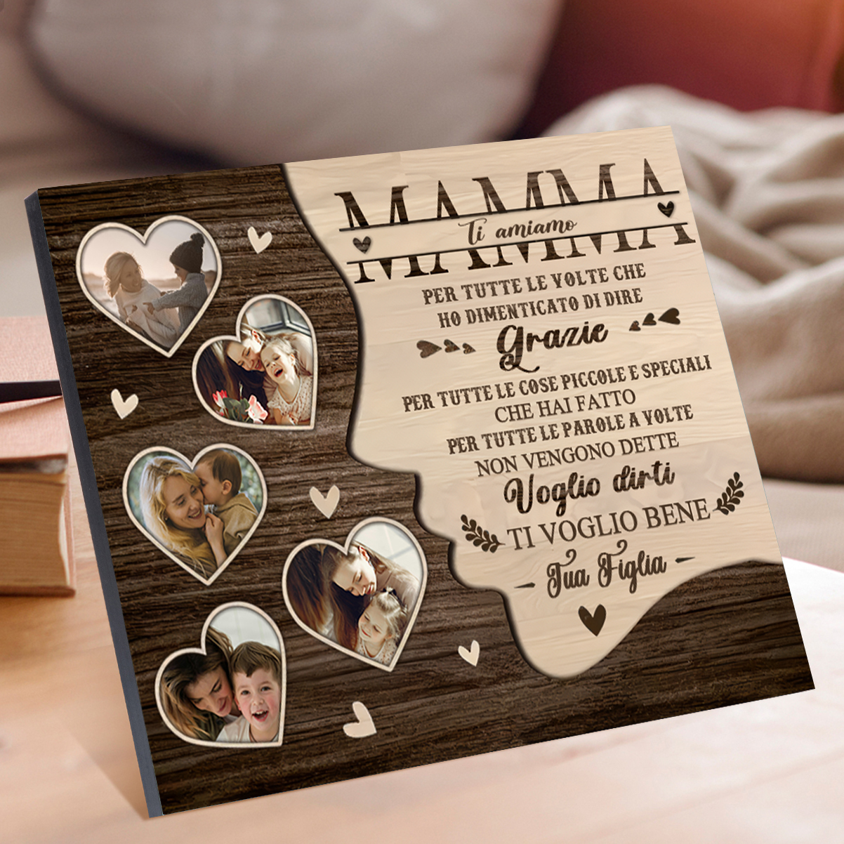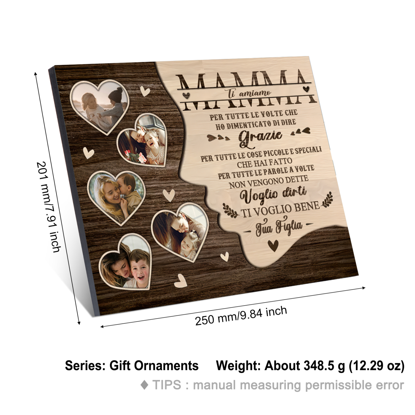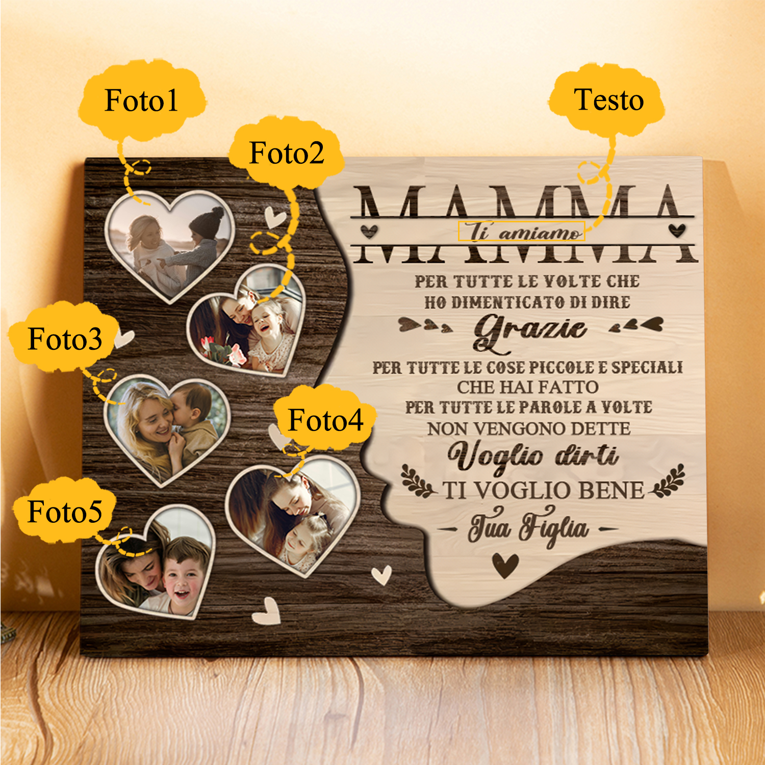 Mamma-Targa in legno cuore nell'albero con 1 testo e 5 foto personalizzati regalo per mamma