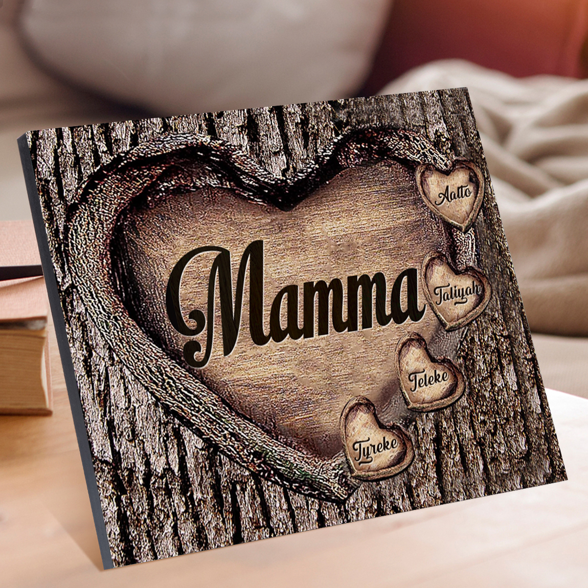 Mamma-Targa in legno cuore nell'albero con 4 nomi personalizzati regalo per mamma