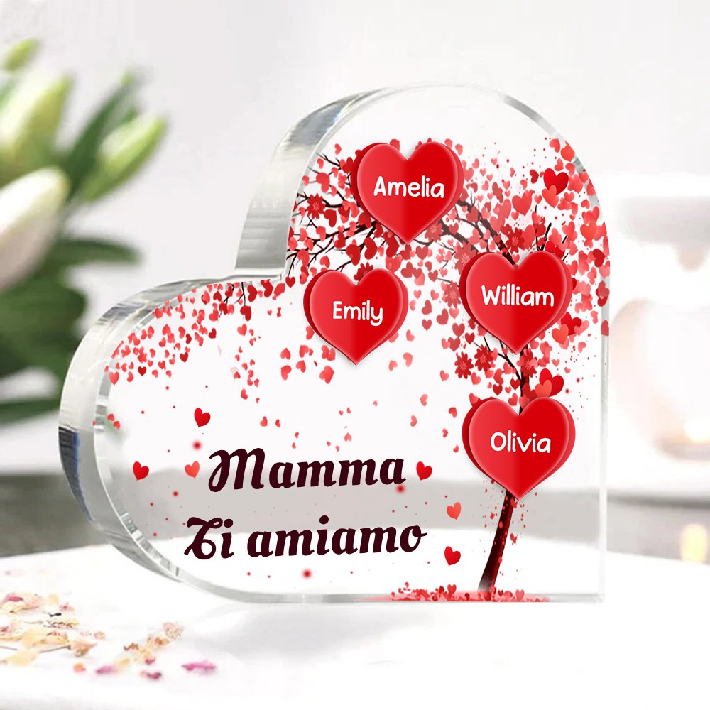 MAMMA Ti amiamo-Decorazione acrilica albero di cuore rosso 4 nomi e 1 testo personalizzati per mamma/nonna