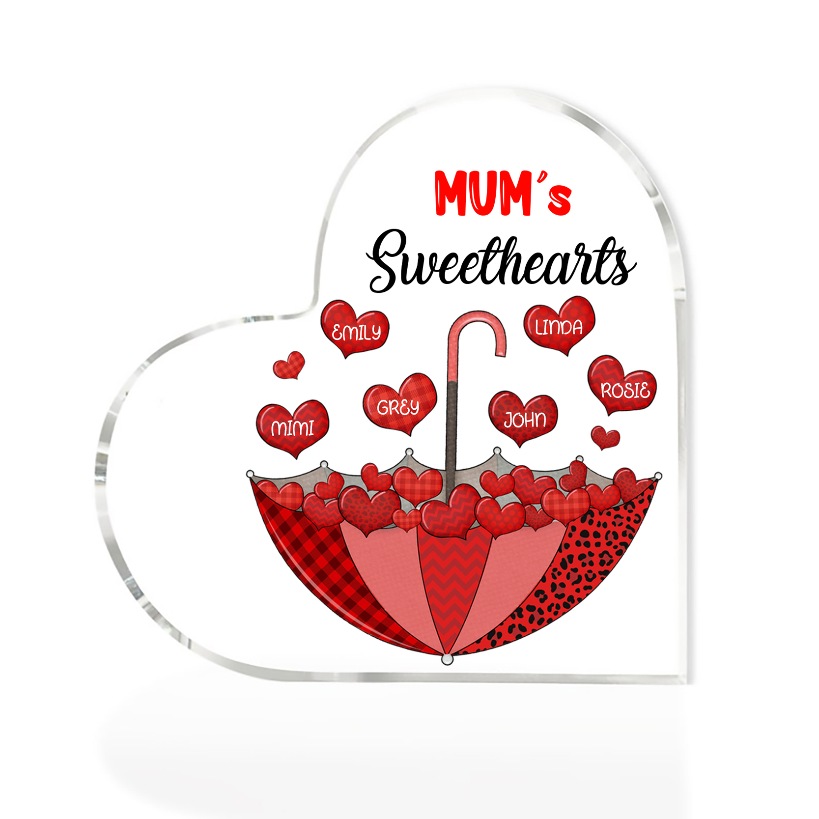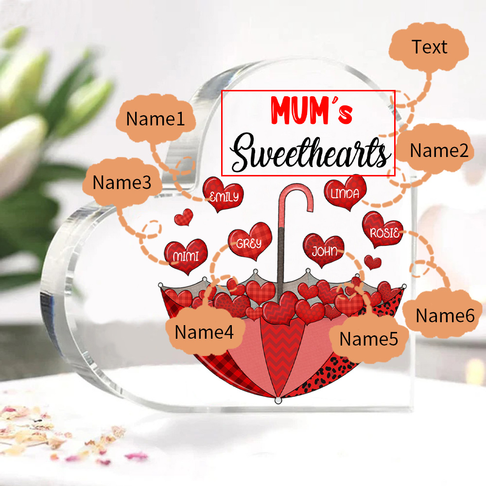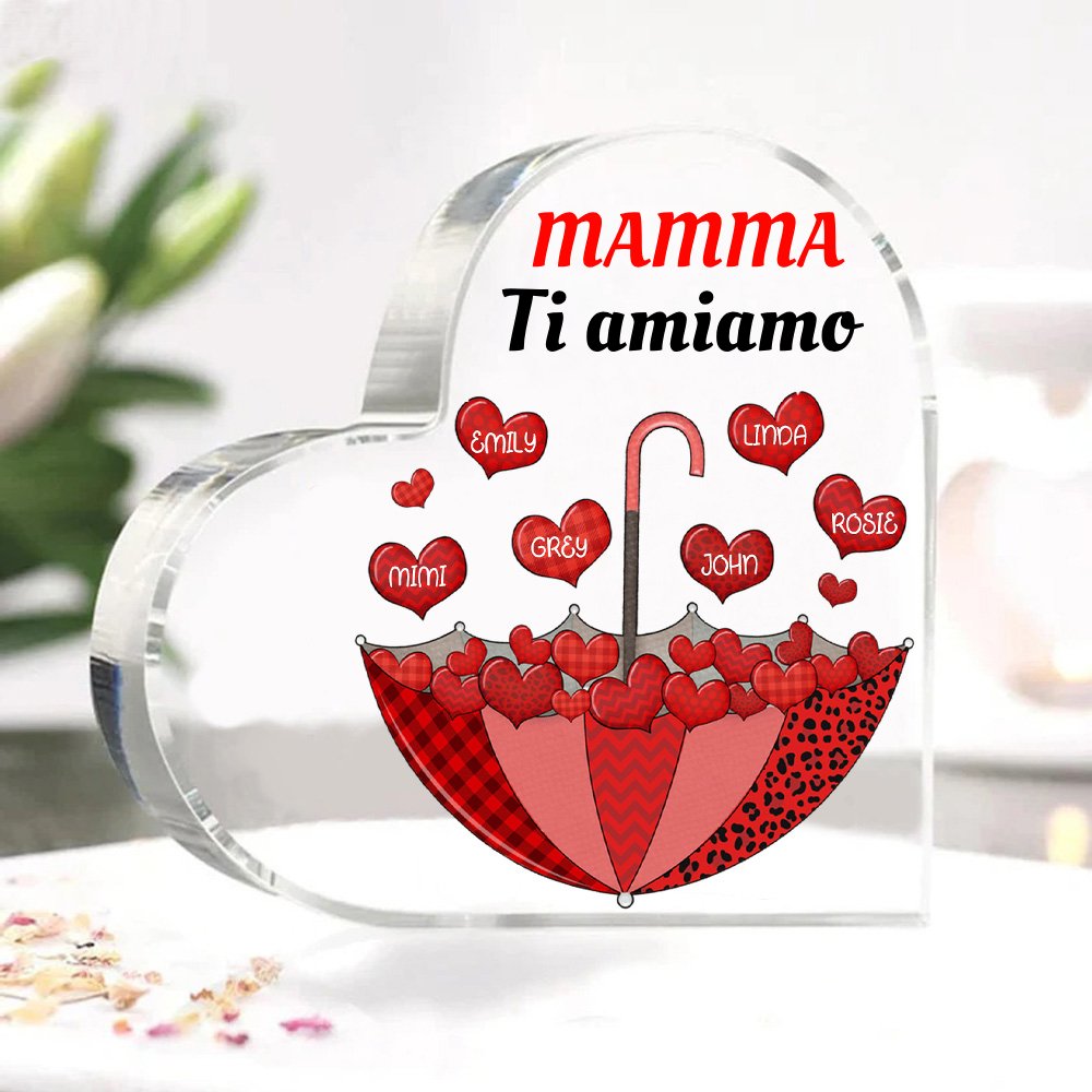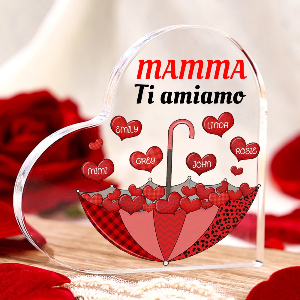 MAMMA Ti amiamo-Decorazione acrilica ombrello e cuore 6 nomi e 1 testo personalizzati per mamma/nonna