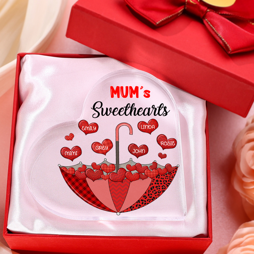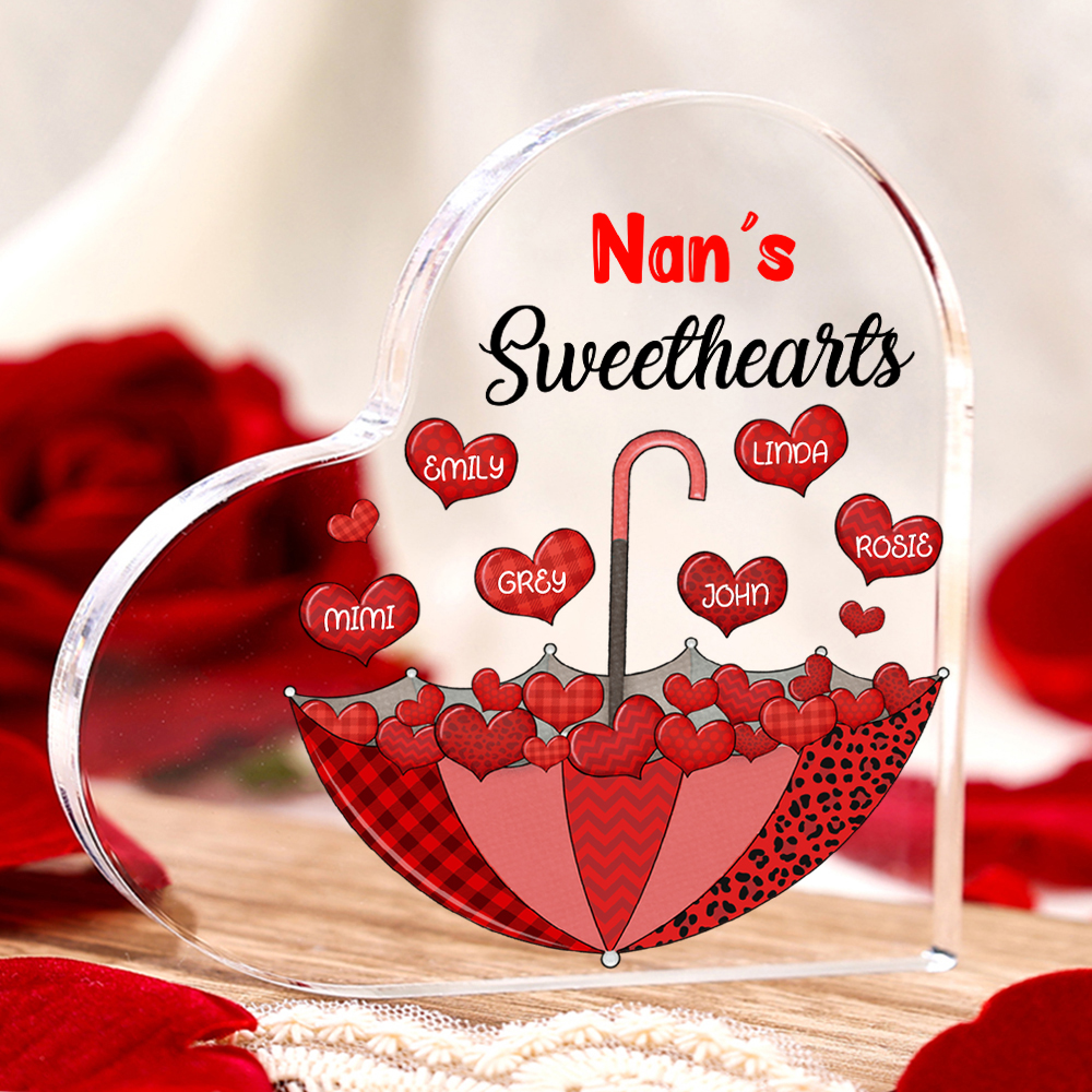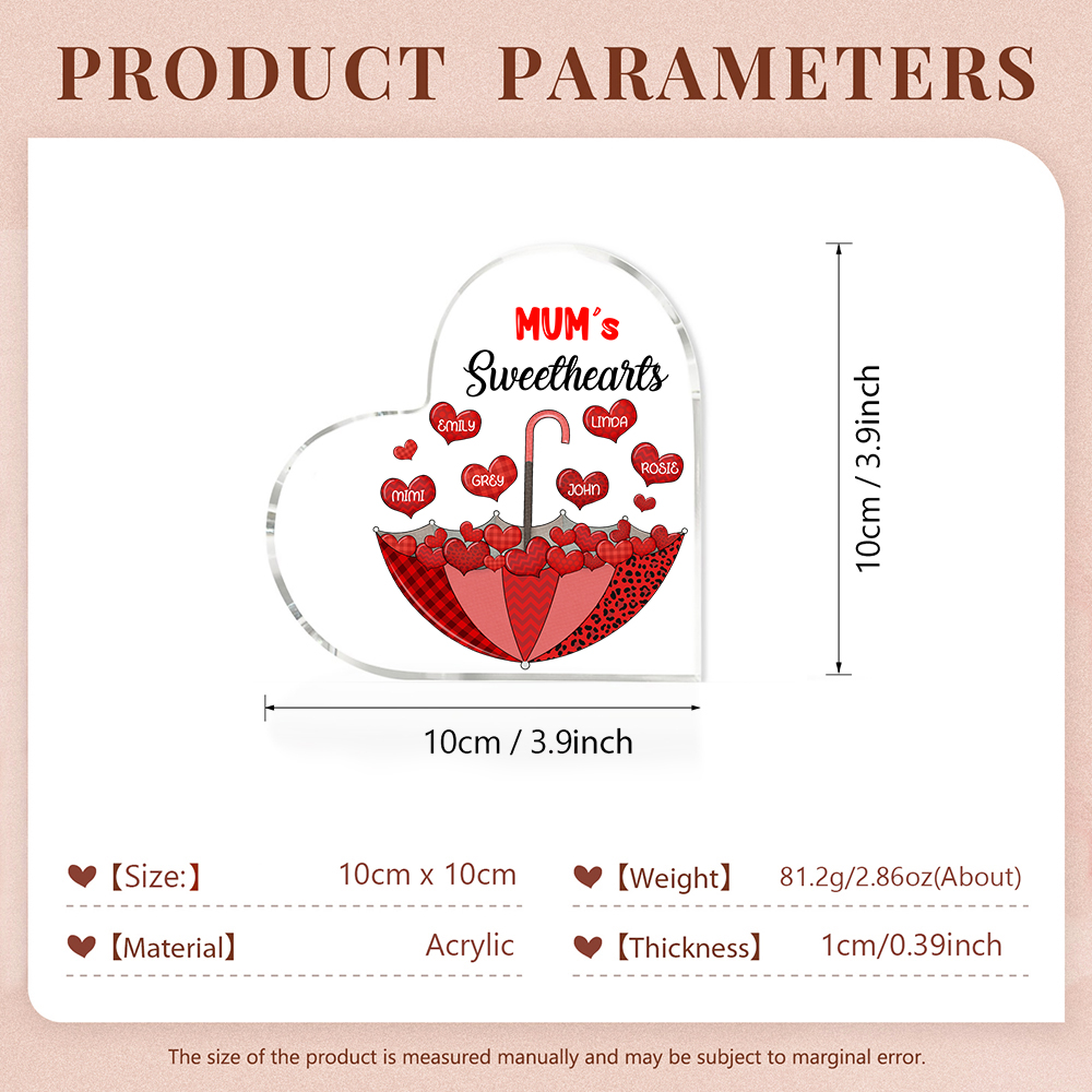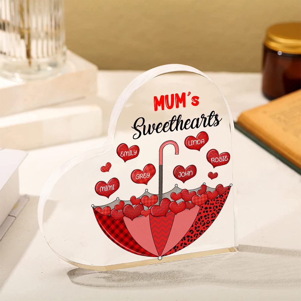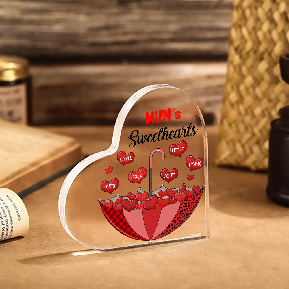 MAMMA Ti amiamo-Decorazione acrilica ombrello e cuore 6 nomi e 1 testo personalizzati per mamma/nonna