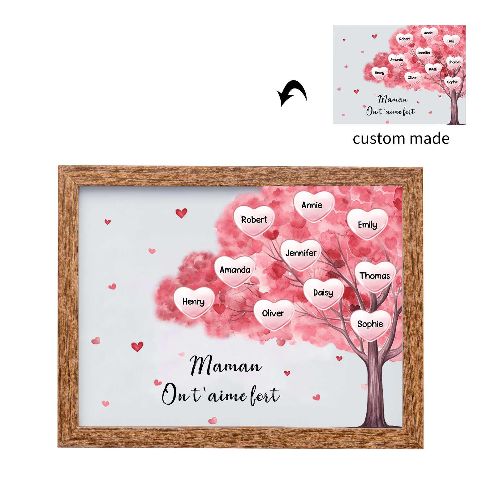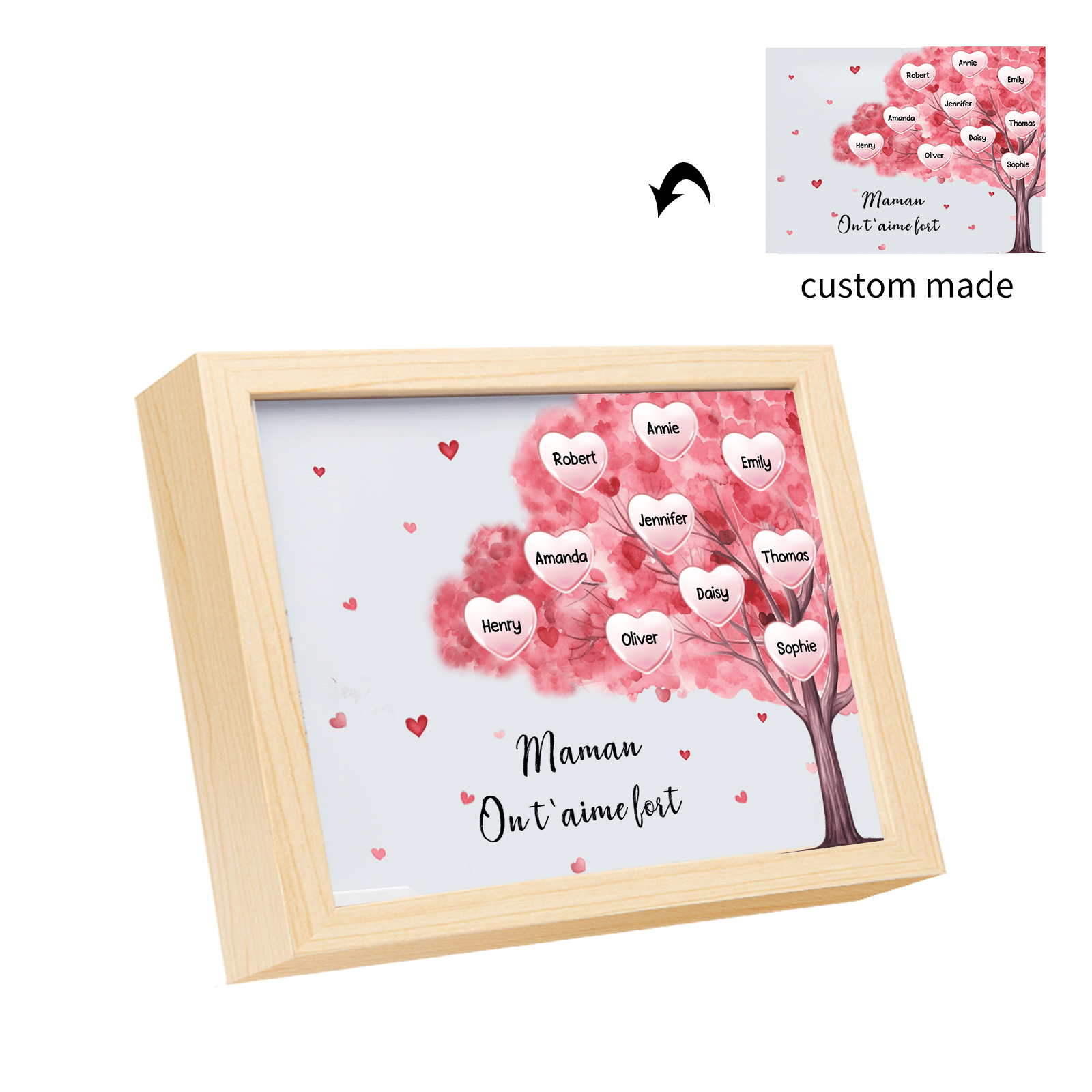 Mamma ti voglio bene-Cornice albero di cuore con LED luce 10 nomi e 1 testo personalizzati regalo per mamma