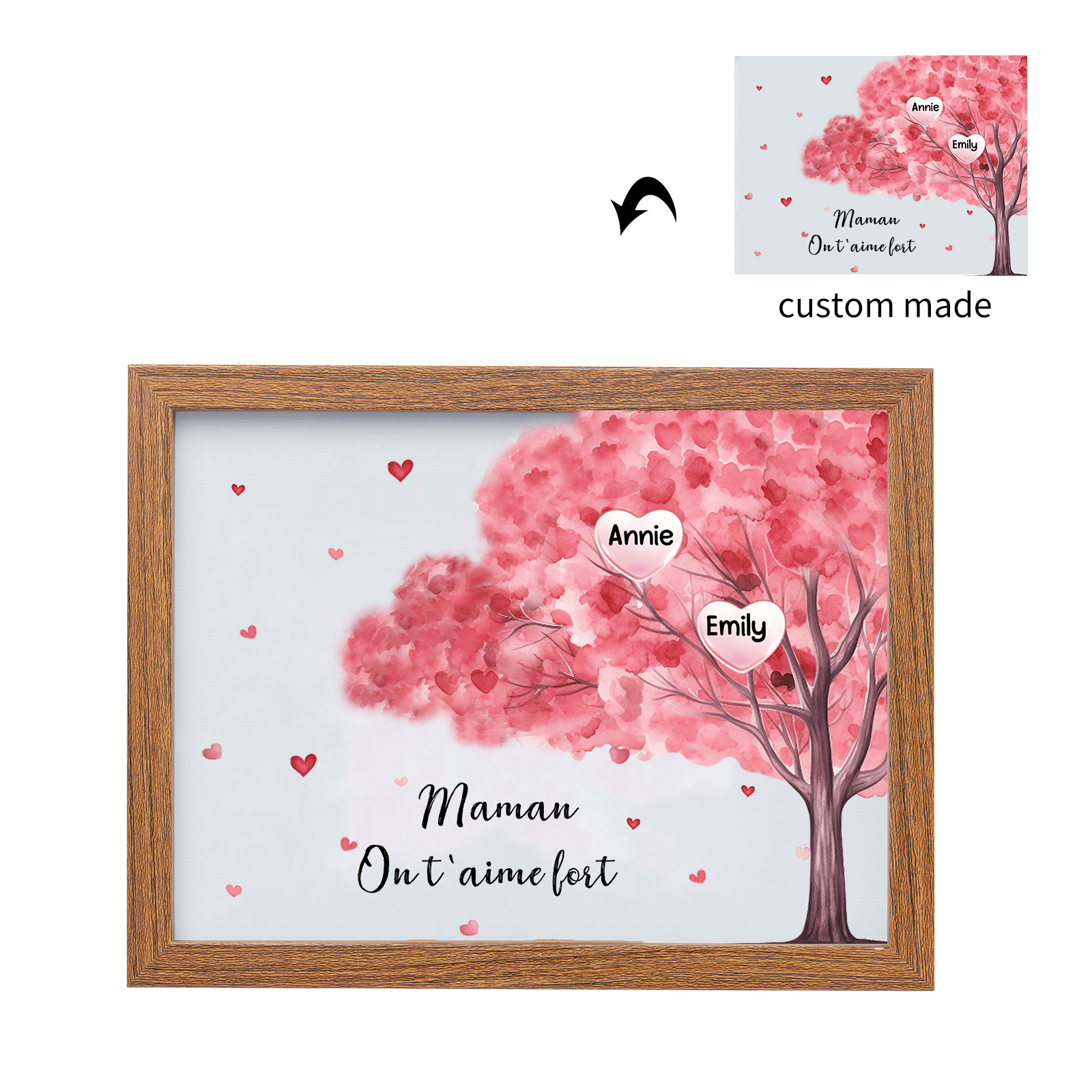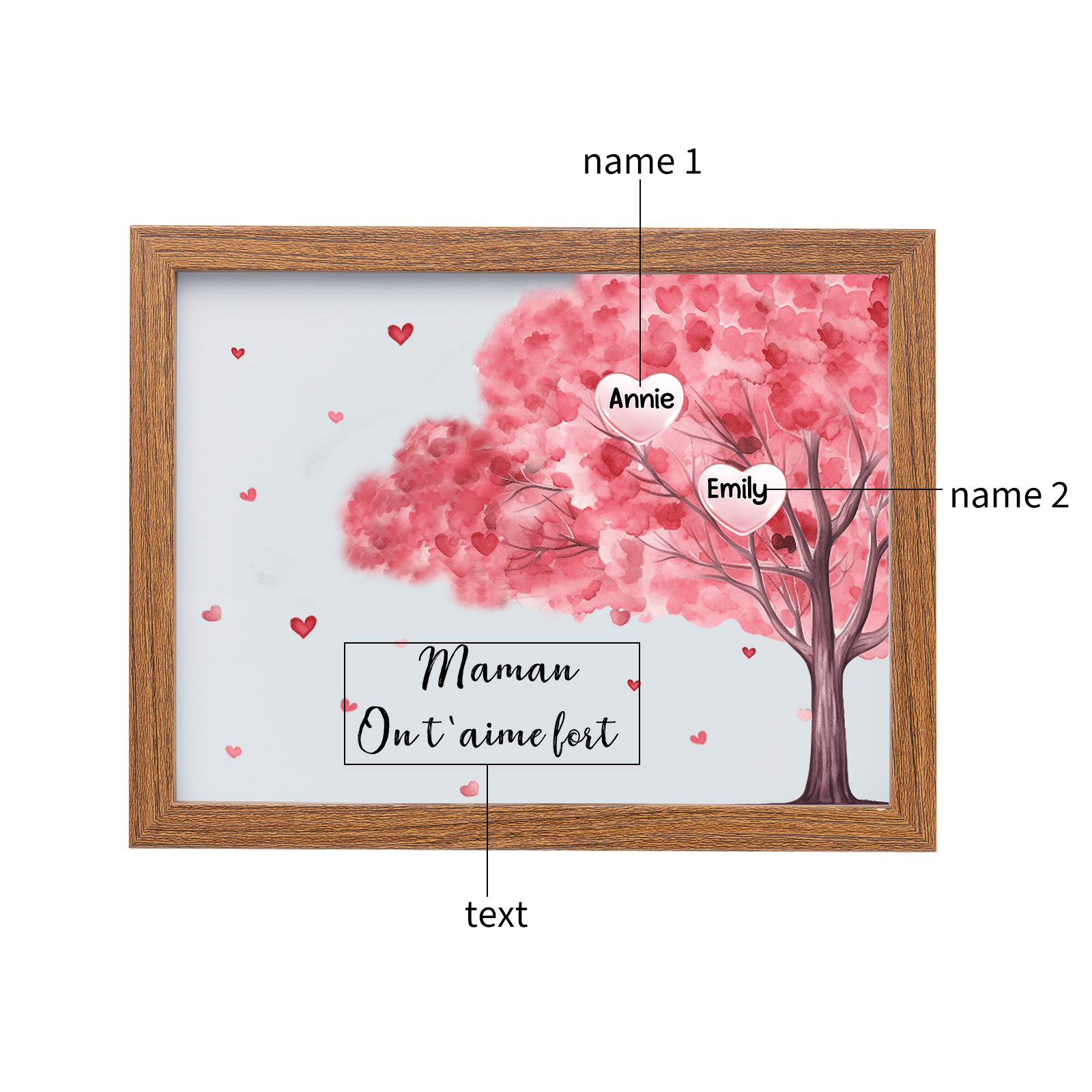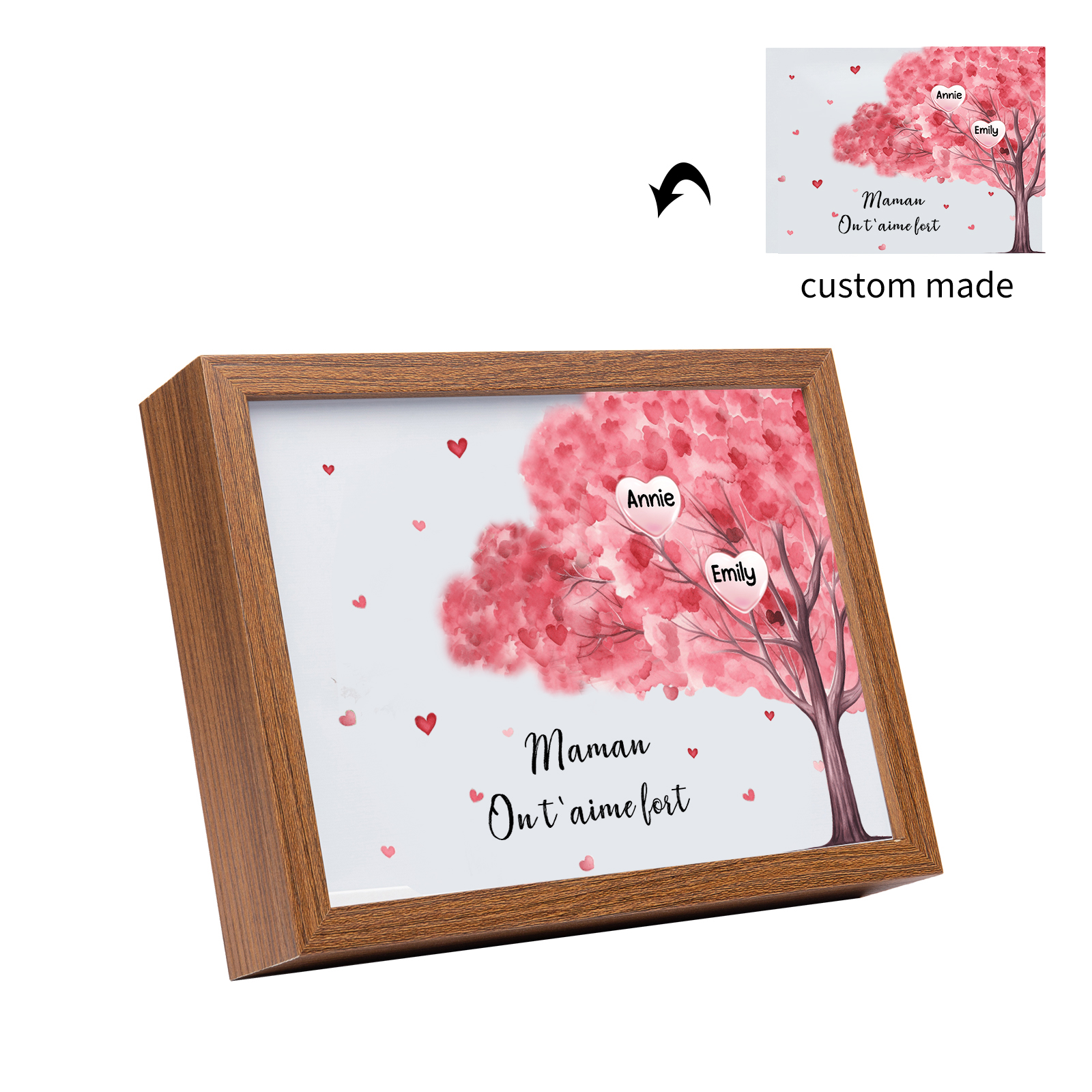 Mamma ti voglio bene-Cornice albero di cuore con LED luce 2 nomi e 1 testo personalizzati regalo per mamma