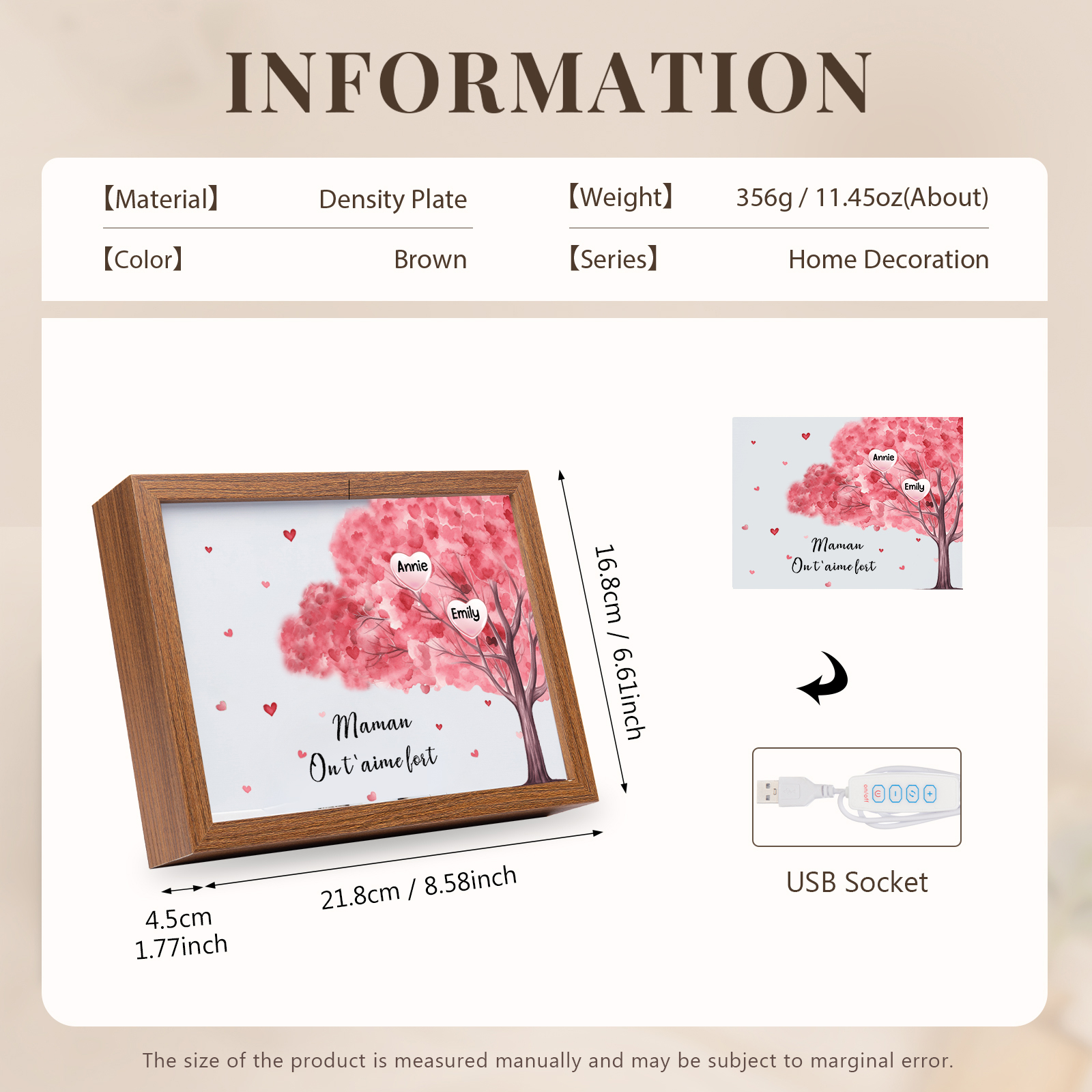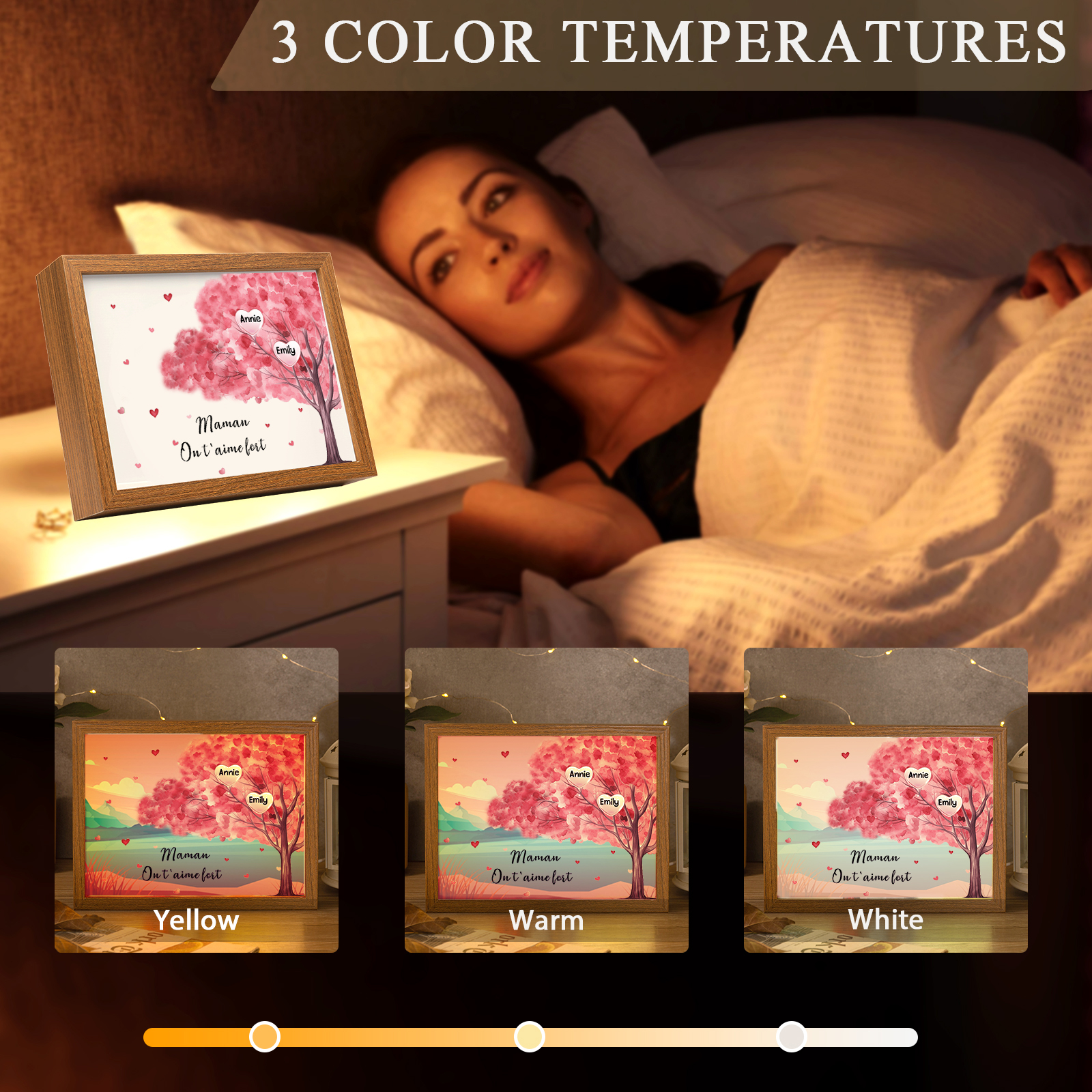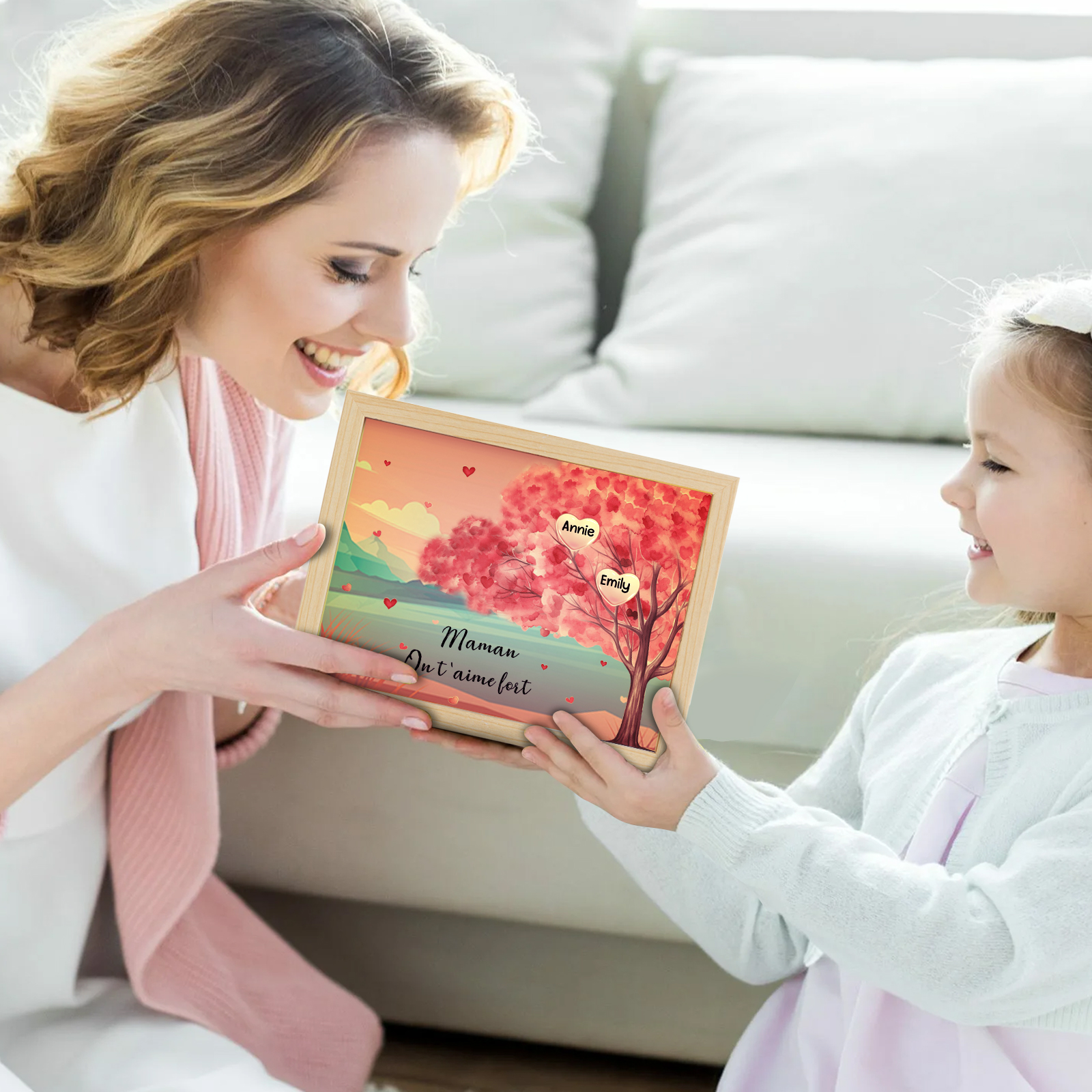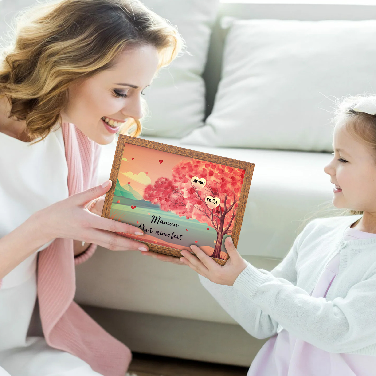Mamma ti voglio bene-Cornice albero di cuore con LED luce 2 nomi e 1 testo personalizzati regalo per mamma