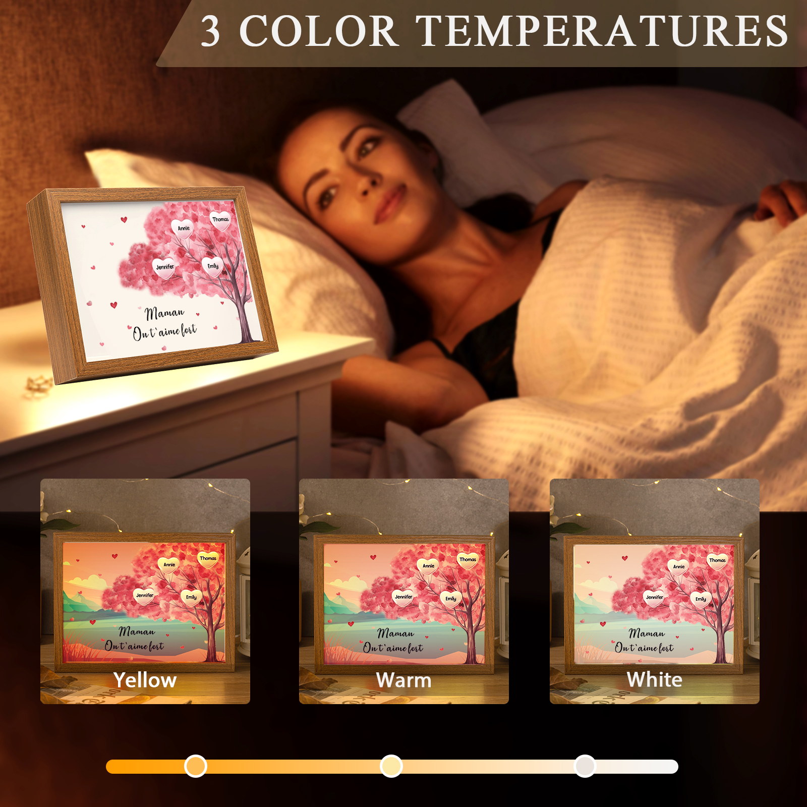 Mamma ti voglio bene-Cornice albero di cuore con LED luce 4 nomi e 1 testo personalizzati regalo per mamma