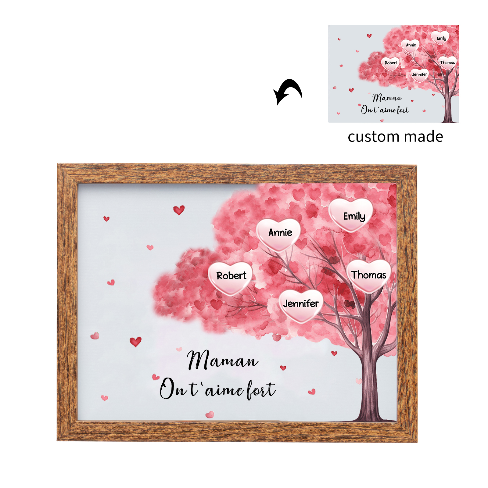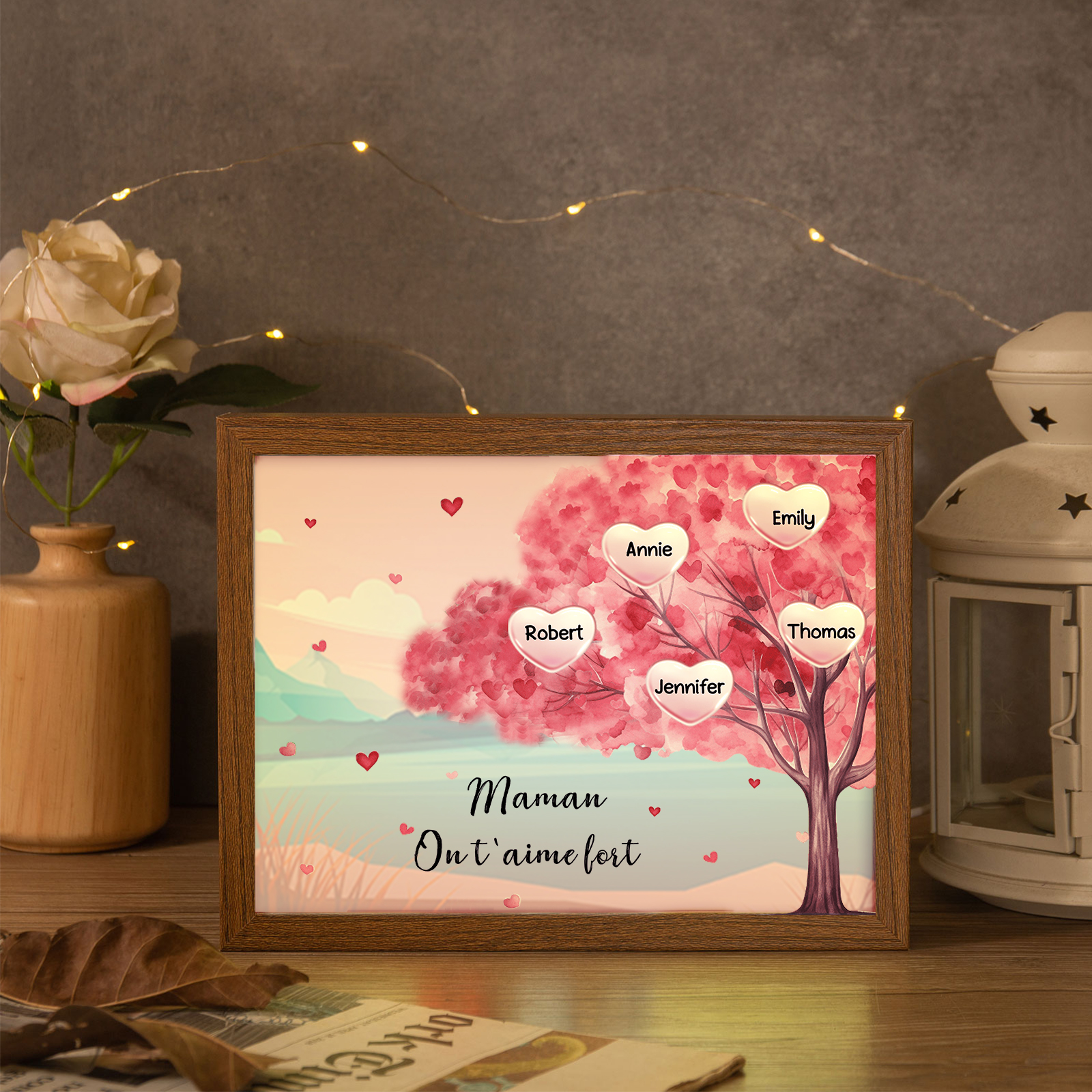 Mamma ti voglio bene-Cornice albero di cuore con LED luce 5 nomi e 1 testo personalizzati regalo per mamma