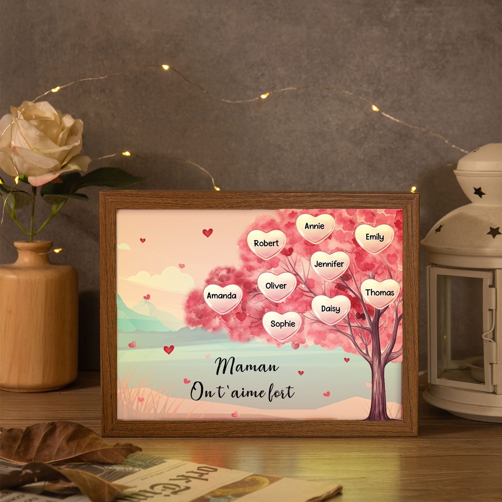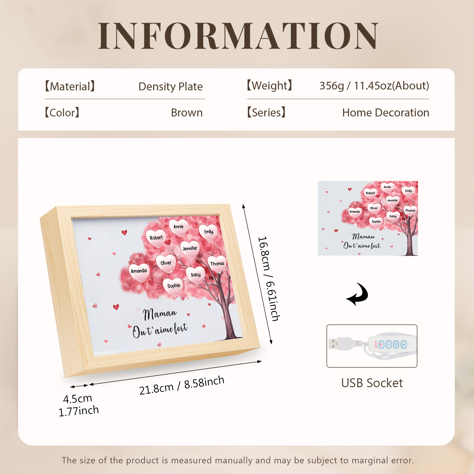 Mamma ti voglio bene-Cornice albero di cuore con LED luce 9 nomi e 1 testo personalizzati regalo per mamma