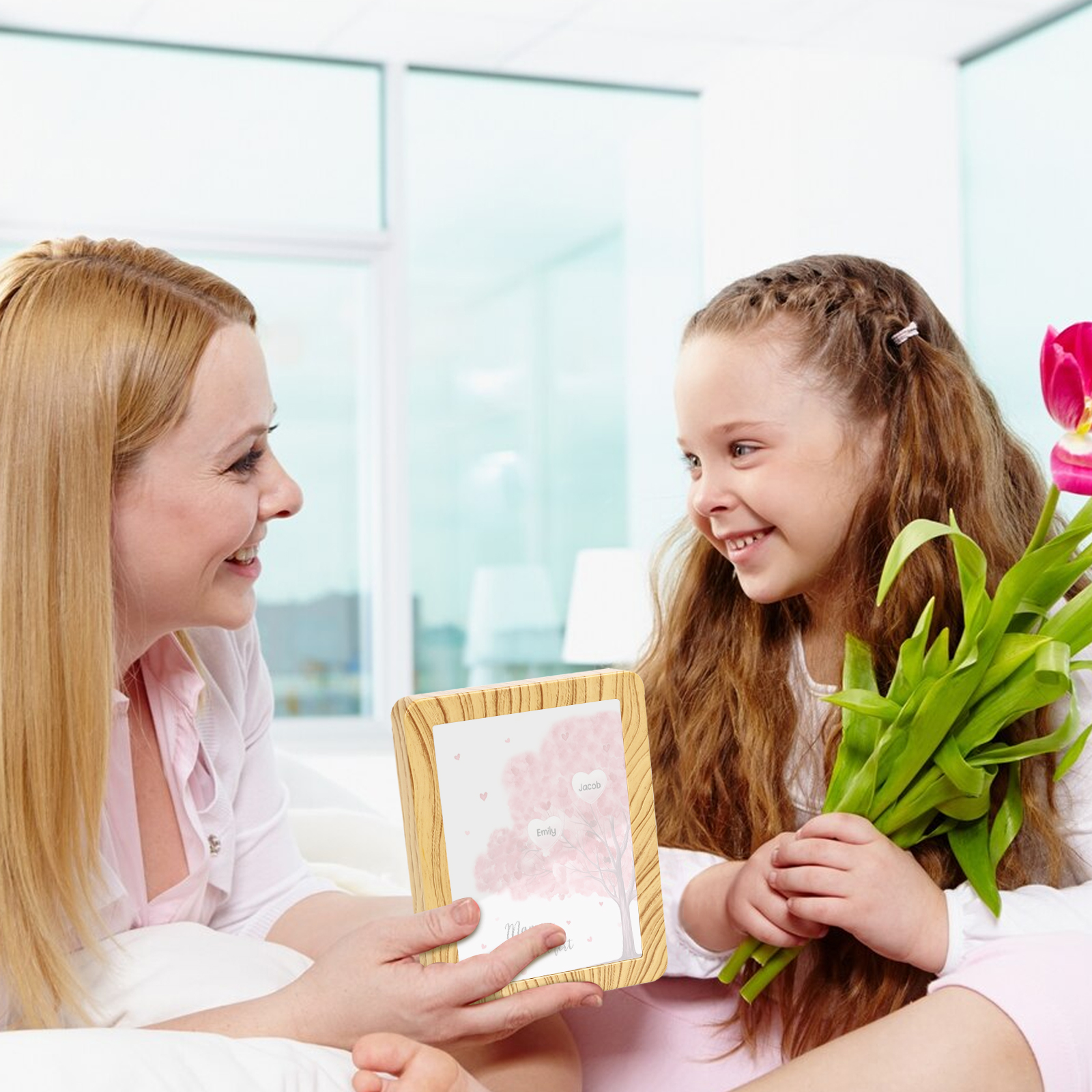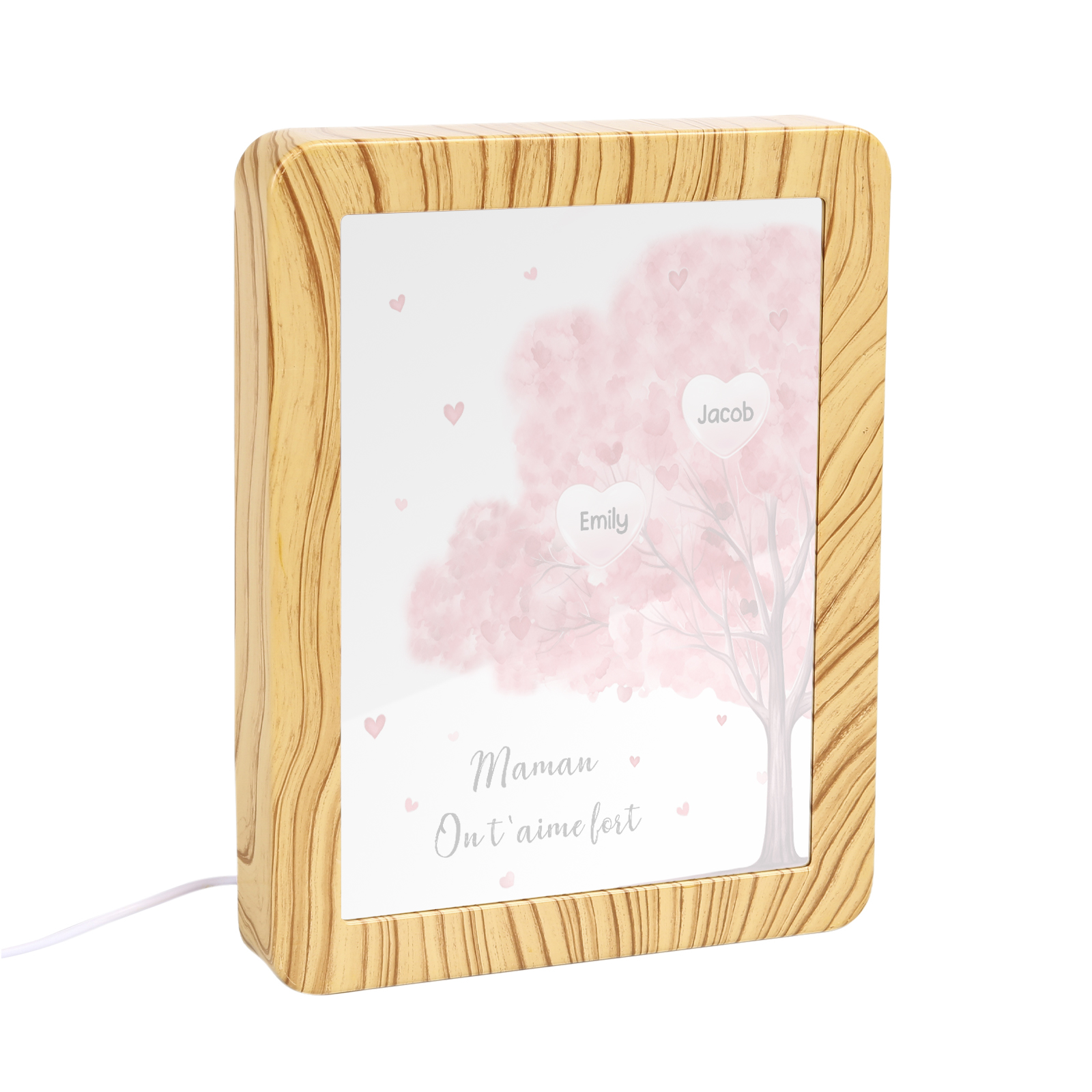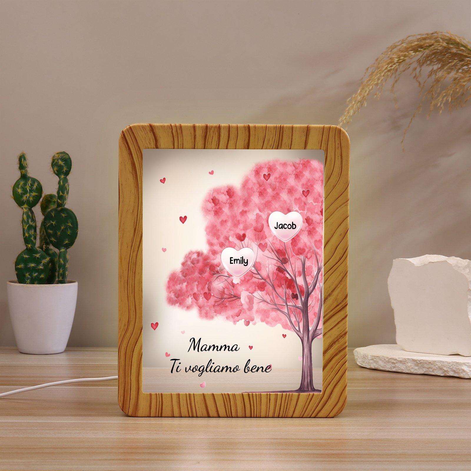 Mamma ti voglio bene-Cornice verticale albero di cuore con LED luce 2 nomi e 1 testo personalizzati anche usato come specchio