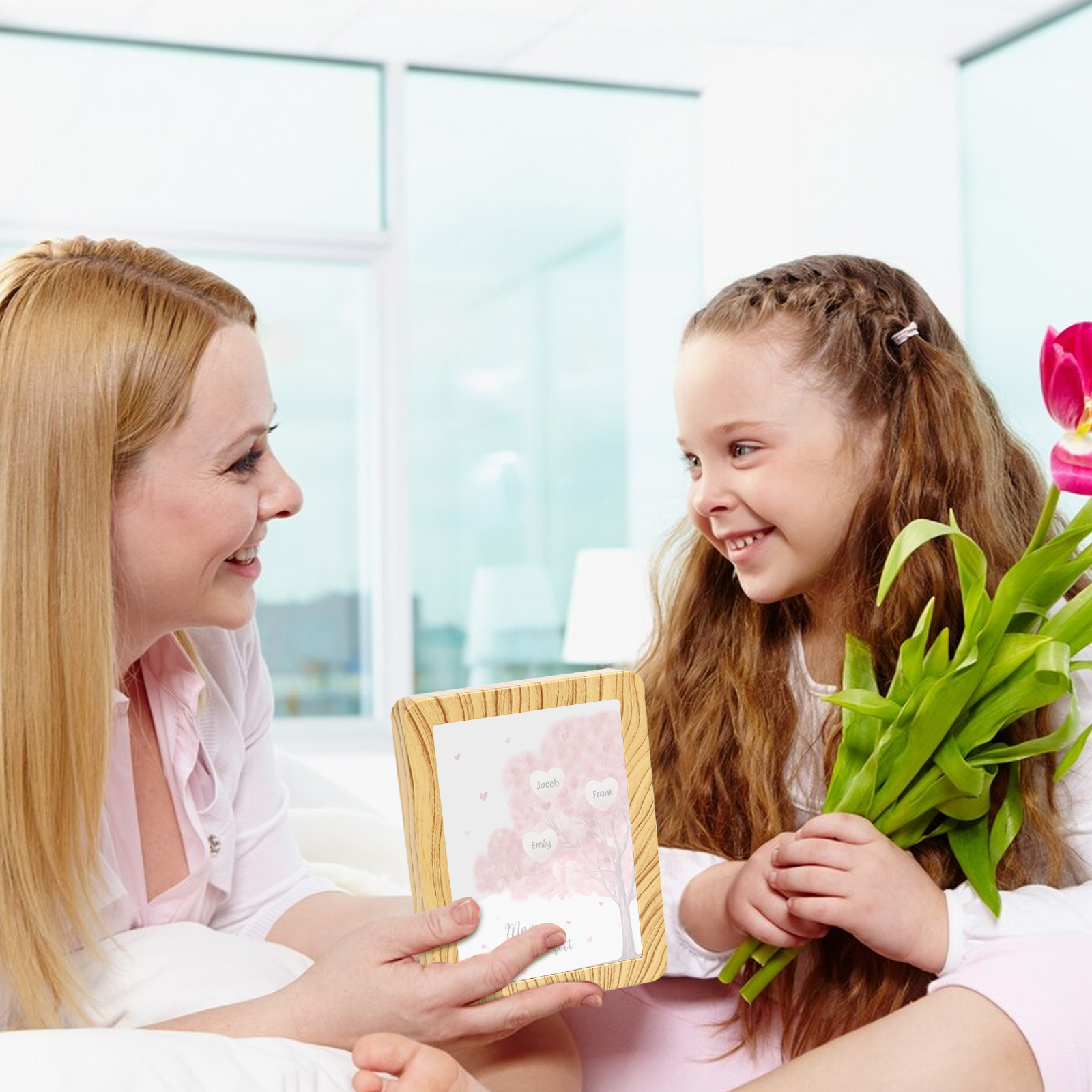Mamma ti voglio bene-Cornice verticale albero di cuore con LED luce 3 nomi e 1 testo personalizzati anche usato come specchio