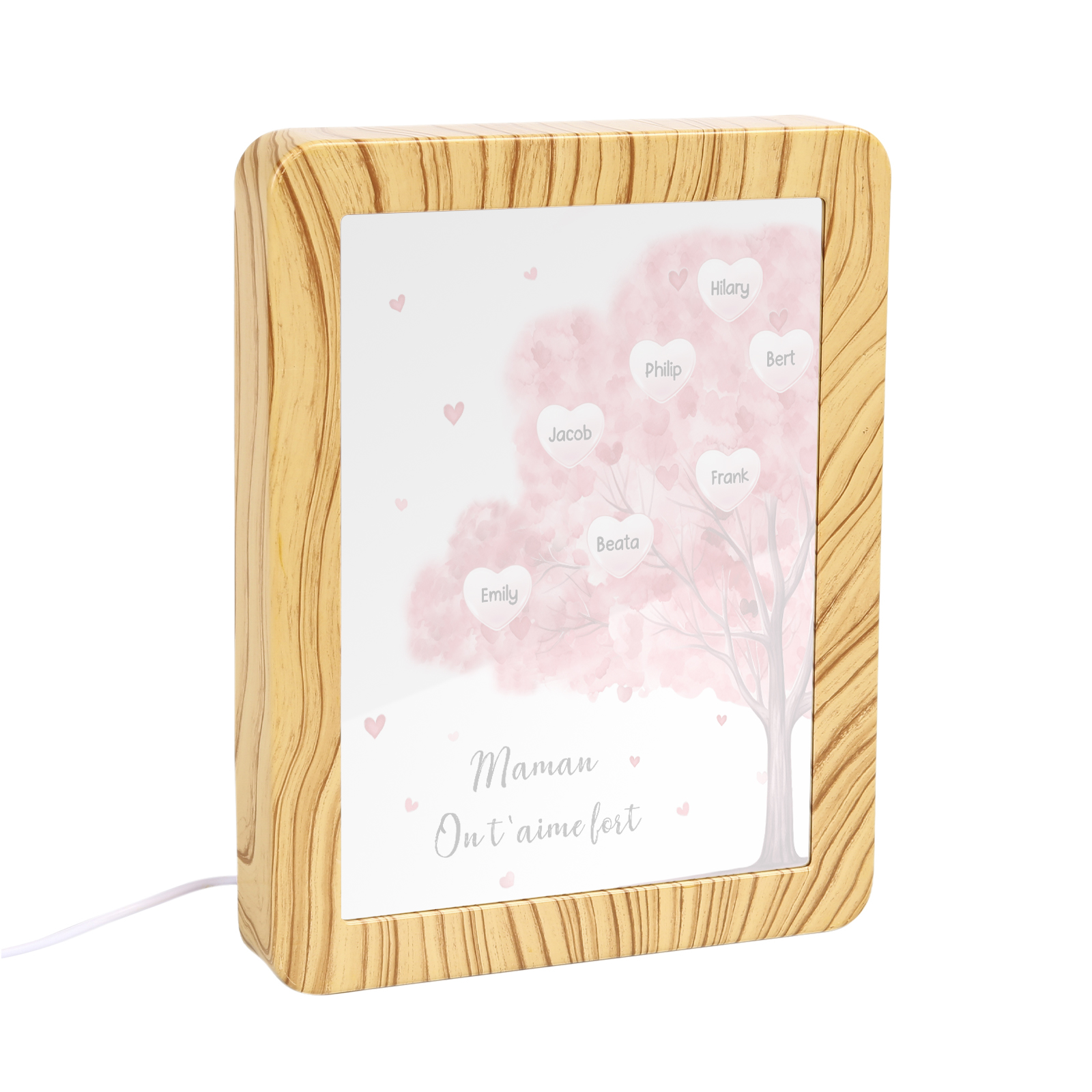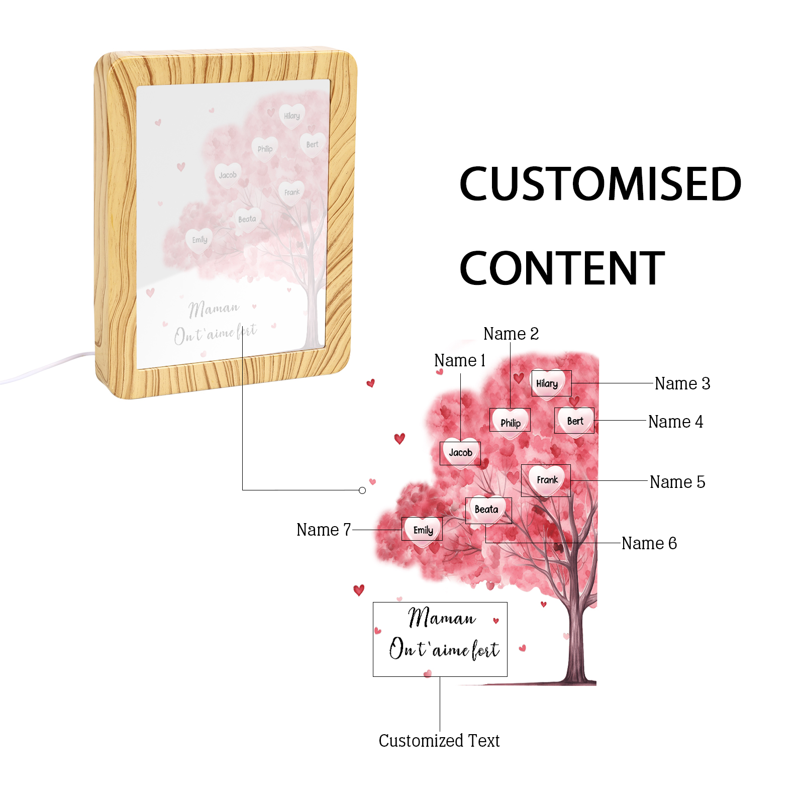 Mamma ti voglio bene-Cornice verticale albero di cuore con LED luce 7 nomi e 1 testo personalizzati anche usato come specchio