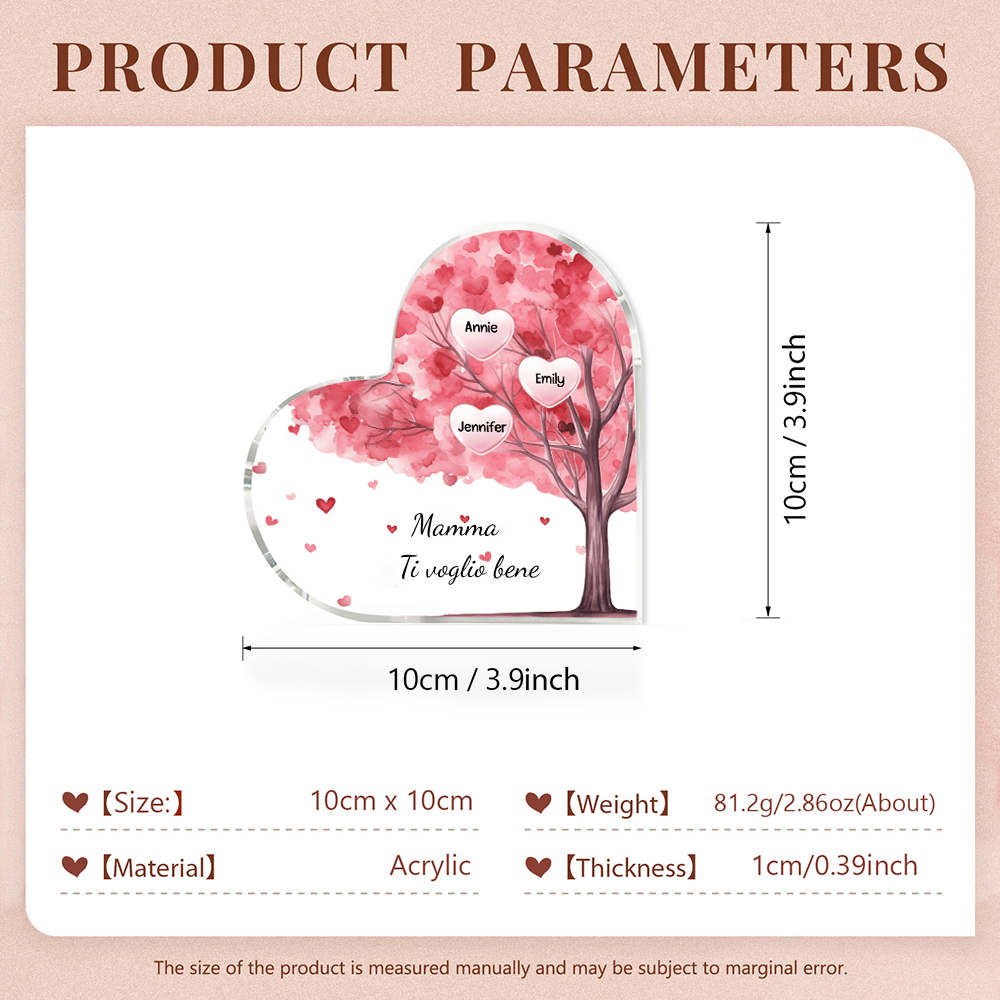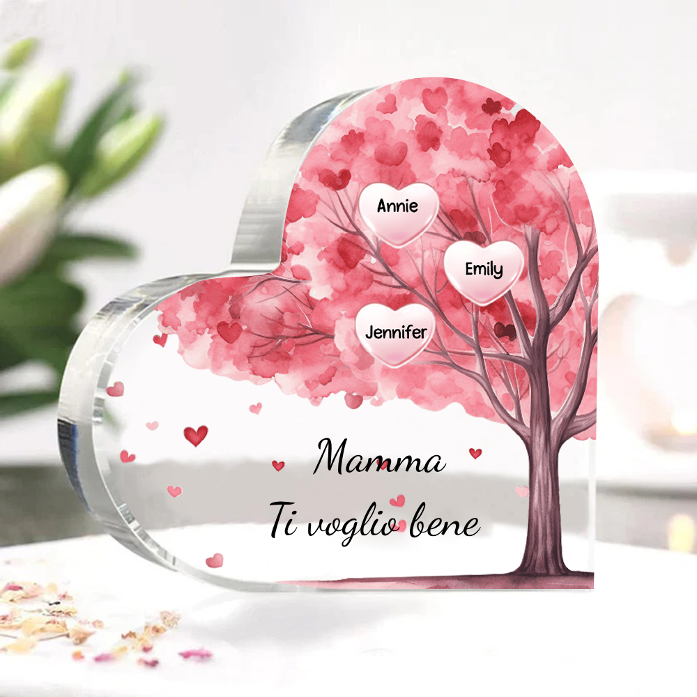 Mamma ti voglio bene-Decorazione acrilica albero di cuore a forma di cuore 3 nomi e 1 testo personalizzati per mamma/nonna
