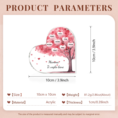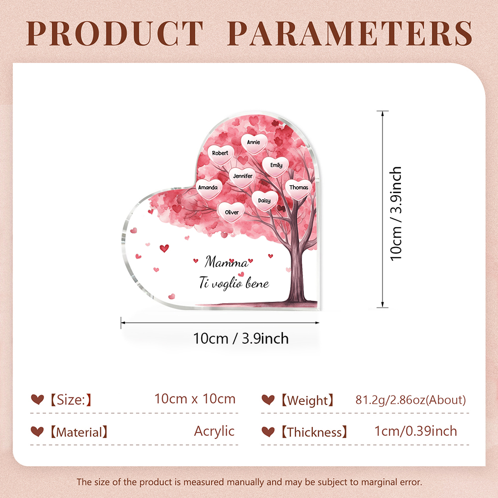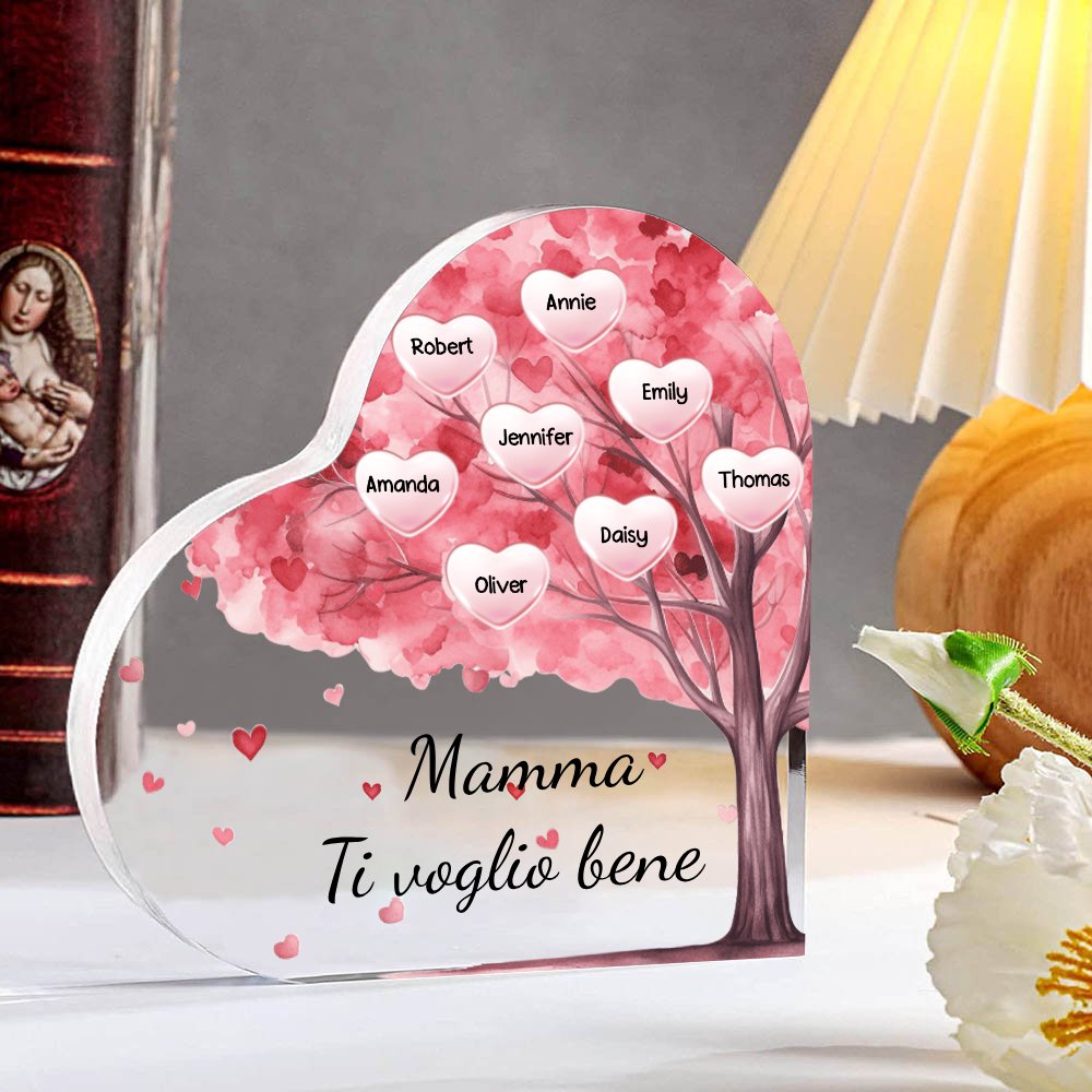 Mamma ti voglio bene-Decorazione acrilica albero di cuore a forma di cuore 8 nomi e 1 testo personalizzati per mamma/nonna