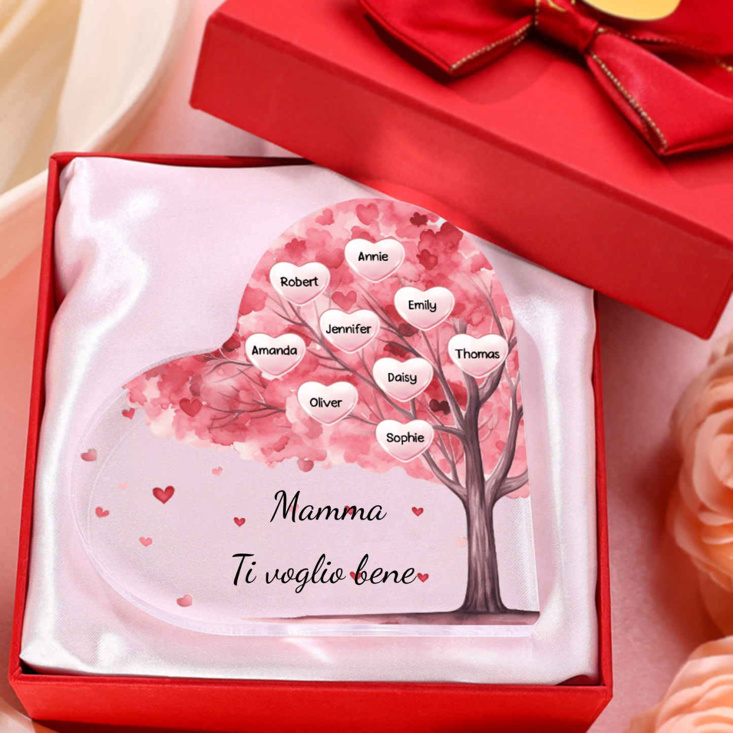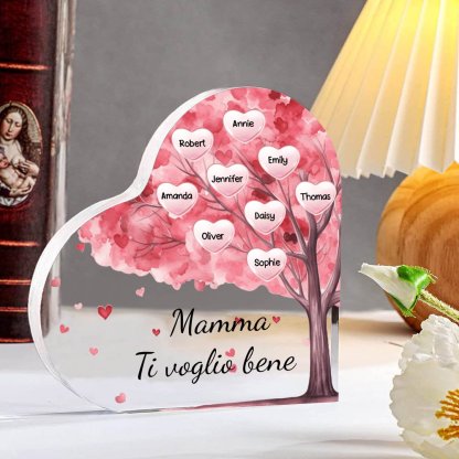 Mamma ti voglio bene-Decorazione acrilica albero di cuore a forma di cuore 9 nomi e 1 testo personalizzati per mamma/nonna