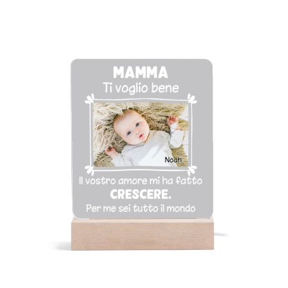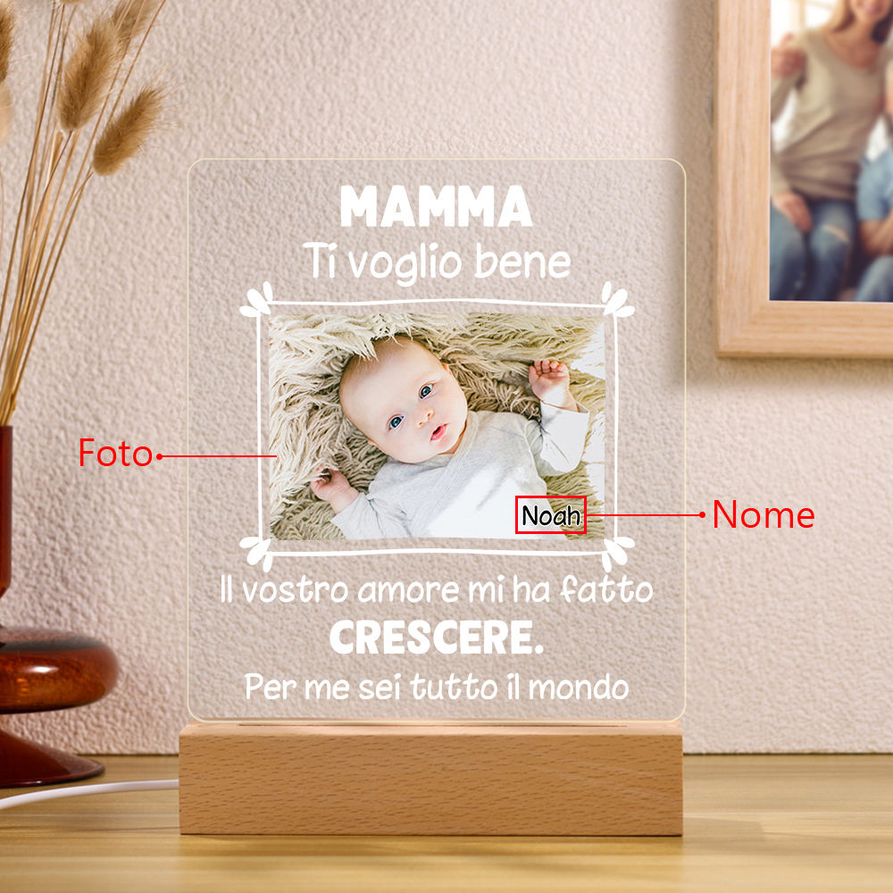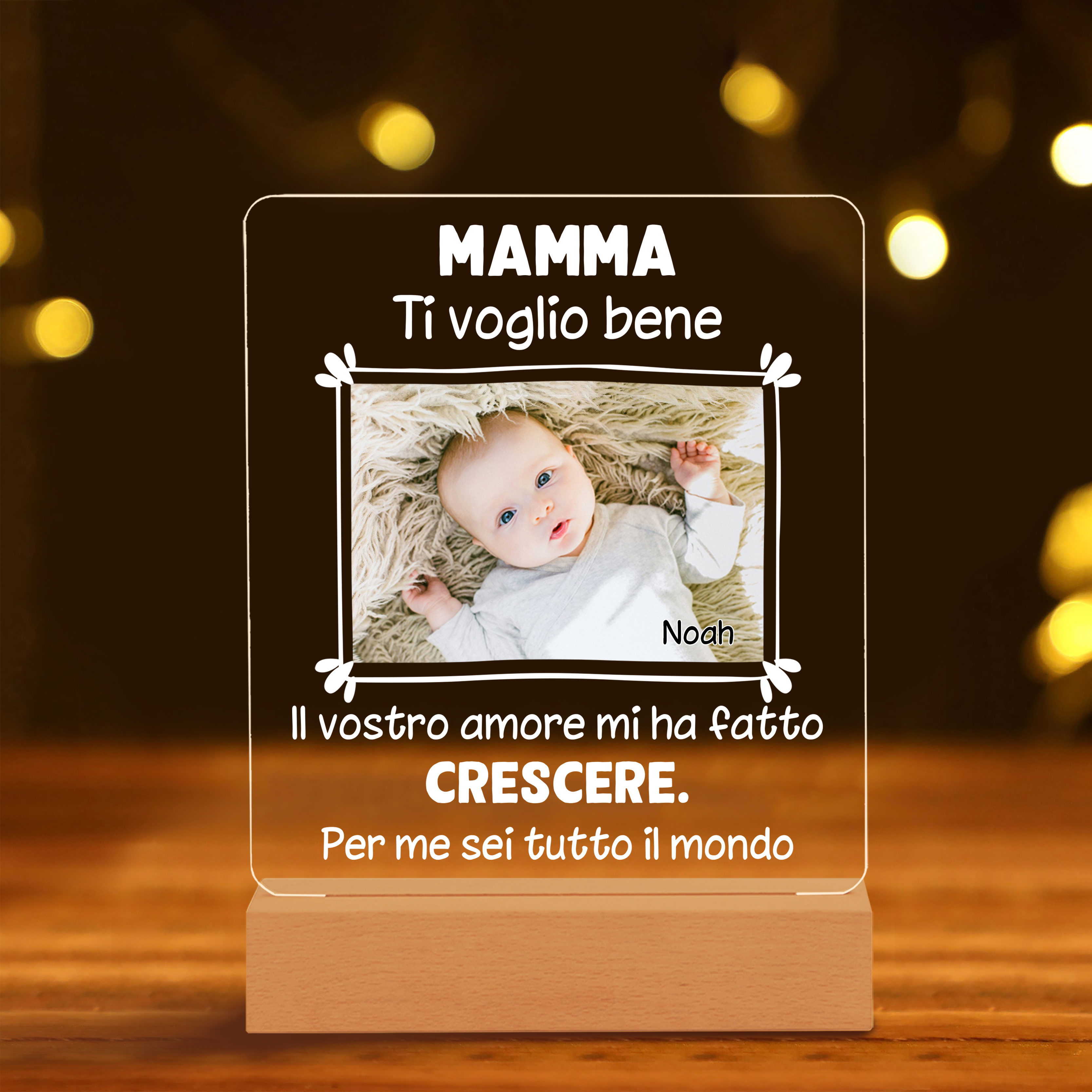 Mamma ti voglio bene-Lampada acrilica con 1 nome e 1 foto personalizzabili per mamma