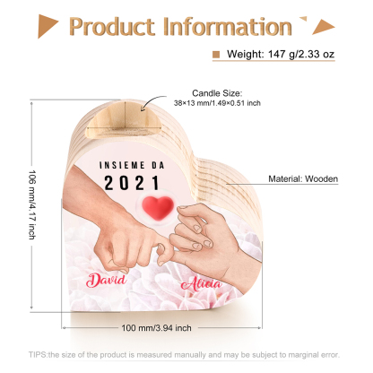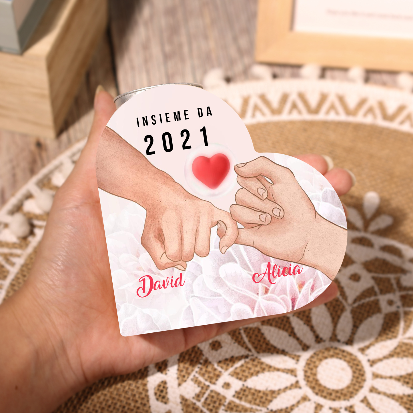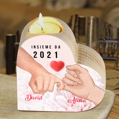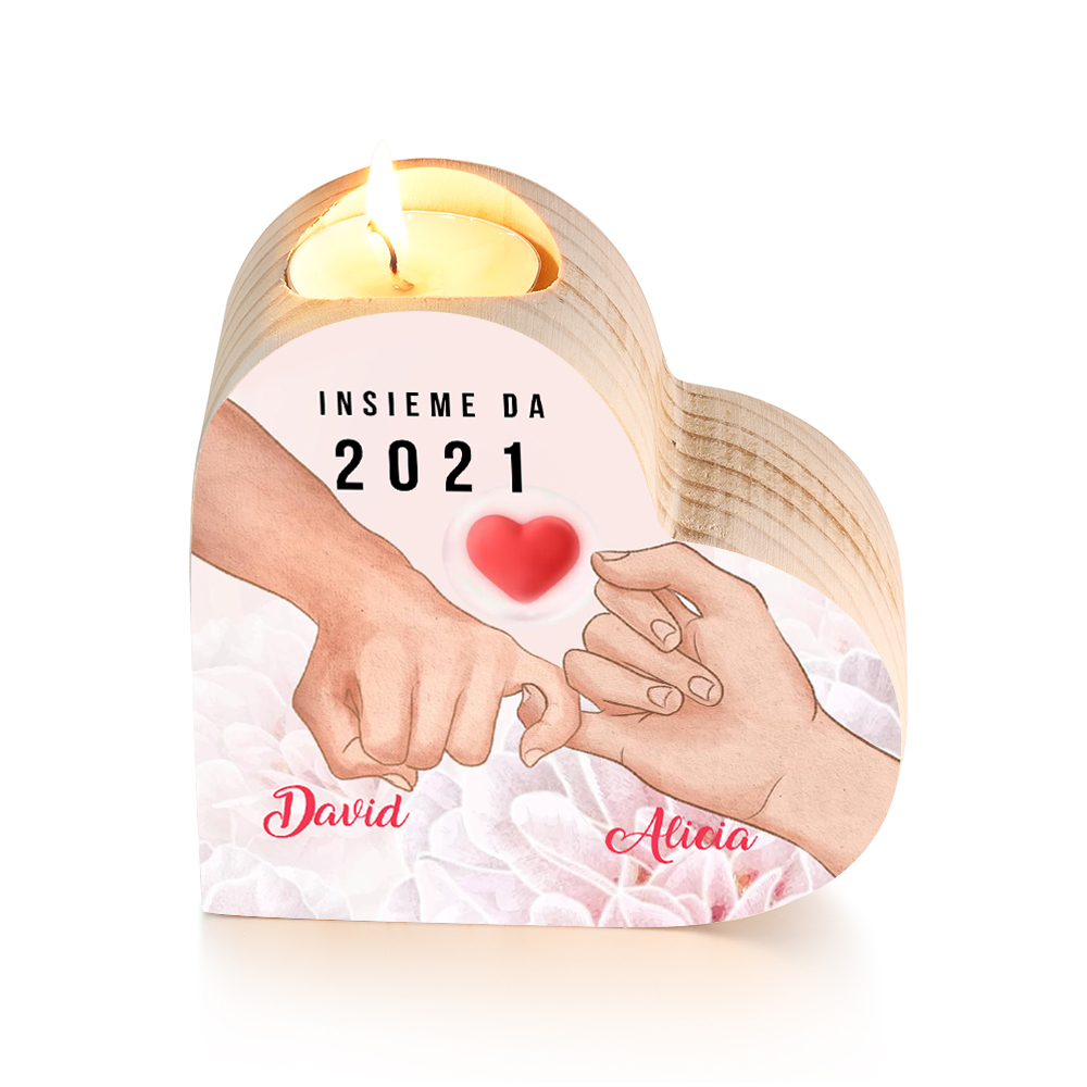 Mano nella mano insieme da-Candelieri a cuore per coppia 2 nomi e 1 anno personalizzabili