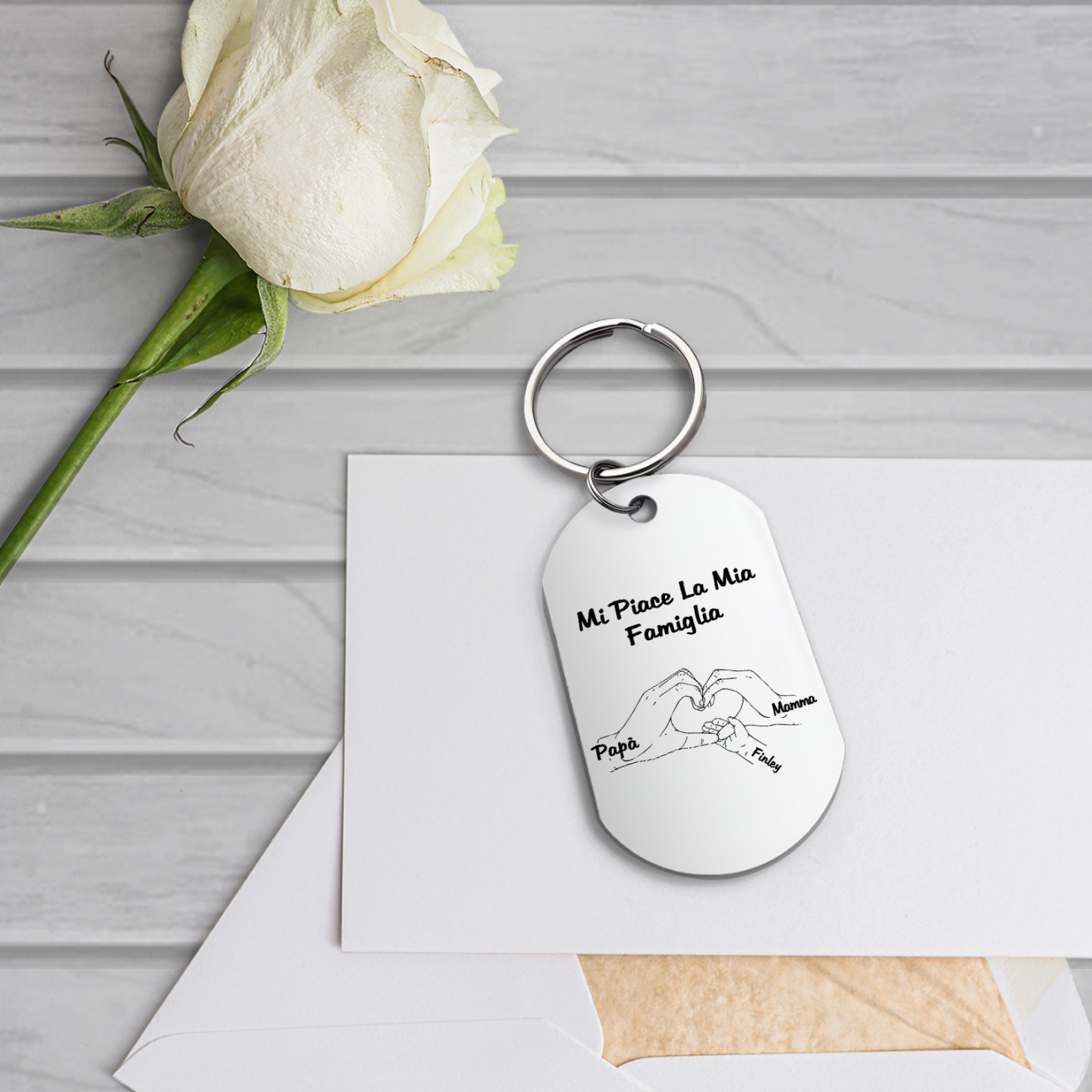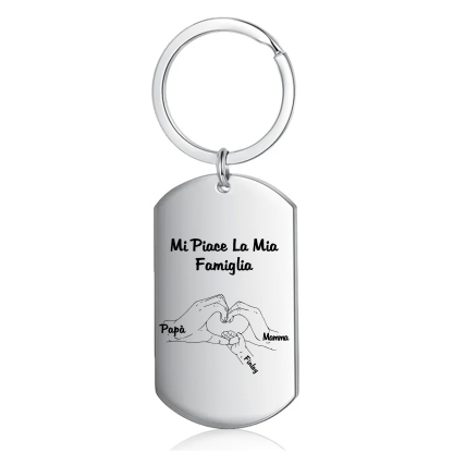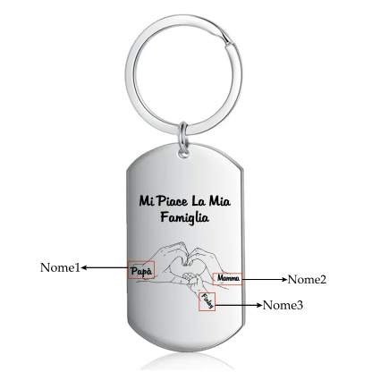Mi piace la mia famiglia-Portachiavi mano nella mano a cuore 3 nomi personalizzati regalo per mamma e papà
