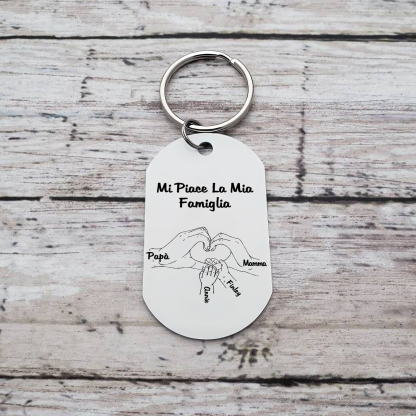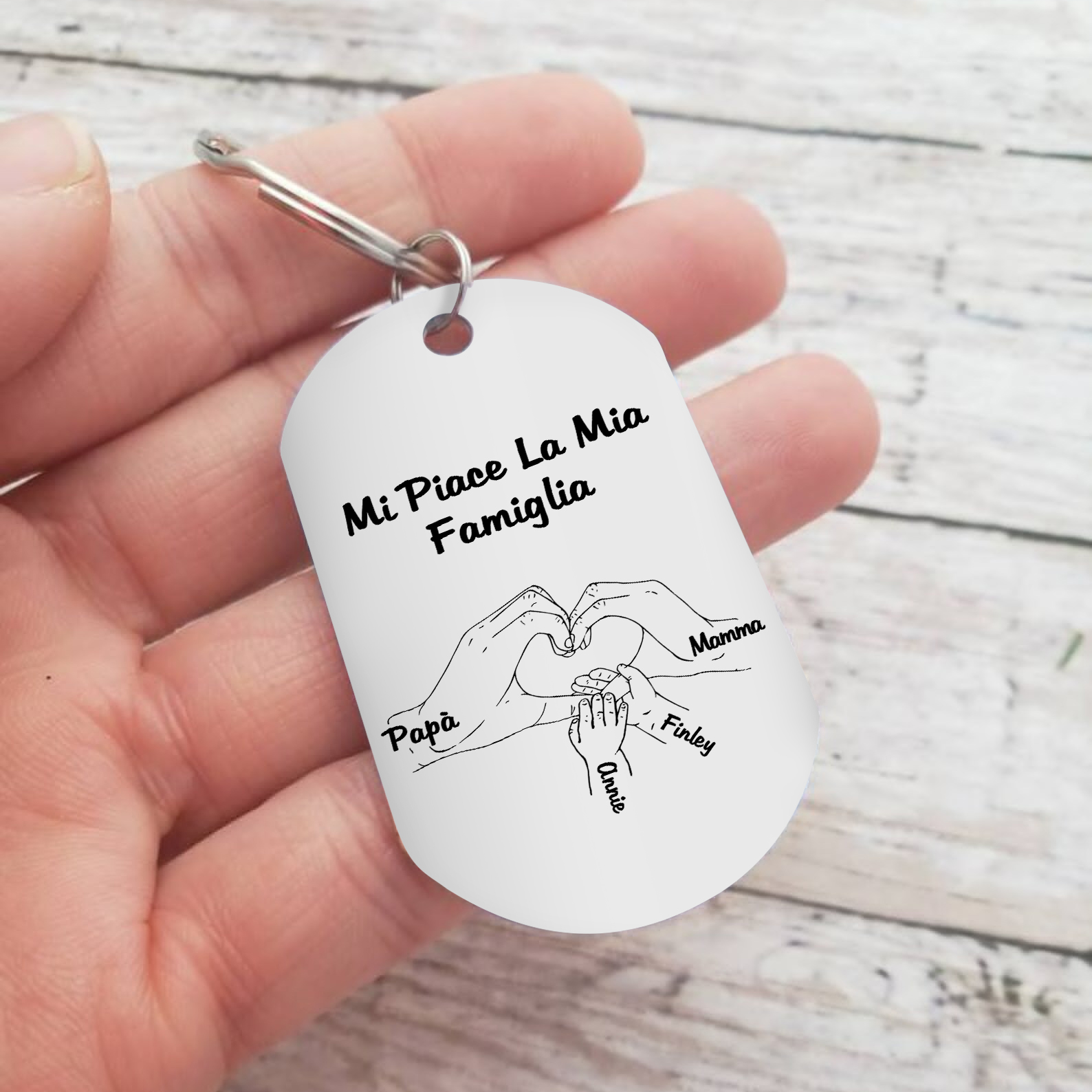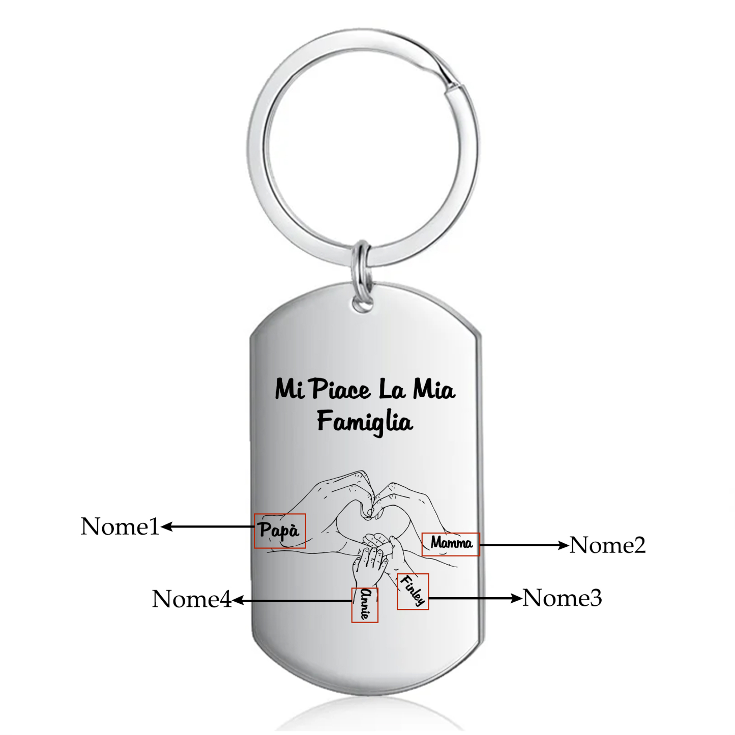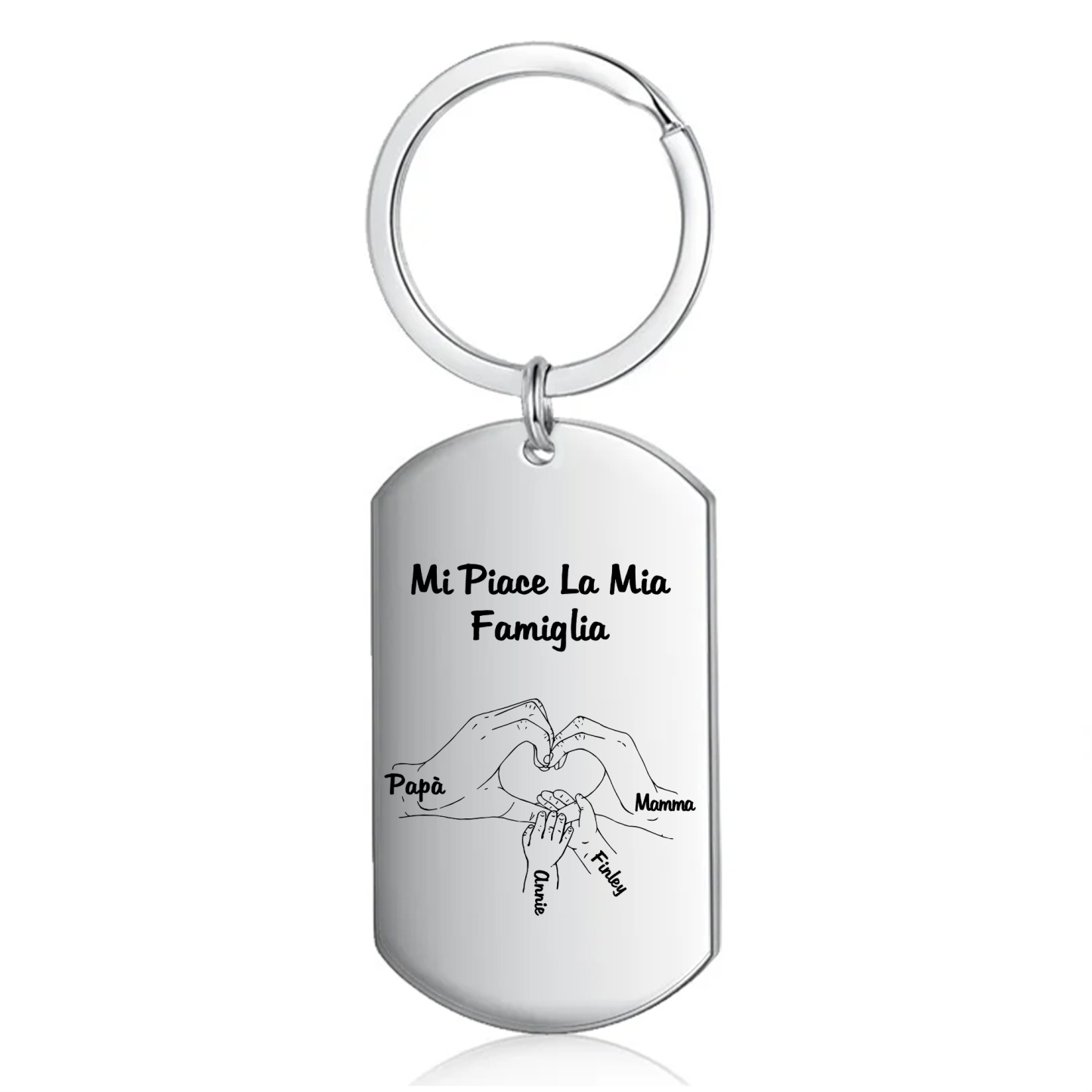 Mi piace la mia famiglia-Portachiavi mano nella mano a cuore 4 nomi personalizzati regalo per mamma e papà