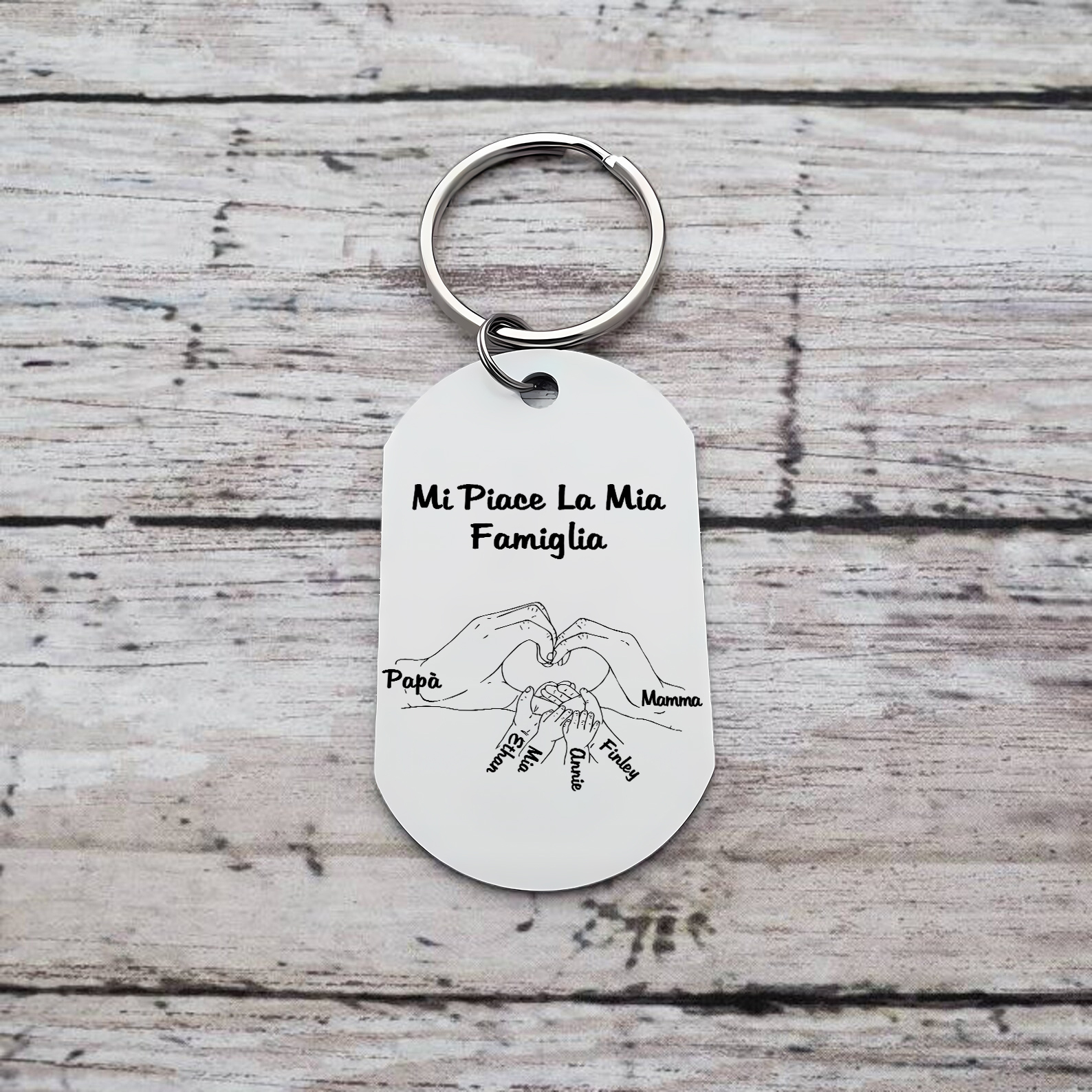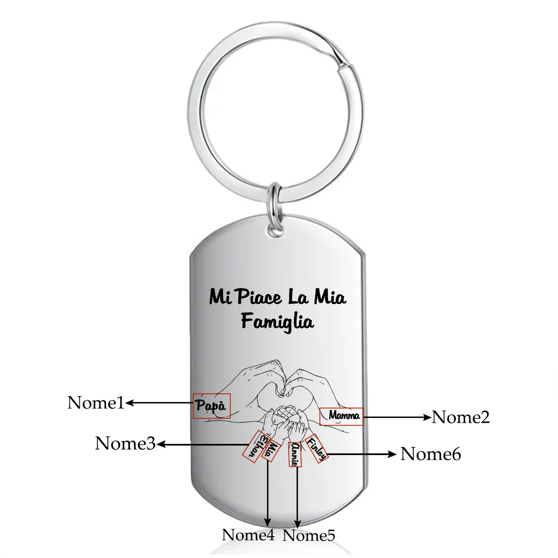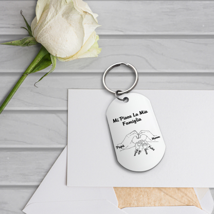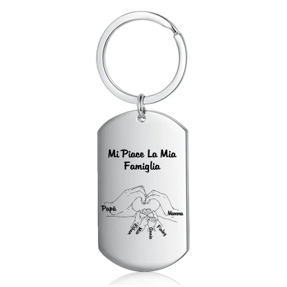 Mi piace la mia famiglia-Portachiavi mano nella mano a cuore 6 nomi personalizzati regalo per mamma e papà