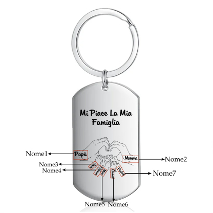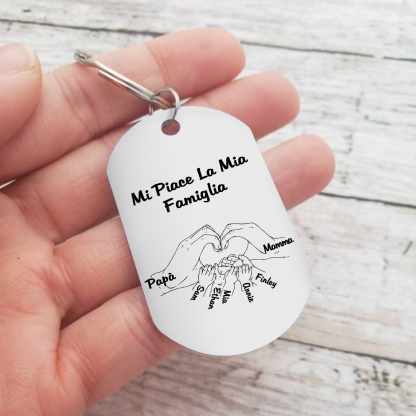 Mi piace la mia famiglia-Portachiavi mano nella mano a cuore 7 nomi personalizzati regalo per mamma e papà