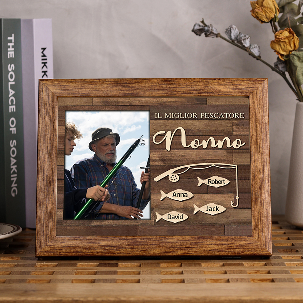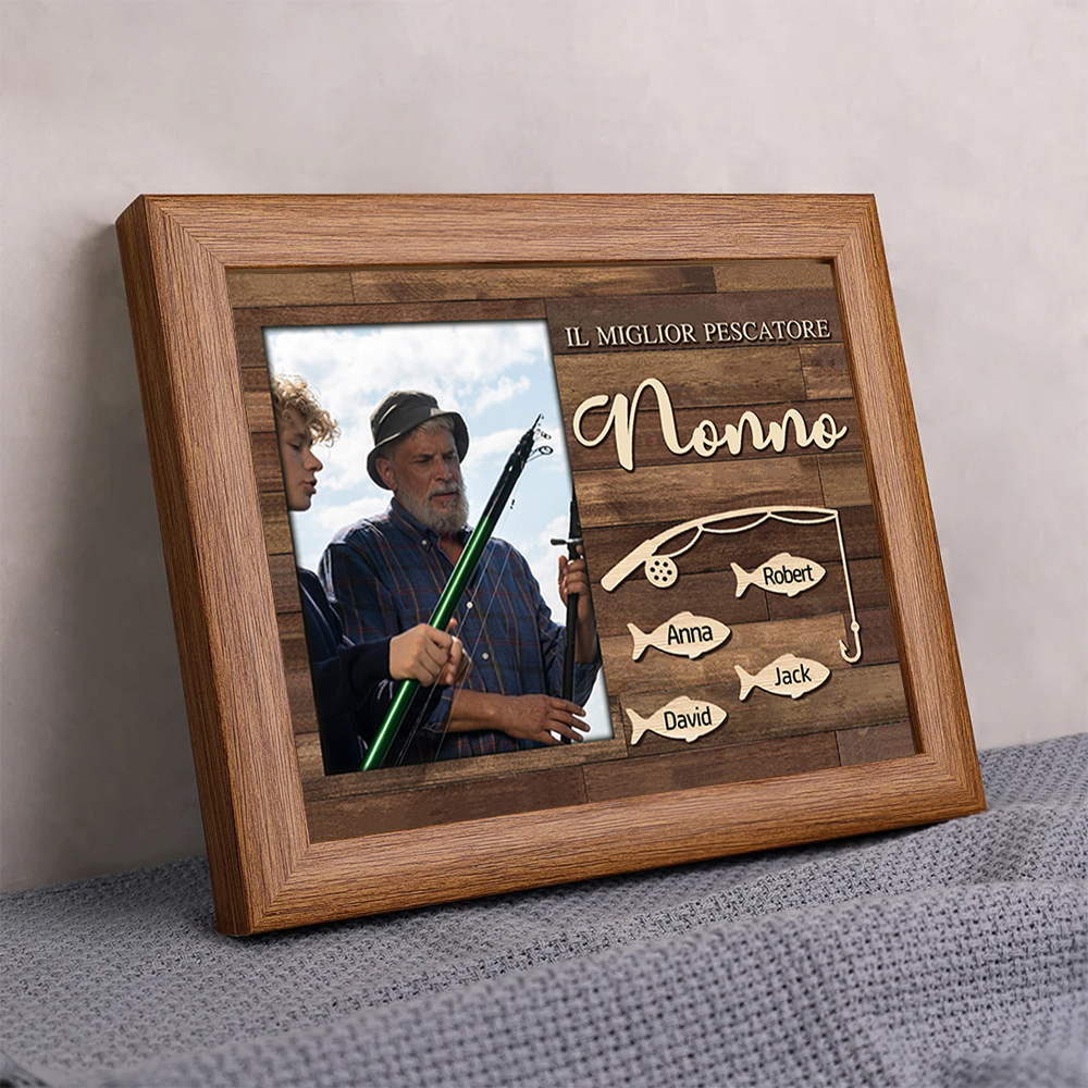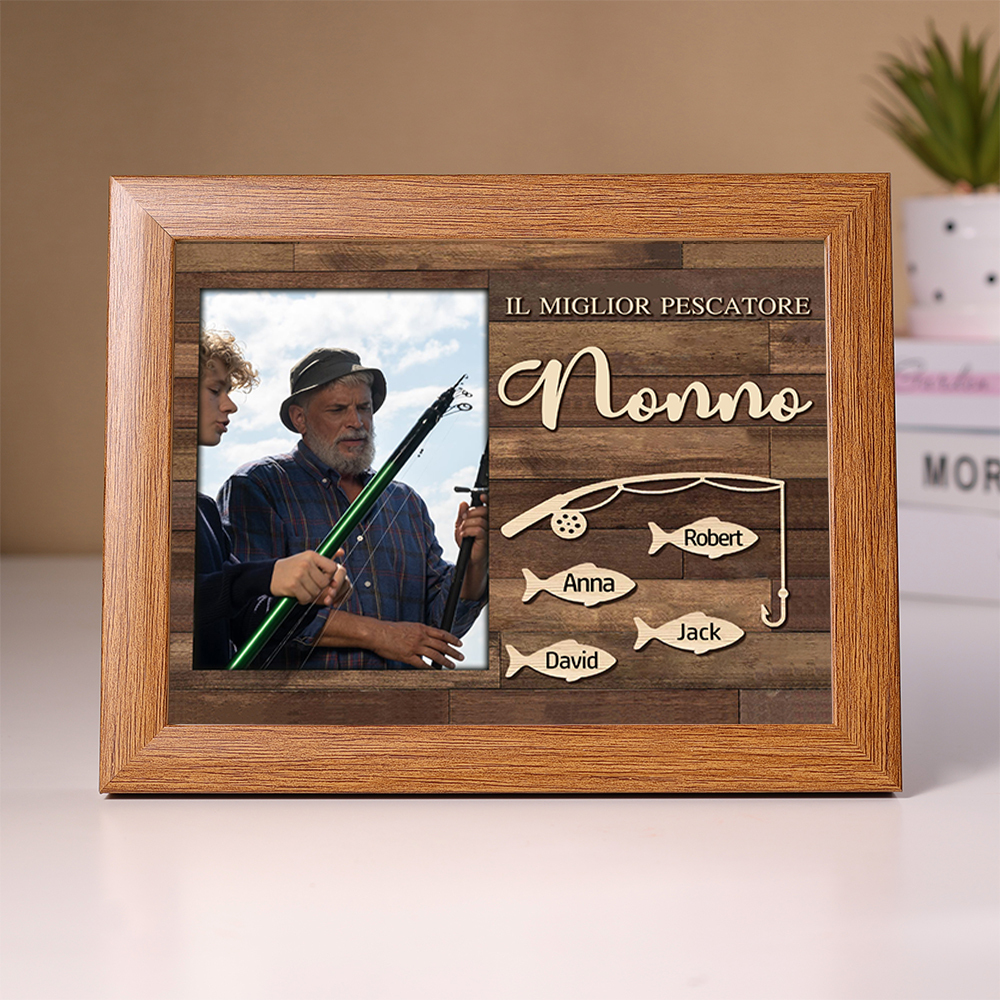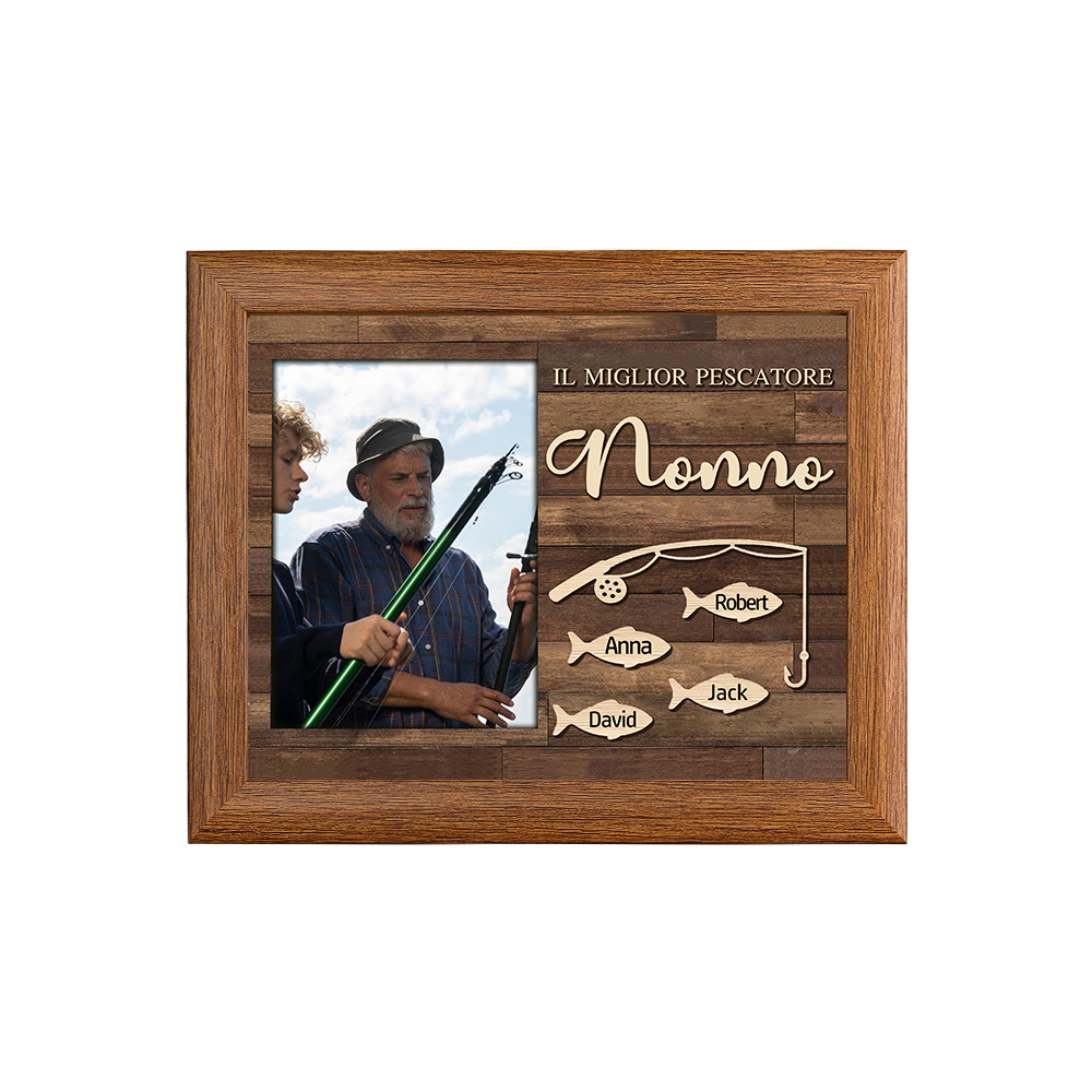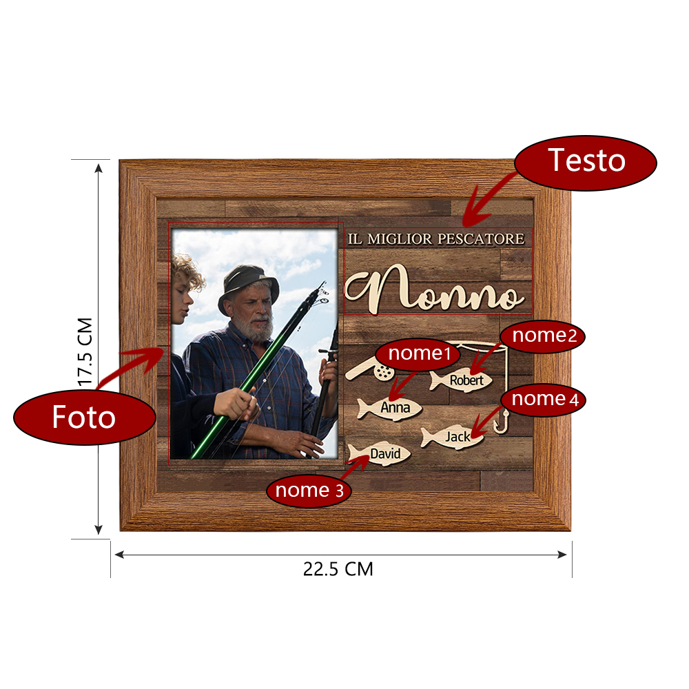 MIGLIORE PESCATORE NONNO Foto targa cornice 4 nomi personalizzati regalo festa dei nonni