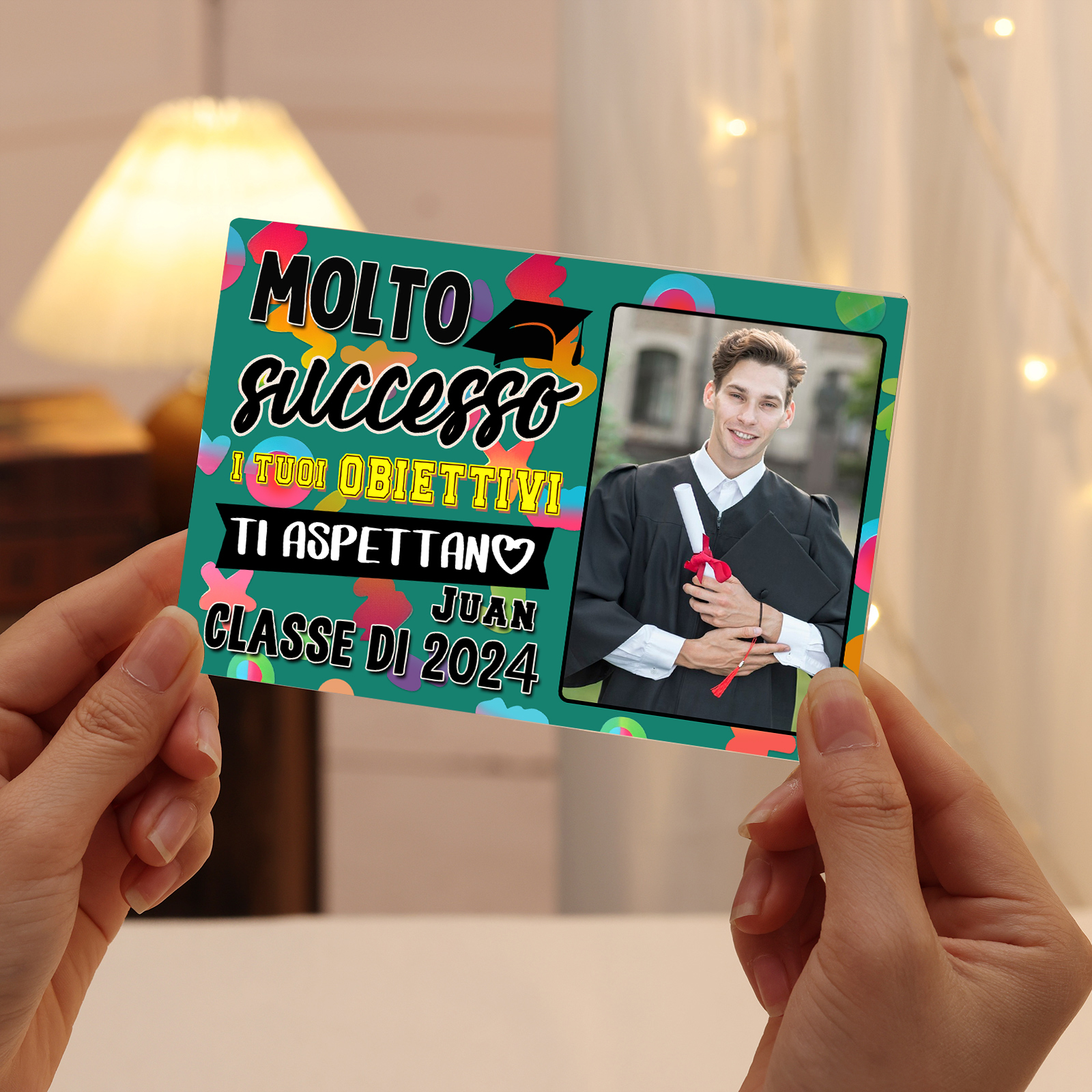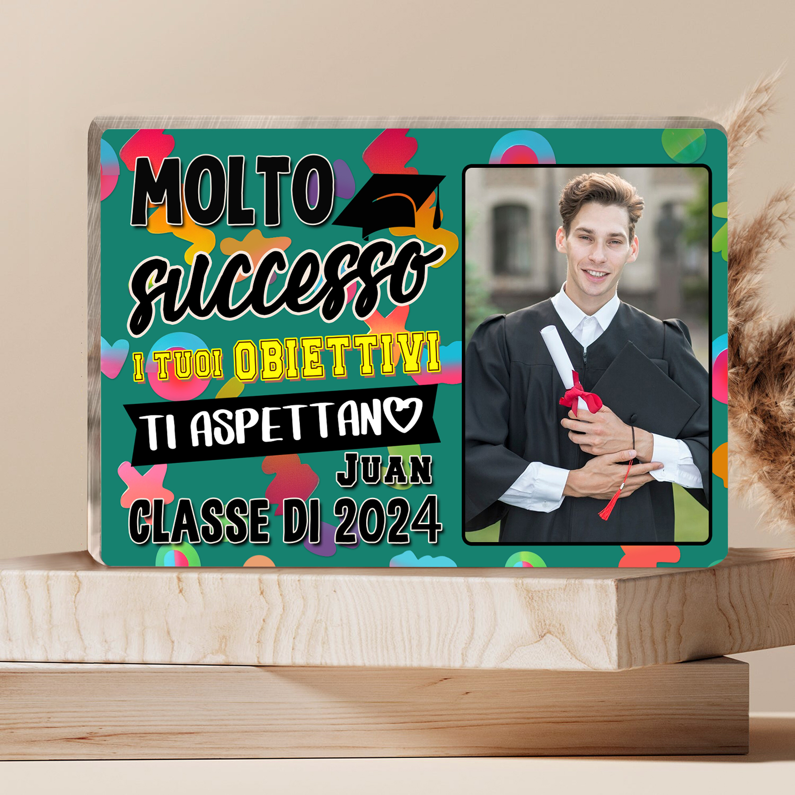 Molto successo-Decorazione acrilica di laurea 1 nome e 1 foto e 1 testo personalizzati per laurea