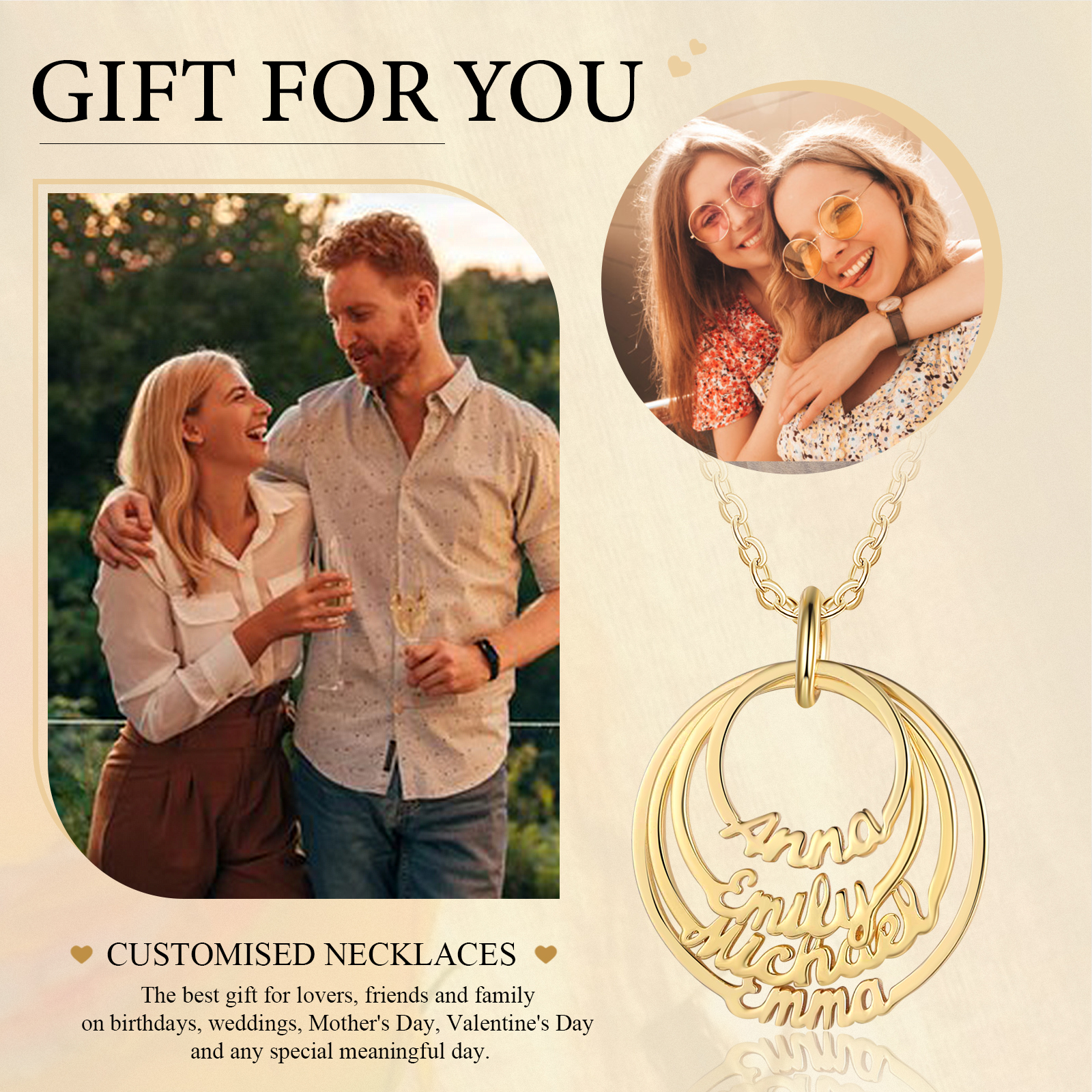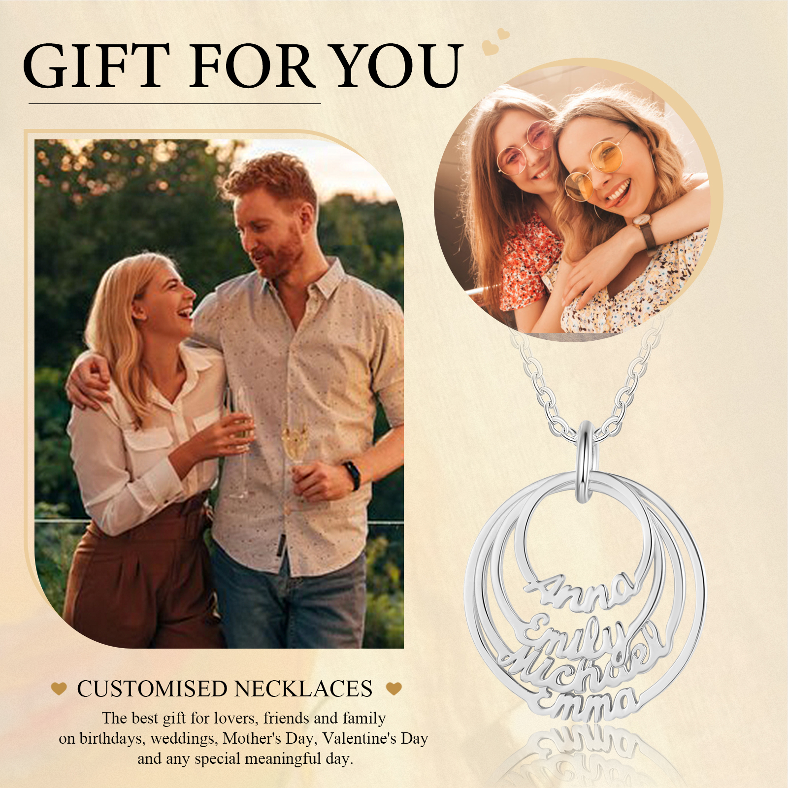 Nome Collana cerchio 4 nomi personalizzati regalo per donna