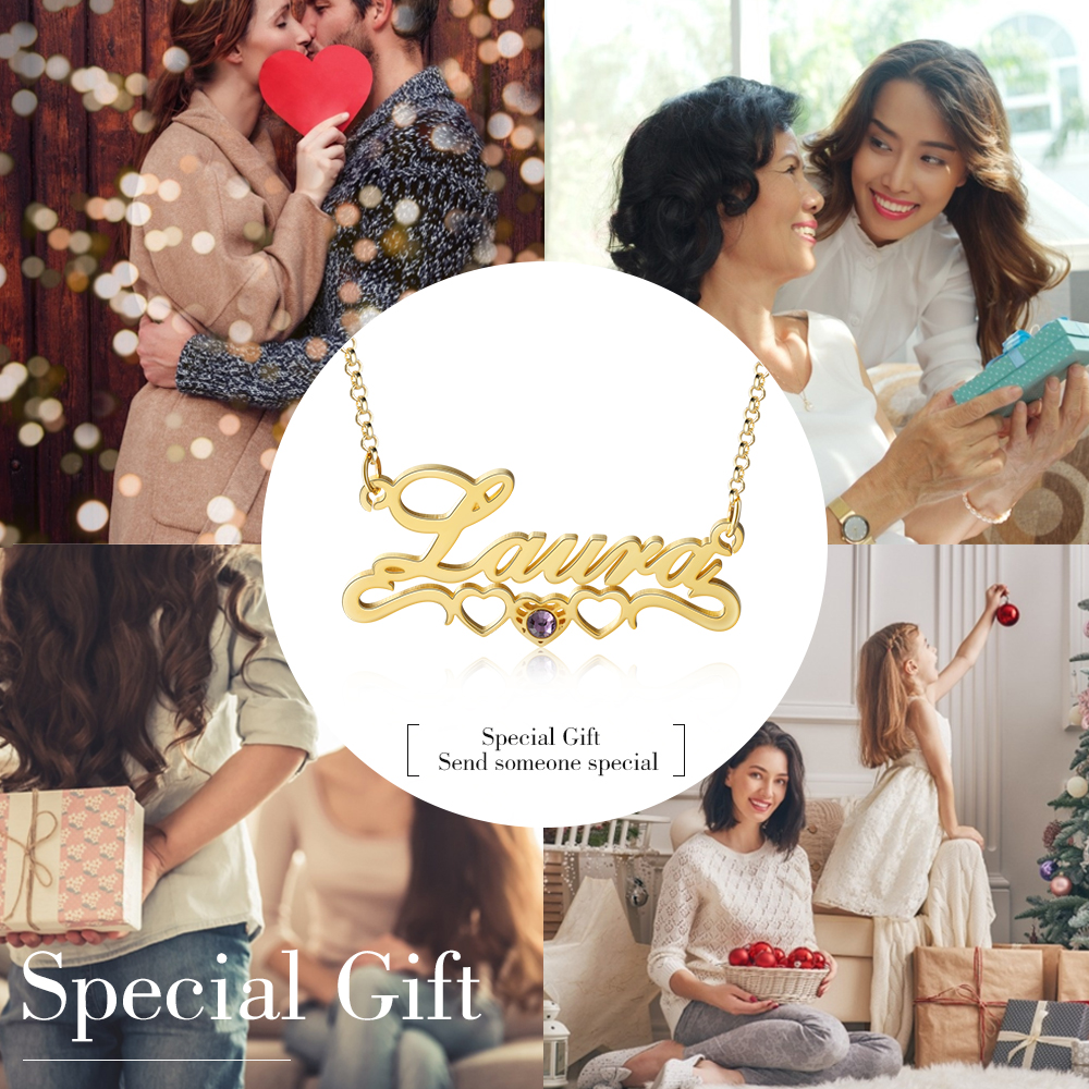 Nome Collana ciondolo di nome con cuore e 1 pietra di nascita personalizzata regalo perfetto