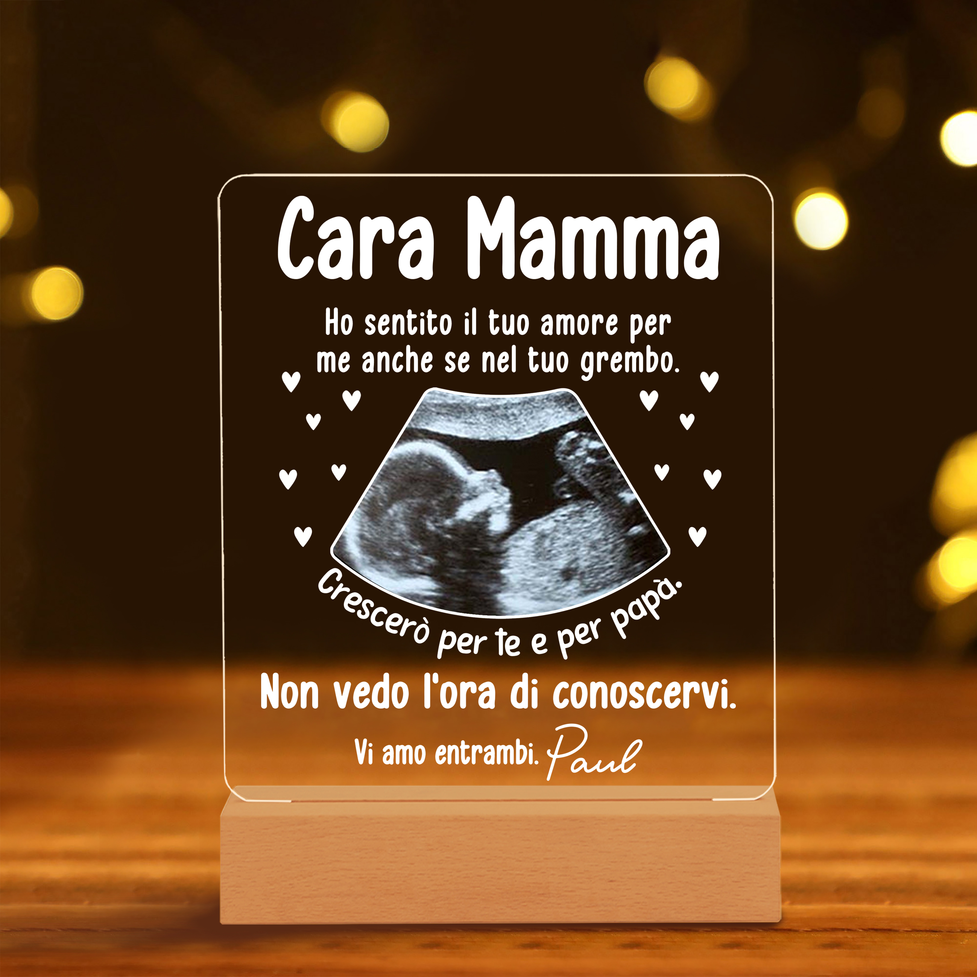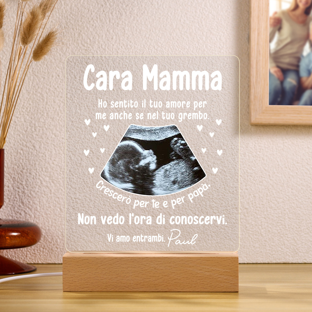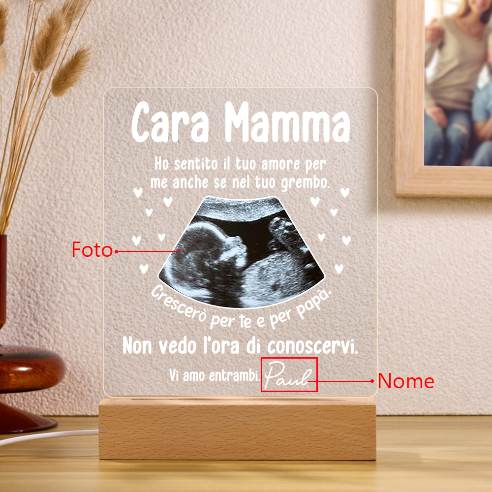 Non vedo l'ora di conoscervi-Lampada acrilica con 1 nome e 1 foto personalizzabili per mamma