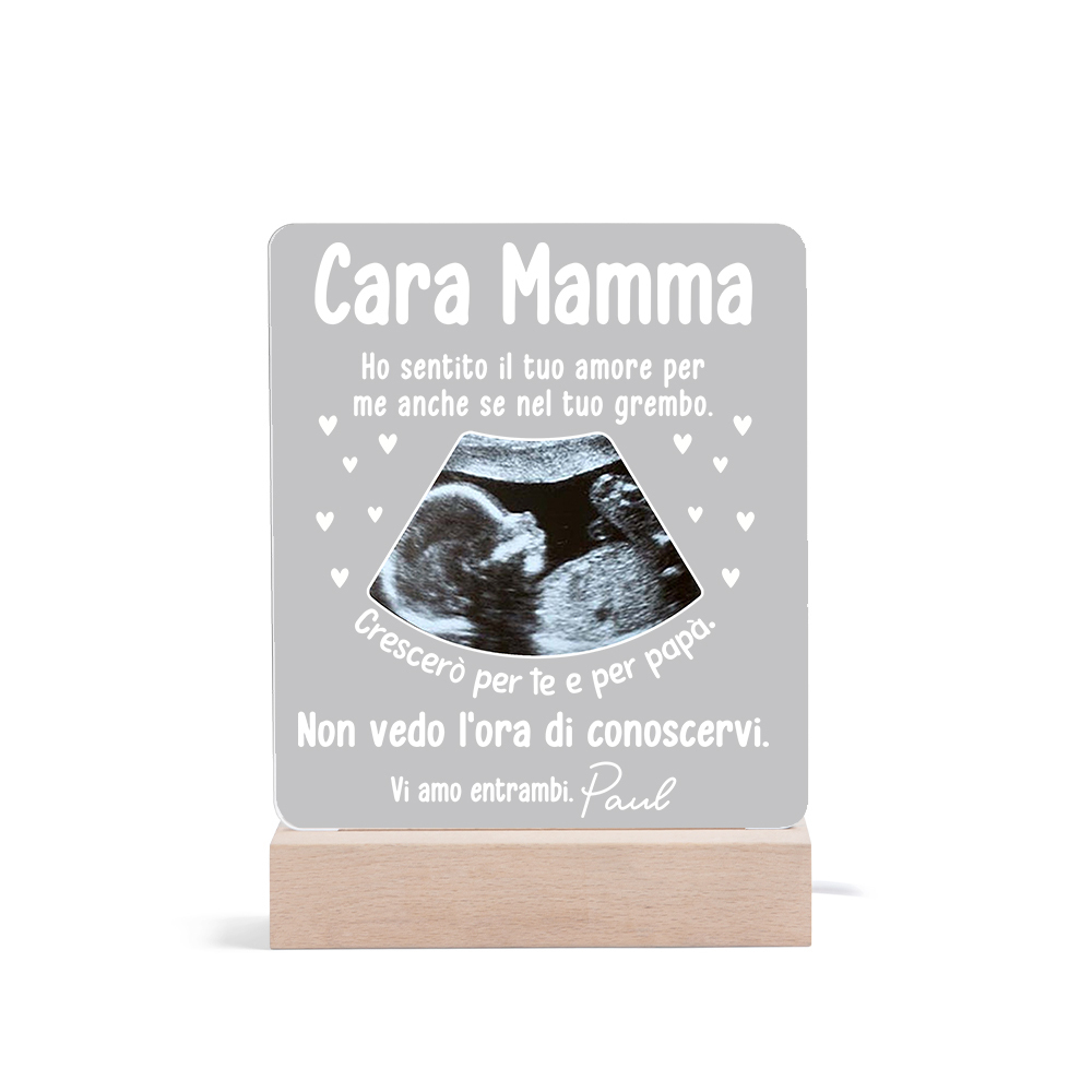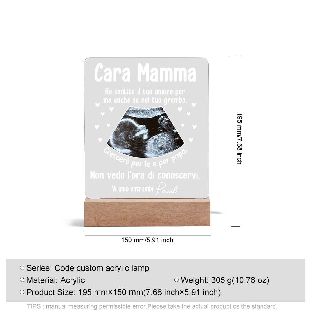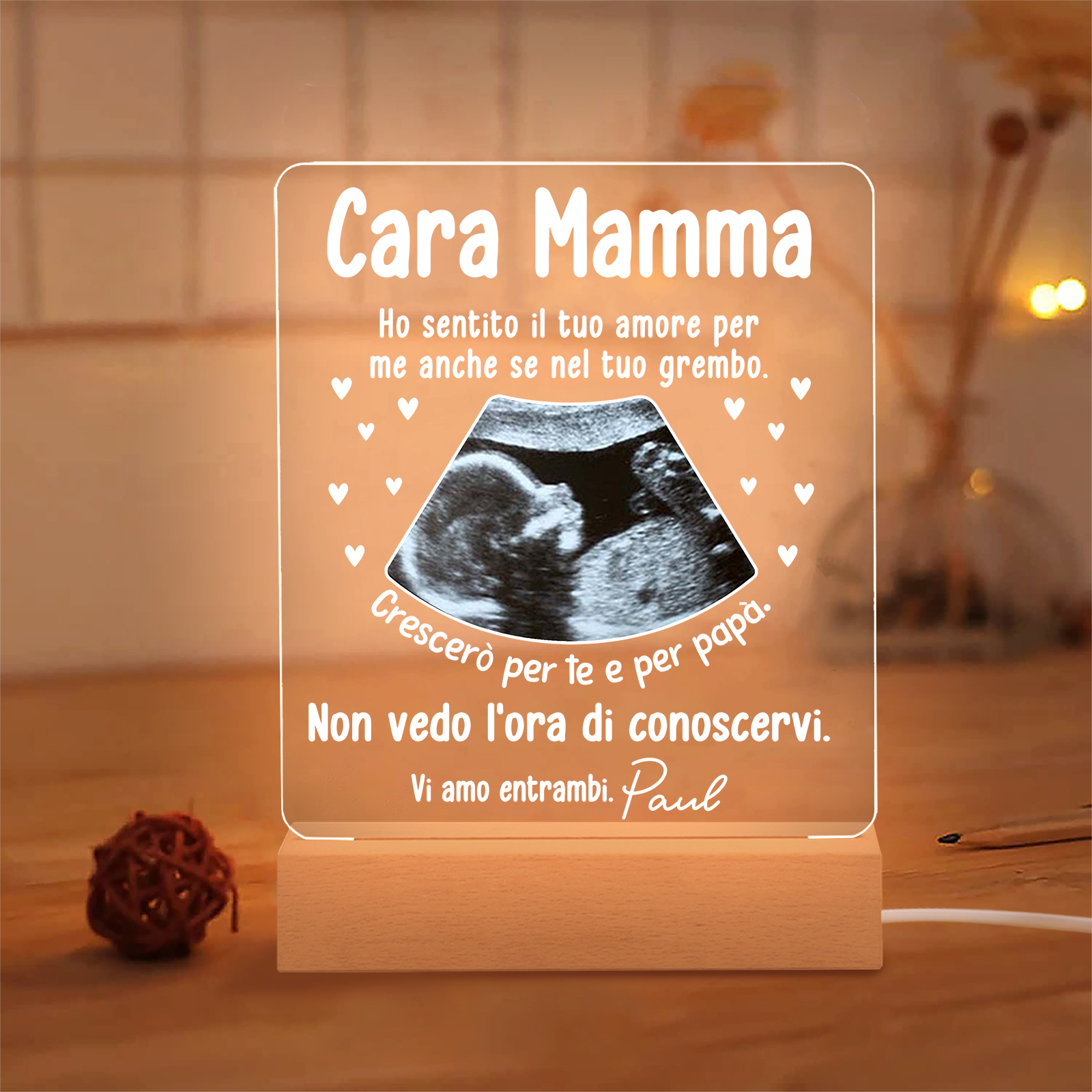 Non vedo l'ora di conoscervi-Lampada acrilica con 1 nome e 1 foto personalizzabili per mamma