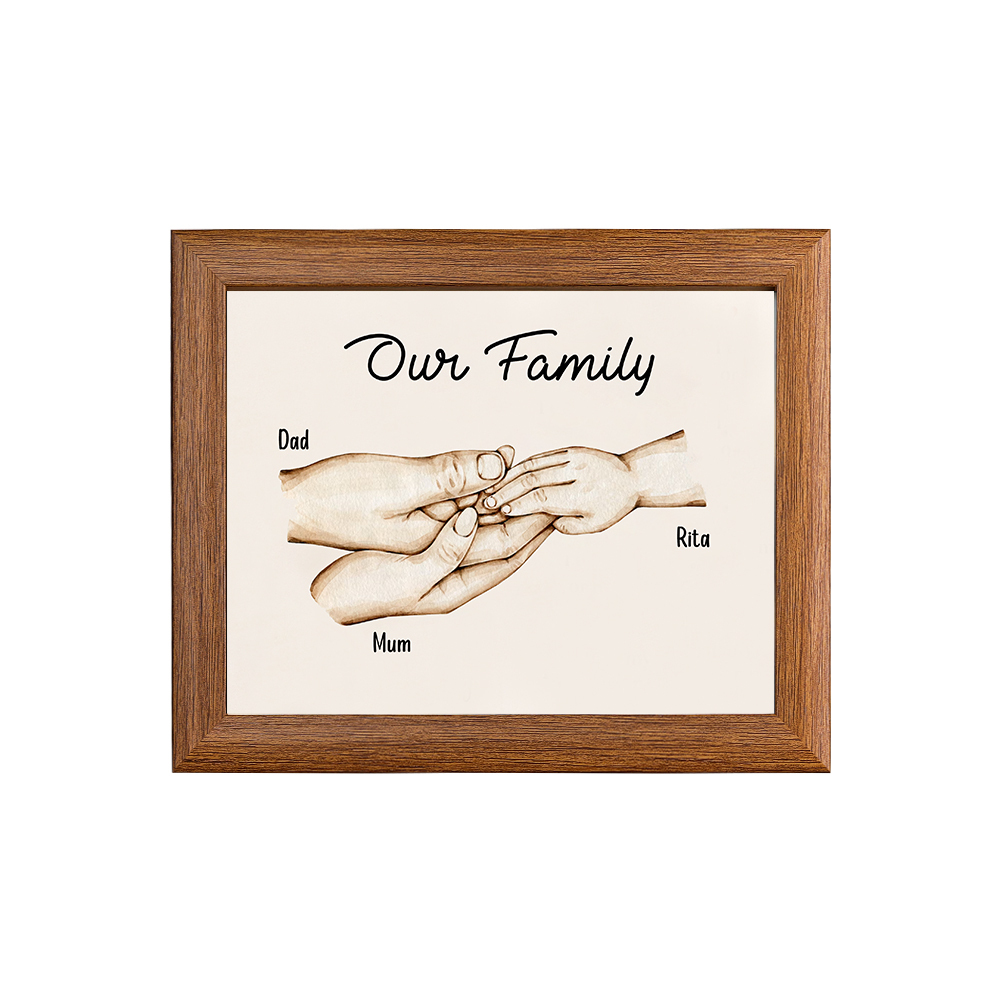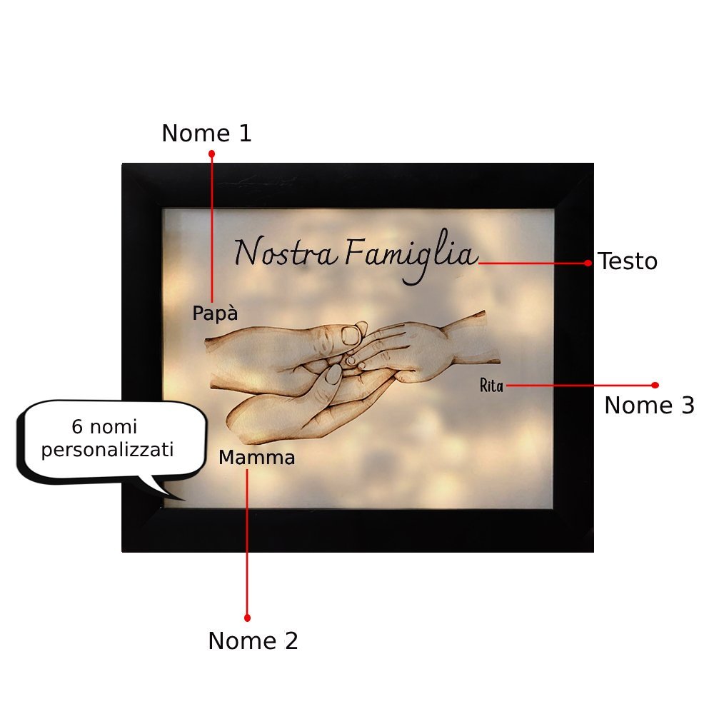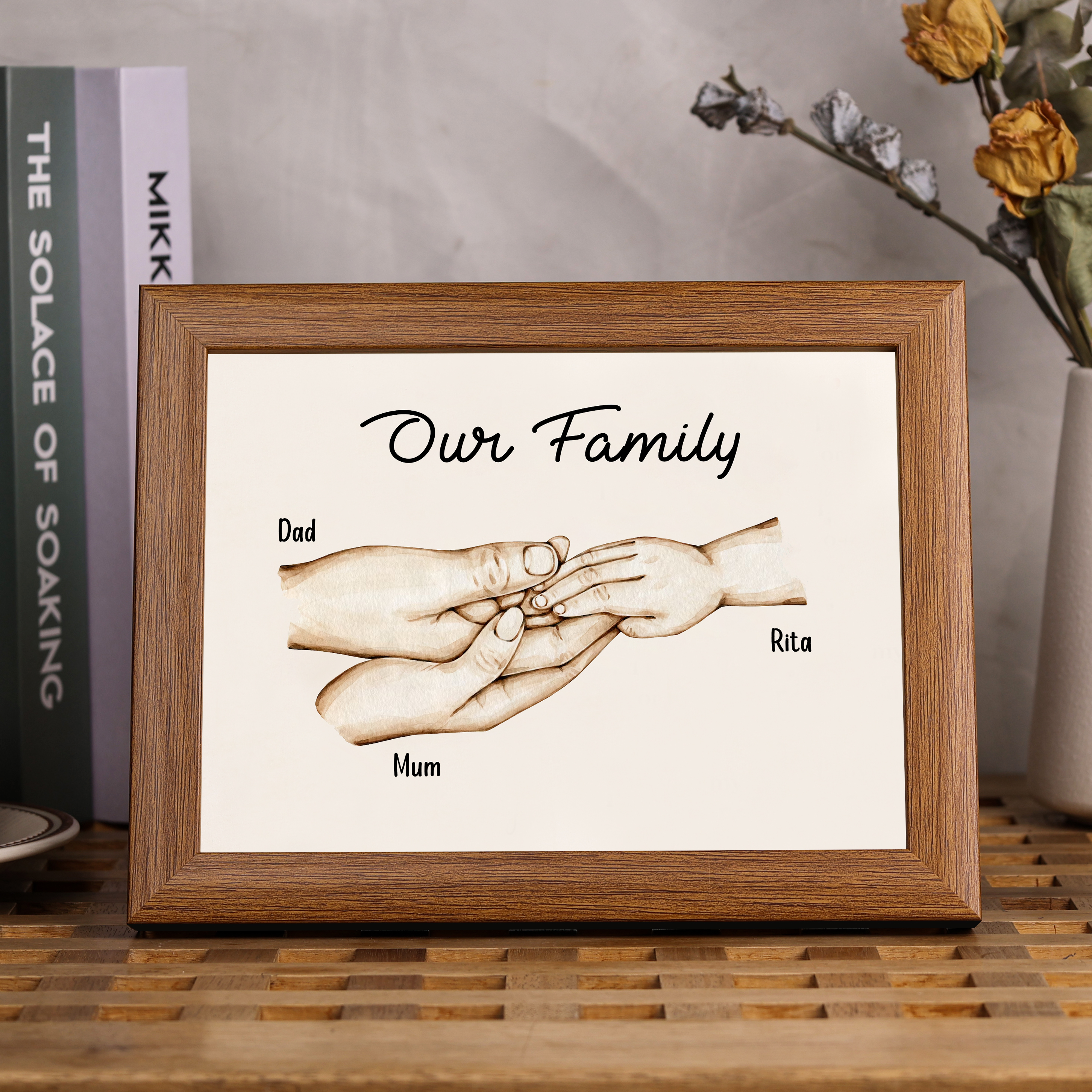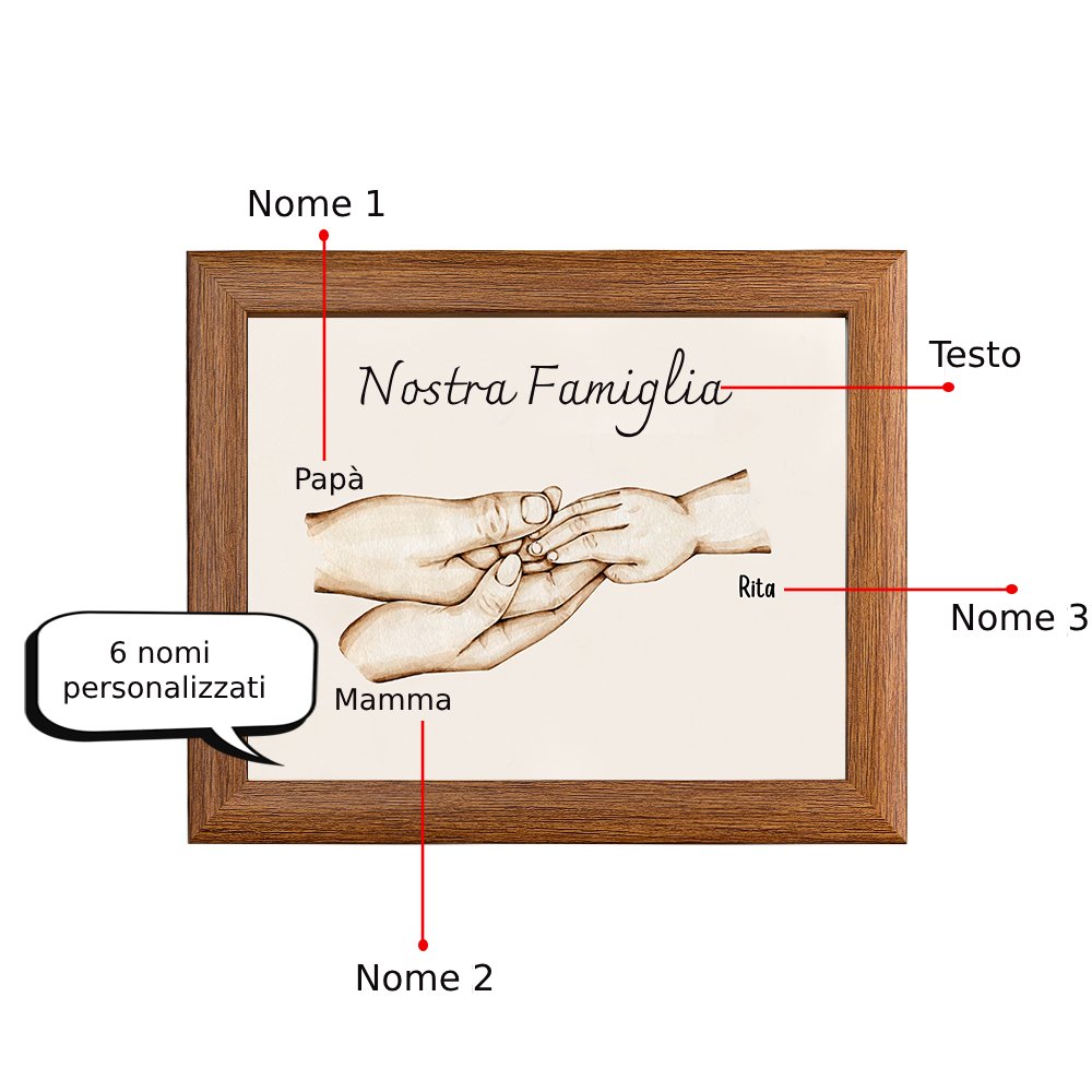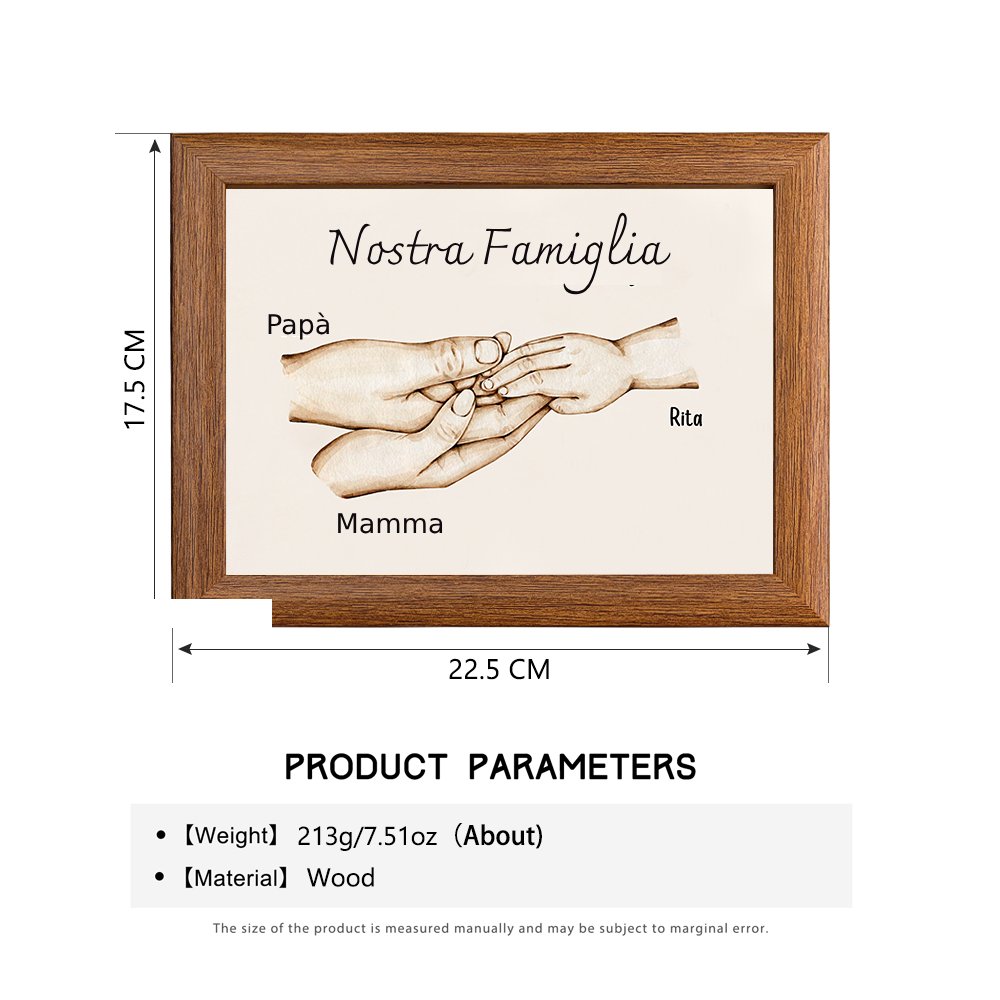 Nostra famiglia-Cornice di legno mano nella mano 3 nomi personalizzati regalo per famiglia