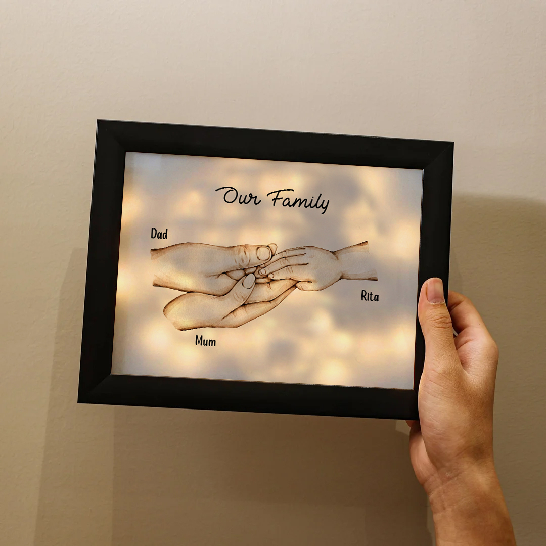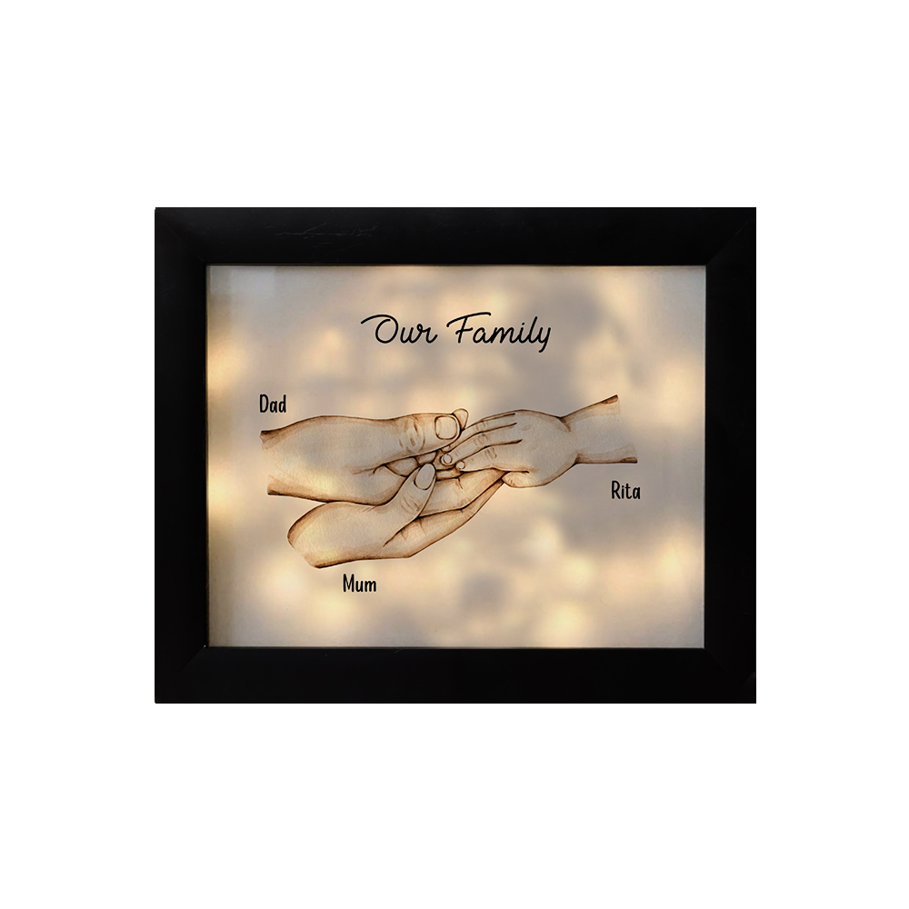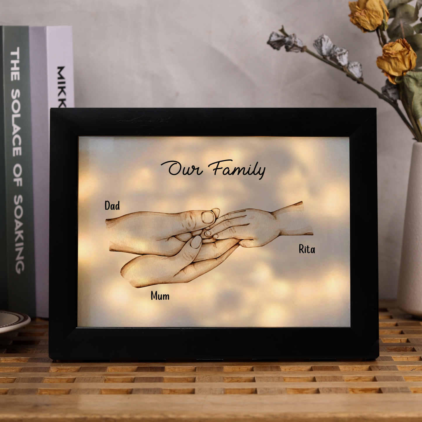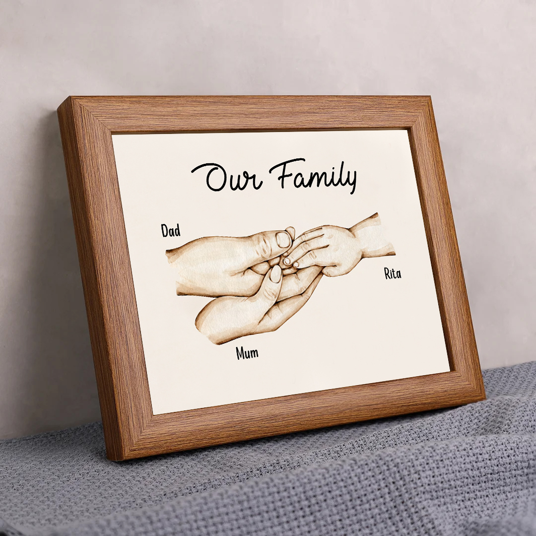 Nostra famiglia-Cornice di legno mano nella mano 3 nomi personalizzati regalo per famiglia