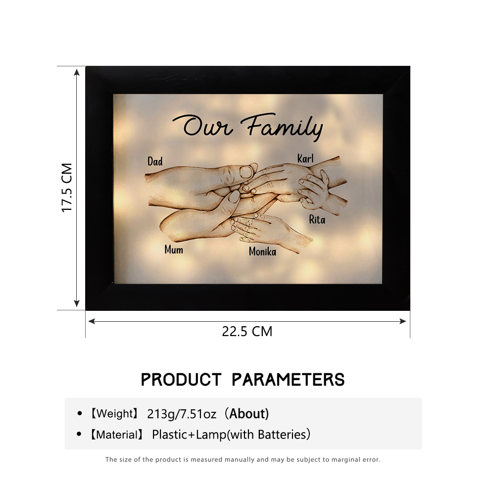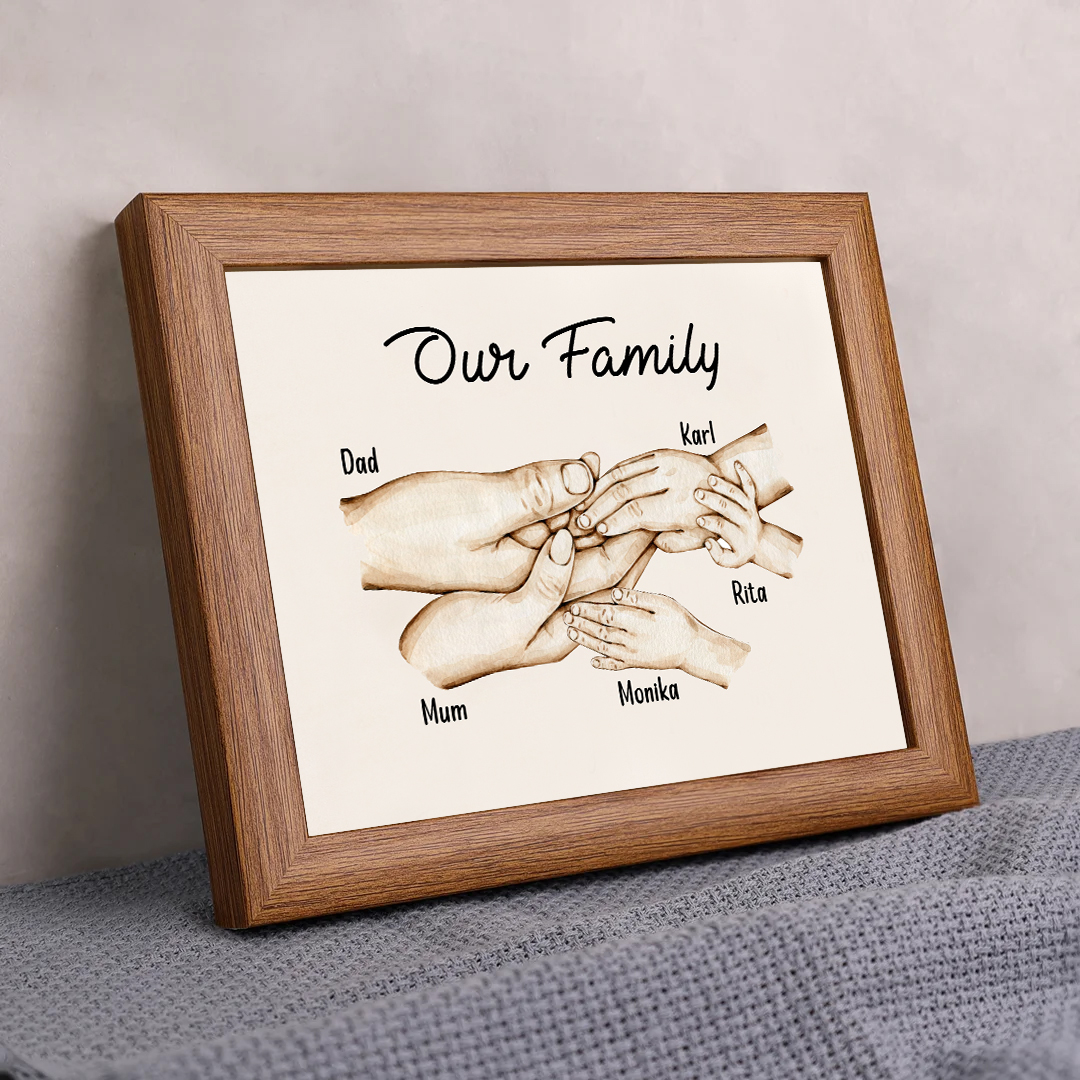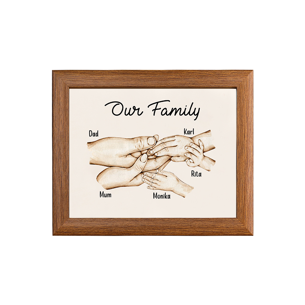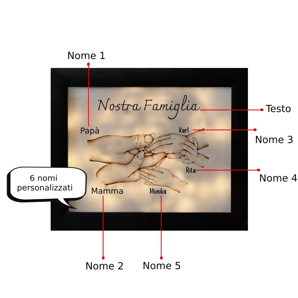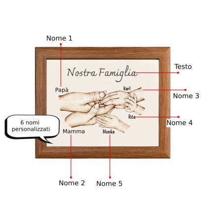 Nostra famiglia-Cornice di legno mano nella mano 5 nomi personalizzati regalo per famiglia